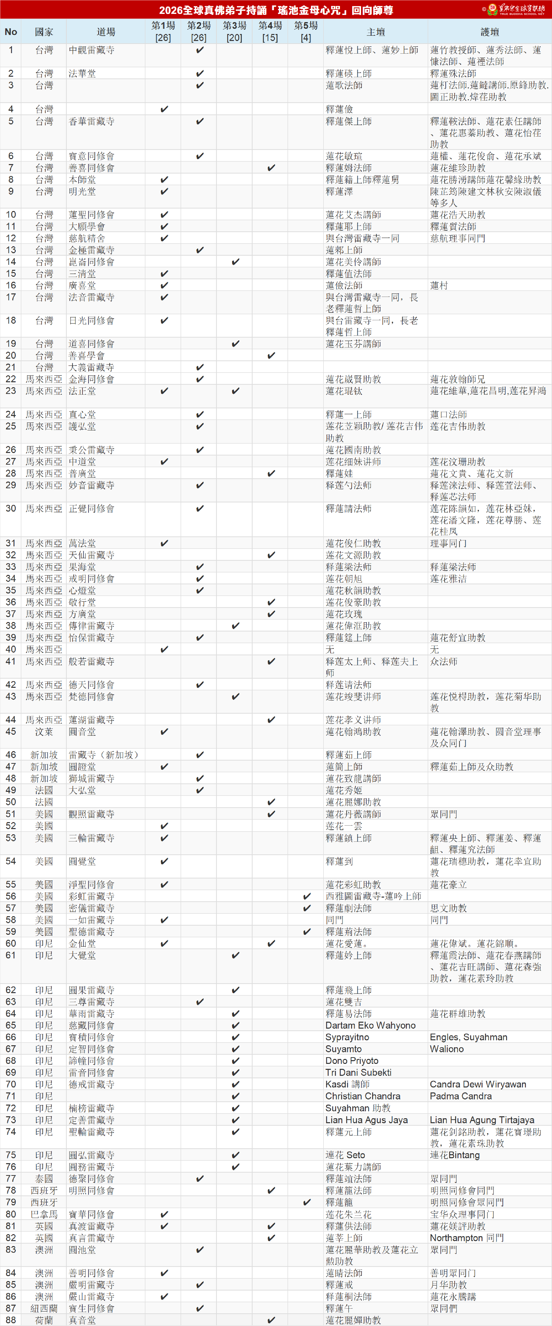 持誦瑤池金母迴向道場名單(截至2026/02/17) ........