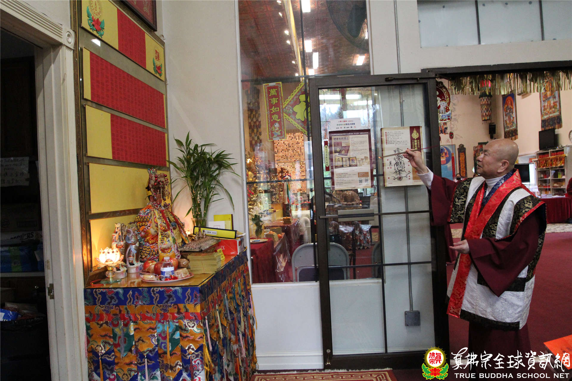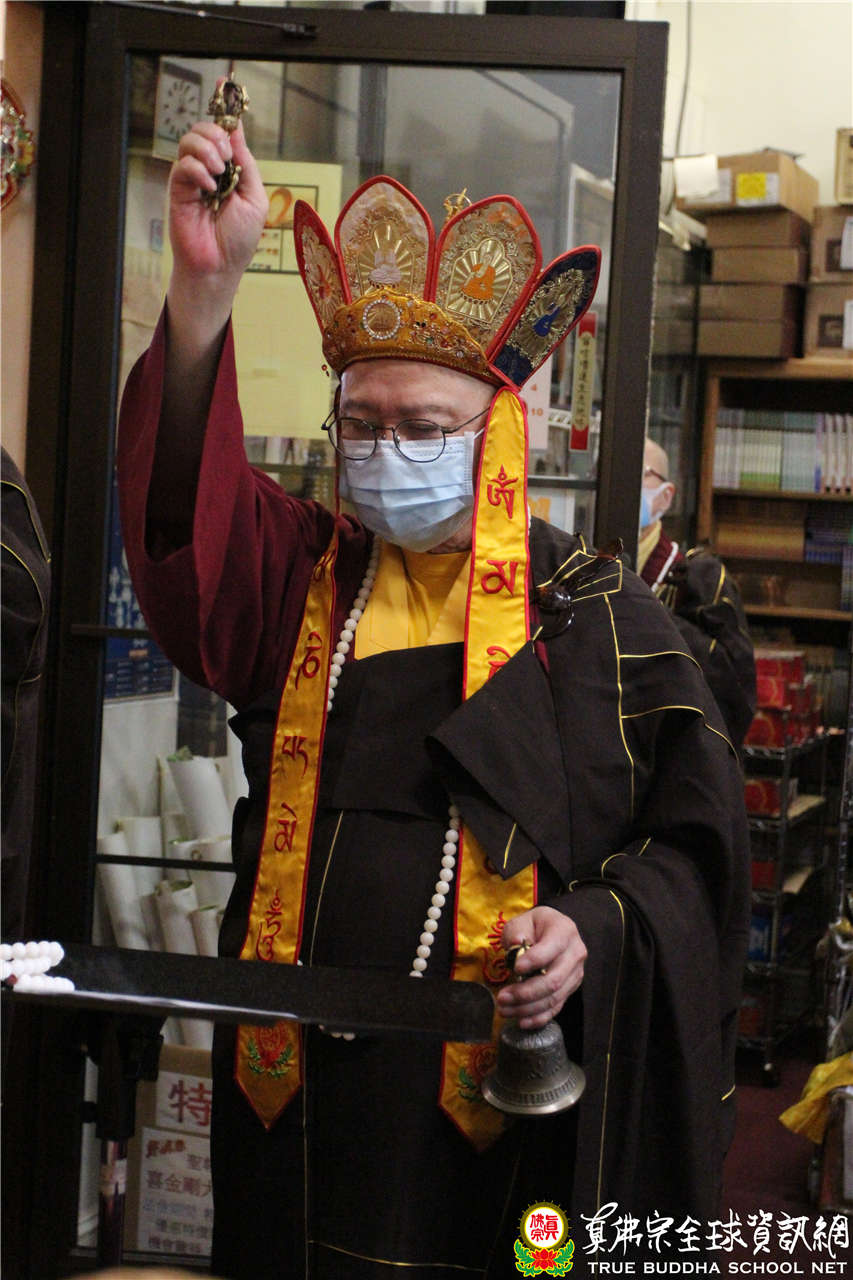 依照往年的慣例,上師、法師們在早上九點就先前往真佛密苑先做送迎太歲的儀式。緊接著,大家便前去祖廟大雄寶殿旁的地母菩薩和太歲星君壇城前,準備送迎太歲的事宜。就在那一時間,寺外天空突然大日普照,讓人心胸感到無限的開朗,覺得真是好兆頭。送迎太歲就在根本傳承上師的佛光加持下,儀軌周全圓滿,感謝庚子年盧超太歲星君過去一年的護佑,讓所有報名者能平安的度過一年,並且,祈求辛丑年湯信太歲星君,在未來新的一年加持庇佑所有報名者招財進寶聚當明,闔家平安萬事興。