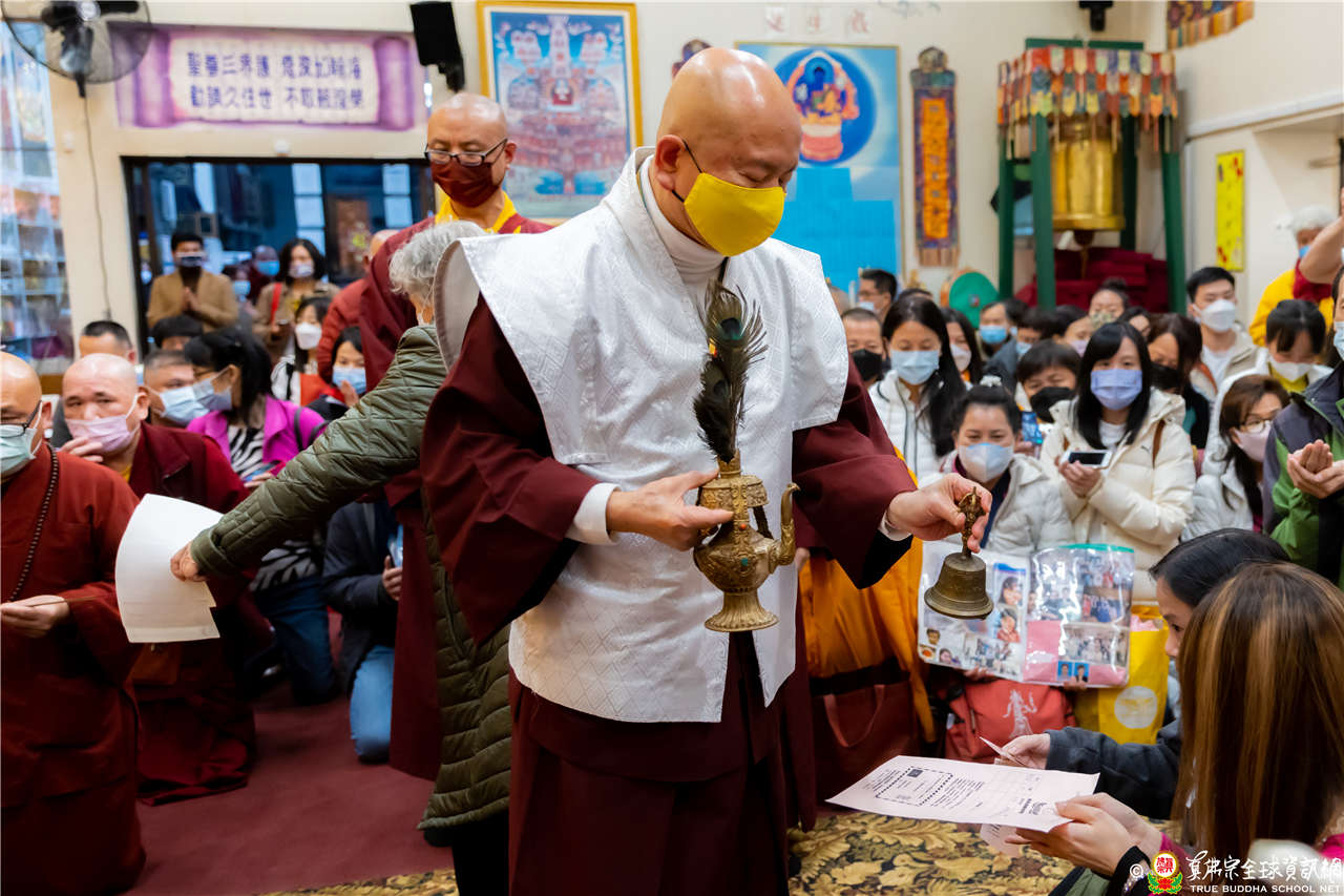 精彩寶貴的法語開示後,聖尊慈悲賜授新同門皈依灌頂,加持大悲咒水,及開光佛像,並以佛塵一一加持眾人。同修吉祥圓滿!