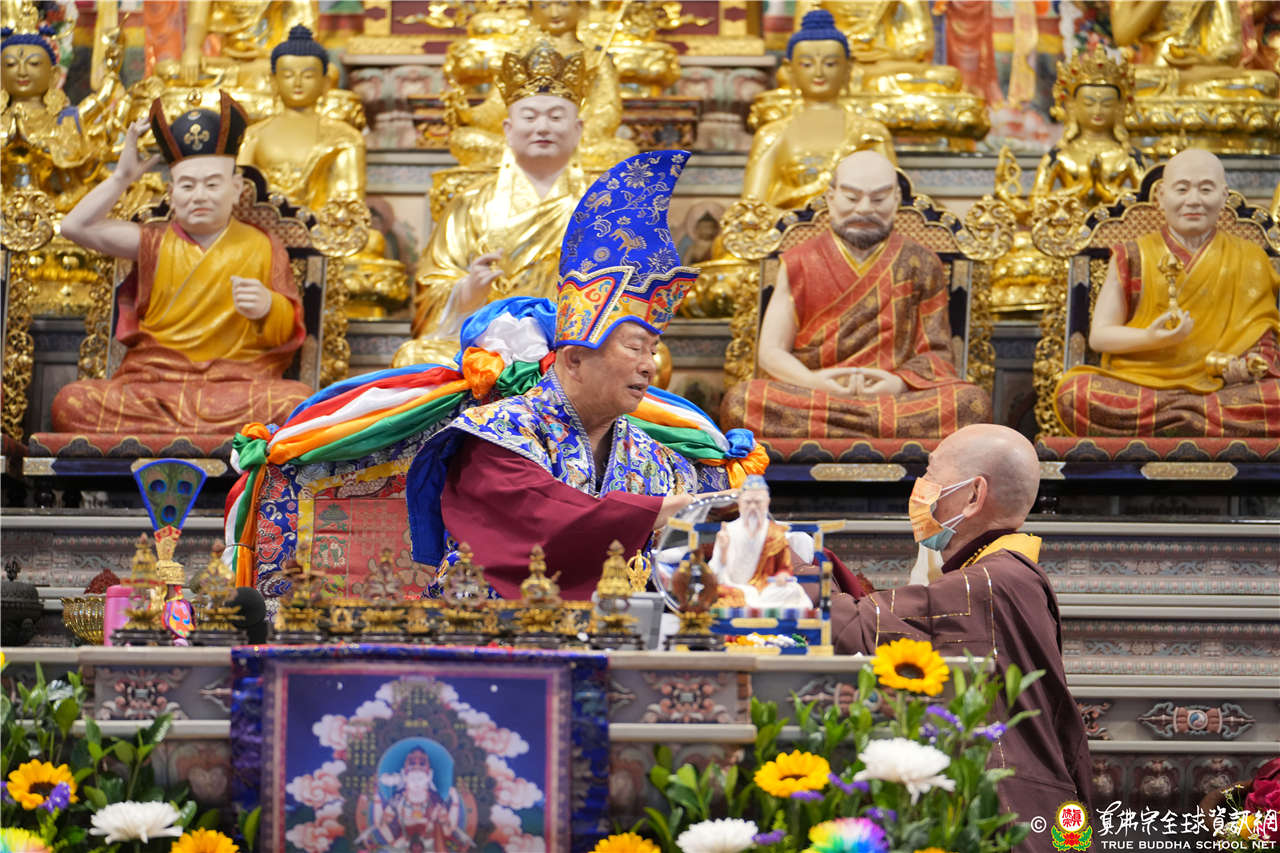 開示結束後,法王先做開光加持及總加持,同時也賜授與會大眾「孔雀明王不共大法」灌頂,法會圓滿結束。