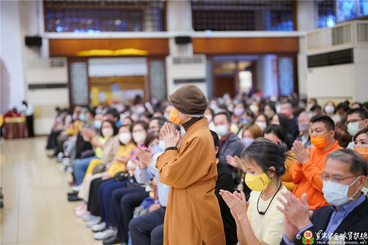 解答弟子的疑問後,法王繼續講解【維摩詰經】佛國品第一中的「爾時,一切大眾,睹佛神力,歎未曾有!合掌禮佛,瞻仰尊顏,目不暫捨。長者子寶積,即於佛前,以偈頌曰。」