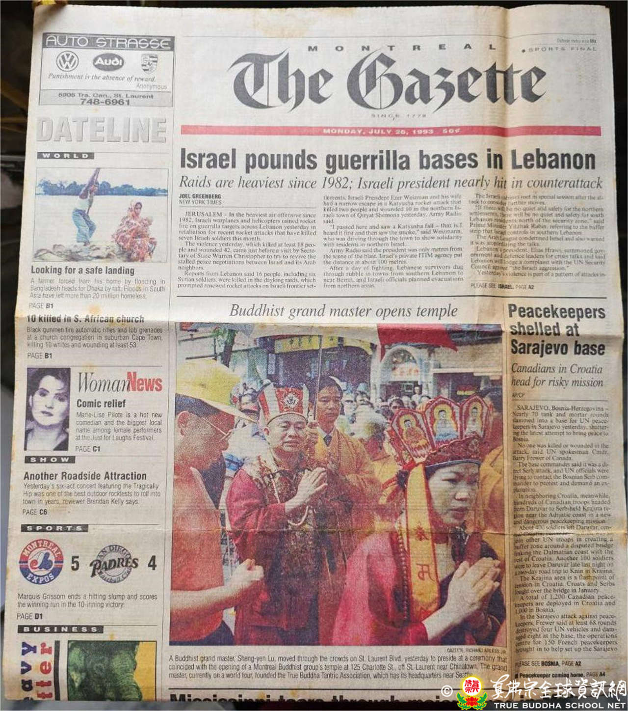 25日下午3點在根本上師在唐人街聖羅倫大道(Boul.St-Laurent)主持中陰身超度大法會,是日萬里晴空,達官顯要冠蓋雲集,來自各地的人潮大量湧入,萬人空巷大轟動,當場接受皈依灌頂多達七百餘人,當地政府特別為這場法會管制封街、派出交通警察維護秩序。當地最大法文報與華人各大報,皆於頭版報導本次法會大場面實況。真佛報第40期頭條新聞寫下「聖羅倫大道,史無前例,露天大法會,萬人空巷,舉城震撼。」