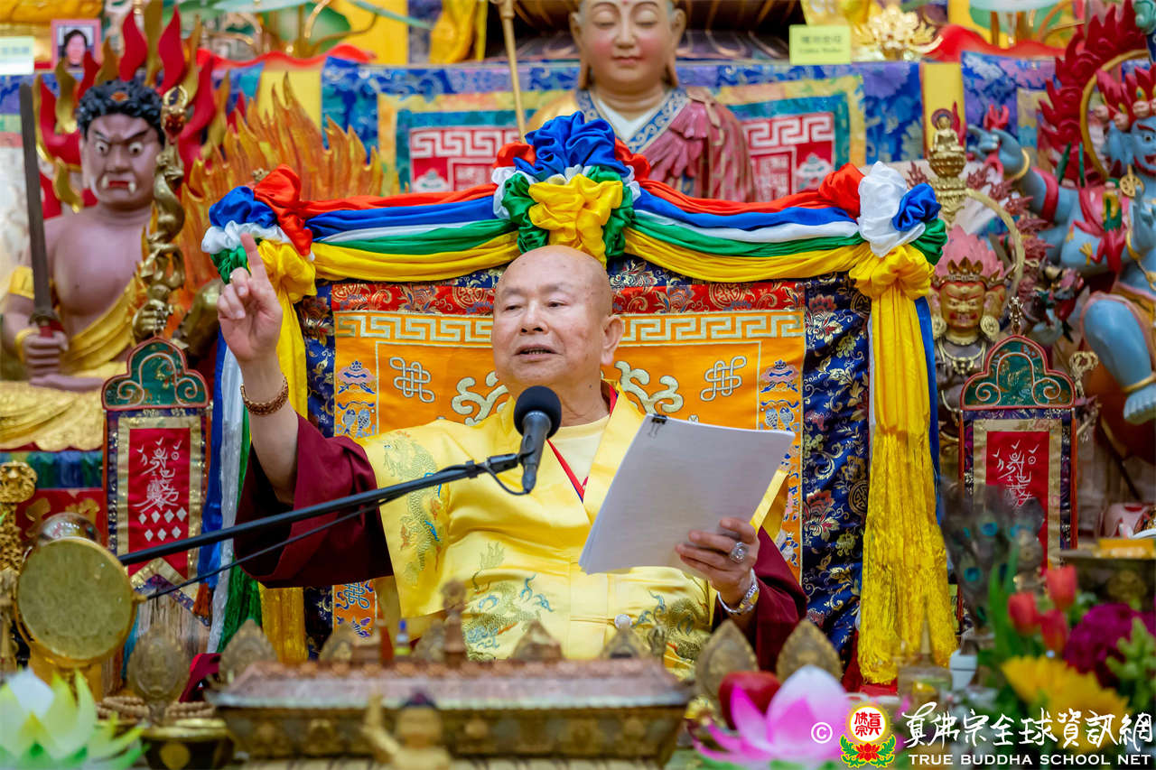 2025年6月7日,蓮生活佛盧勝彥帶領大家修持釋迦牟尼佛本尊法。同修完後,聖尊祈請本師釋迦牟尼佛接引幽冥衆往生清淨佛國,並放光加被大眾身體健康、修行成就、息災、增益、降服、敬愛皆能圓滿、生活康泰,增福增慧。
