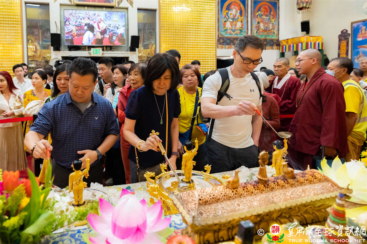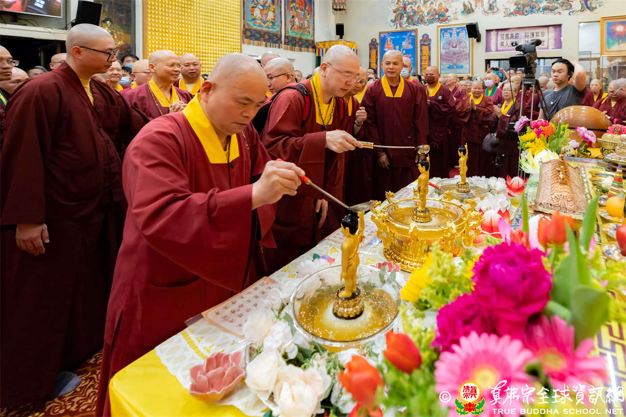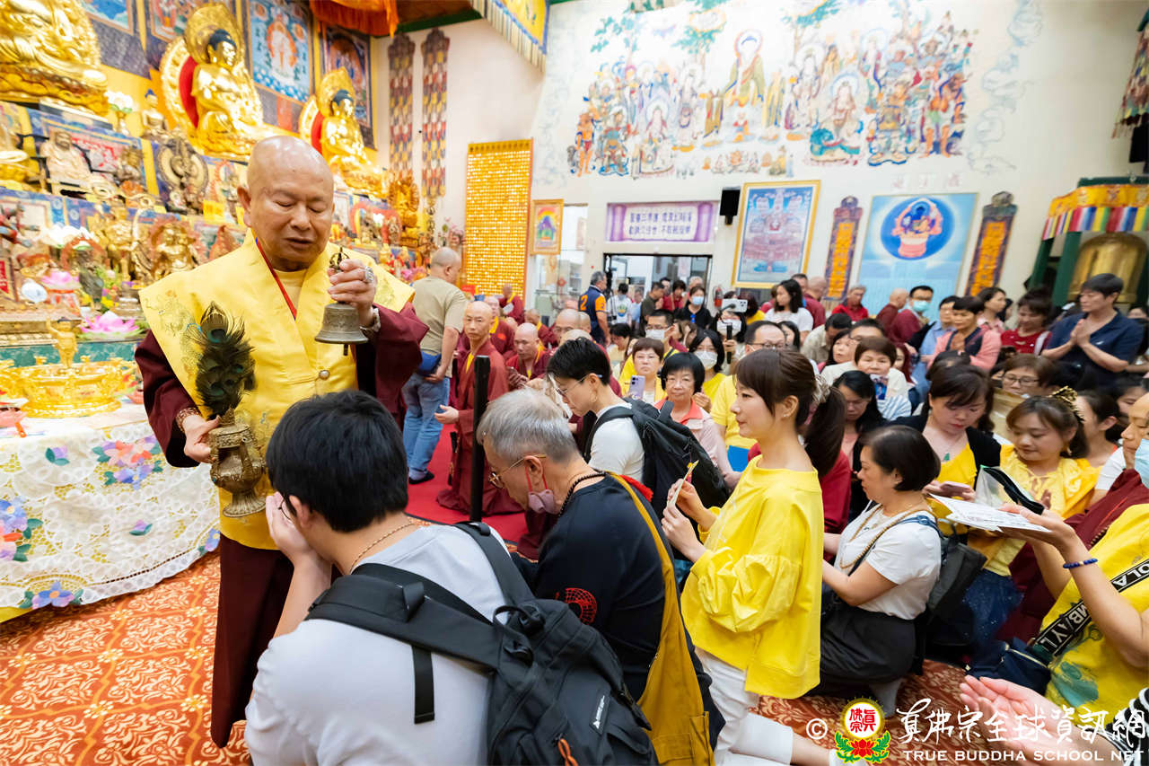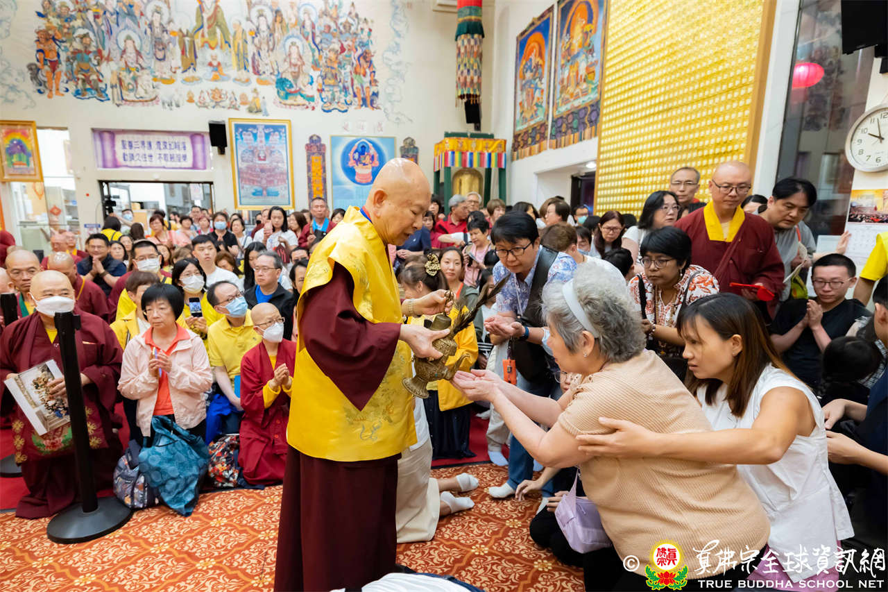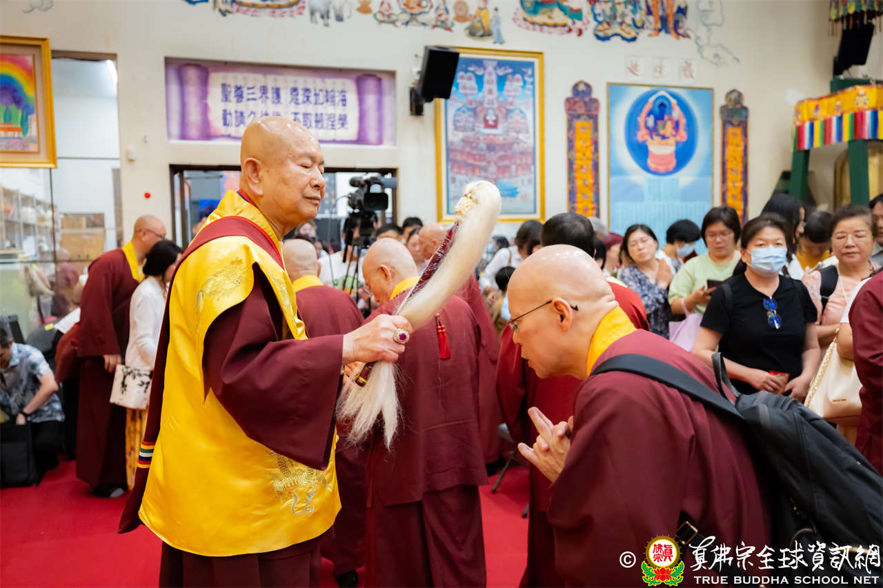 開示結束後,隨即進行浴佛儀式,師尊以拂塵加持大眾。