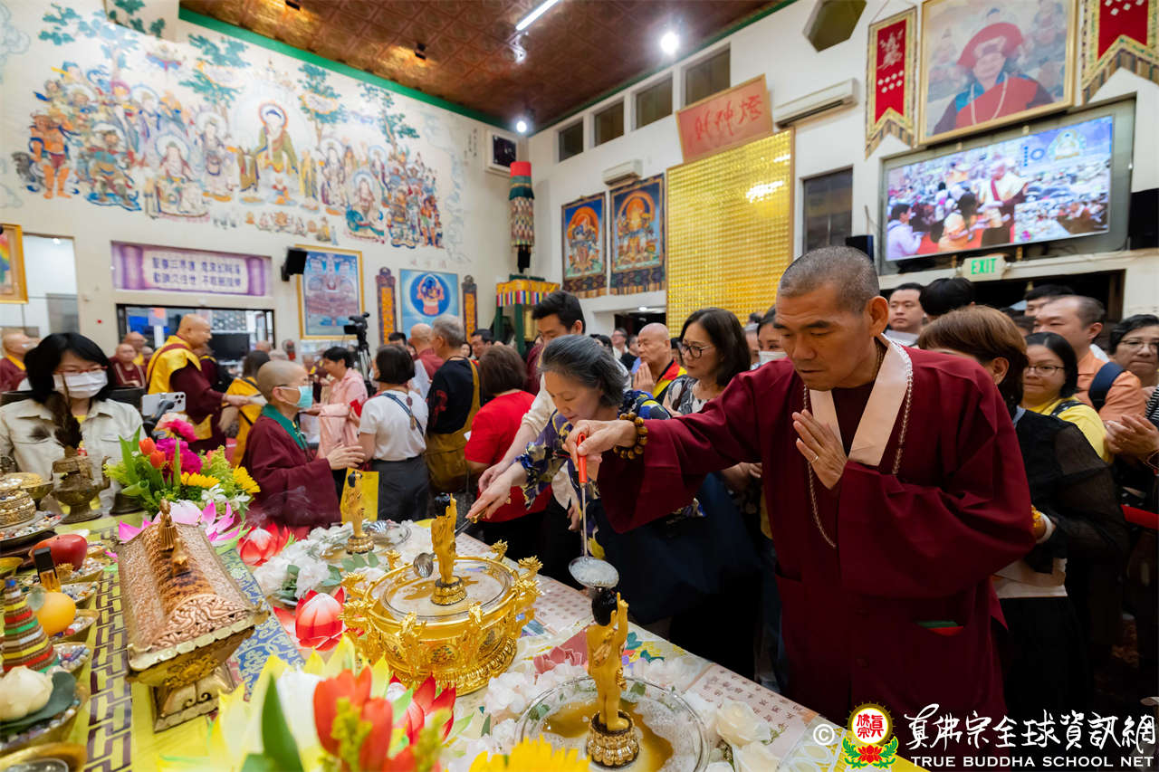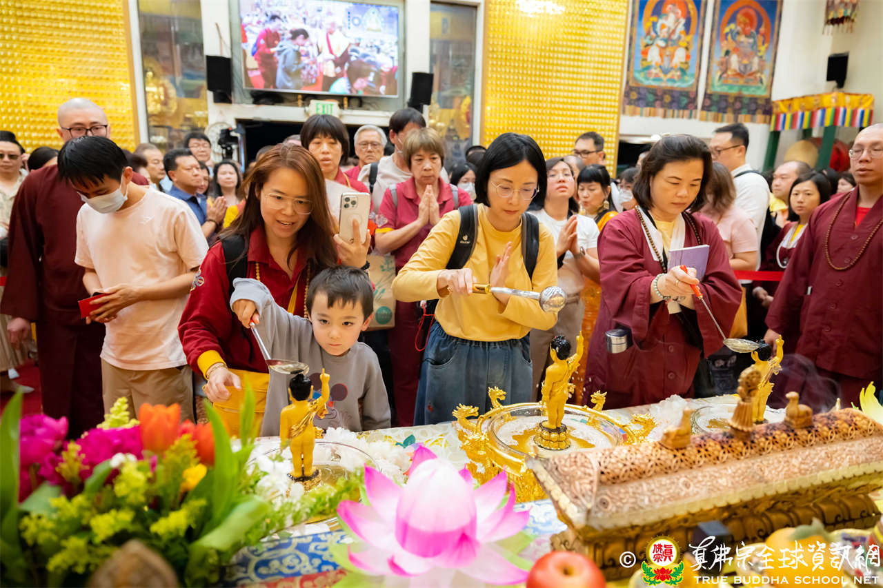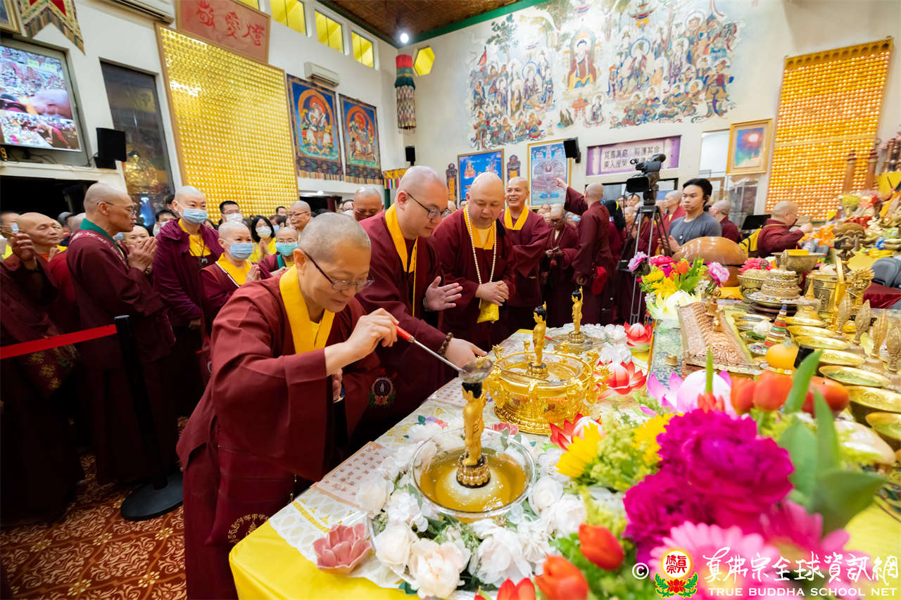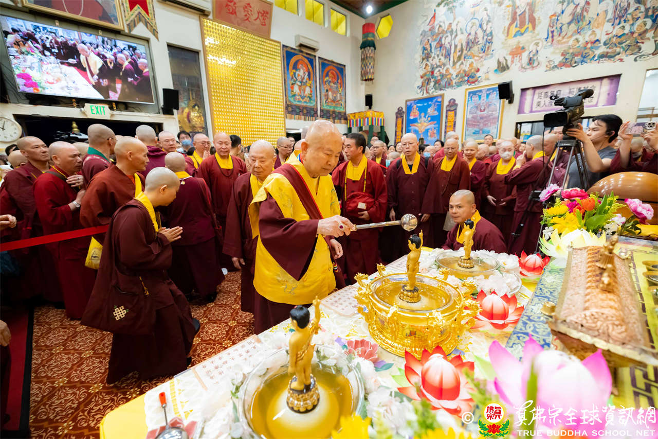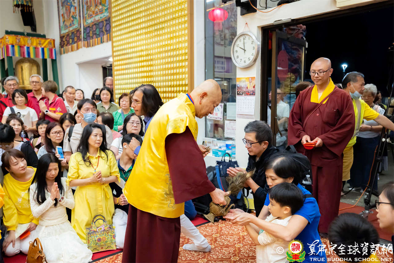 開示結束後,隨即進行浴佛儀式,師尊以拂塵加持大眾。