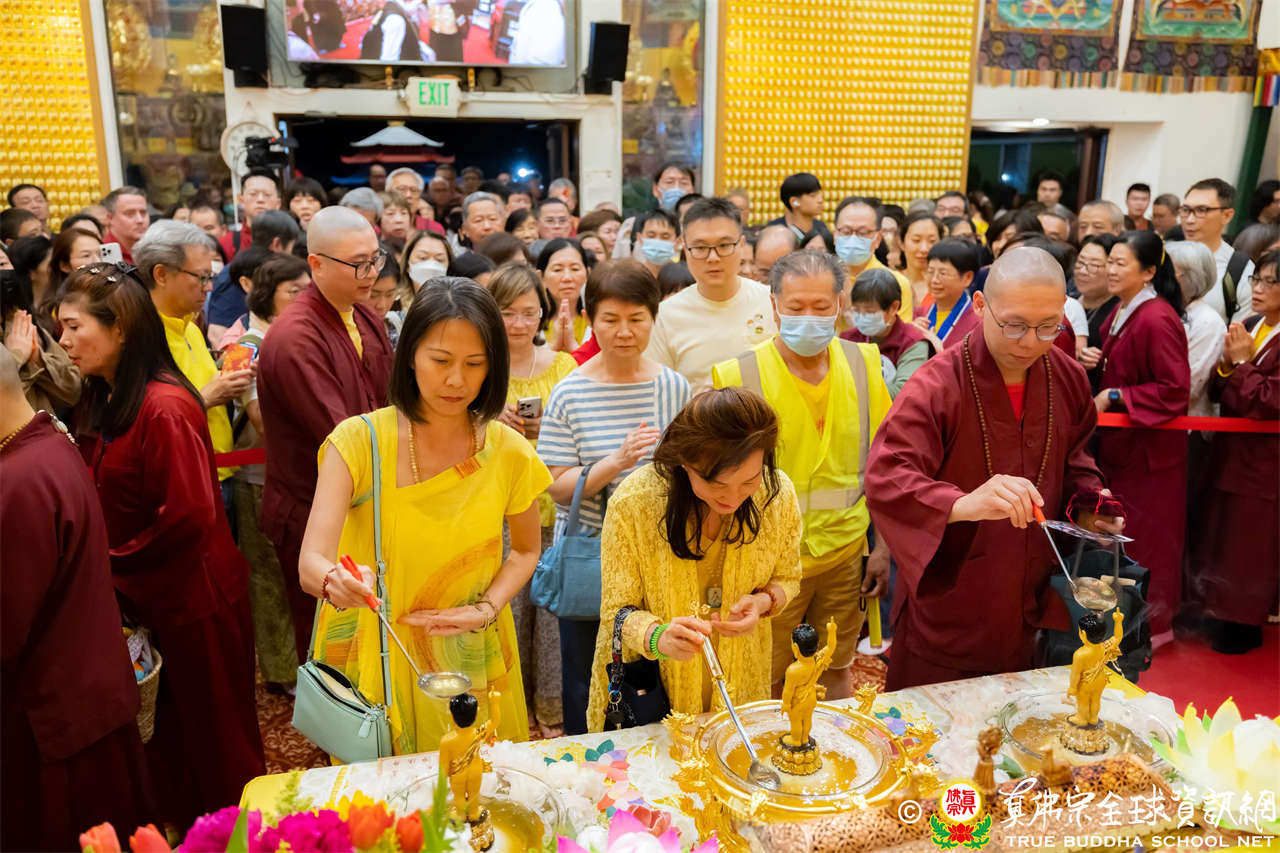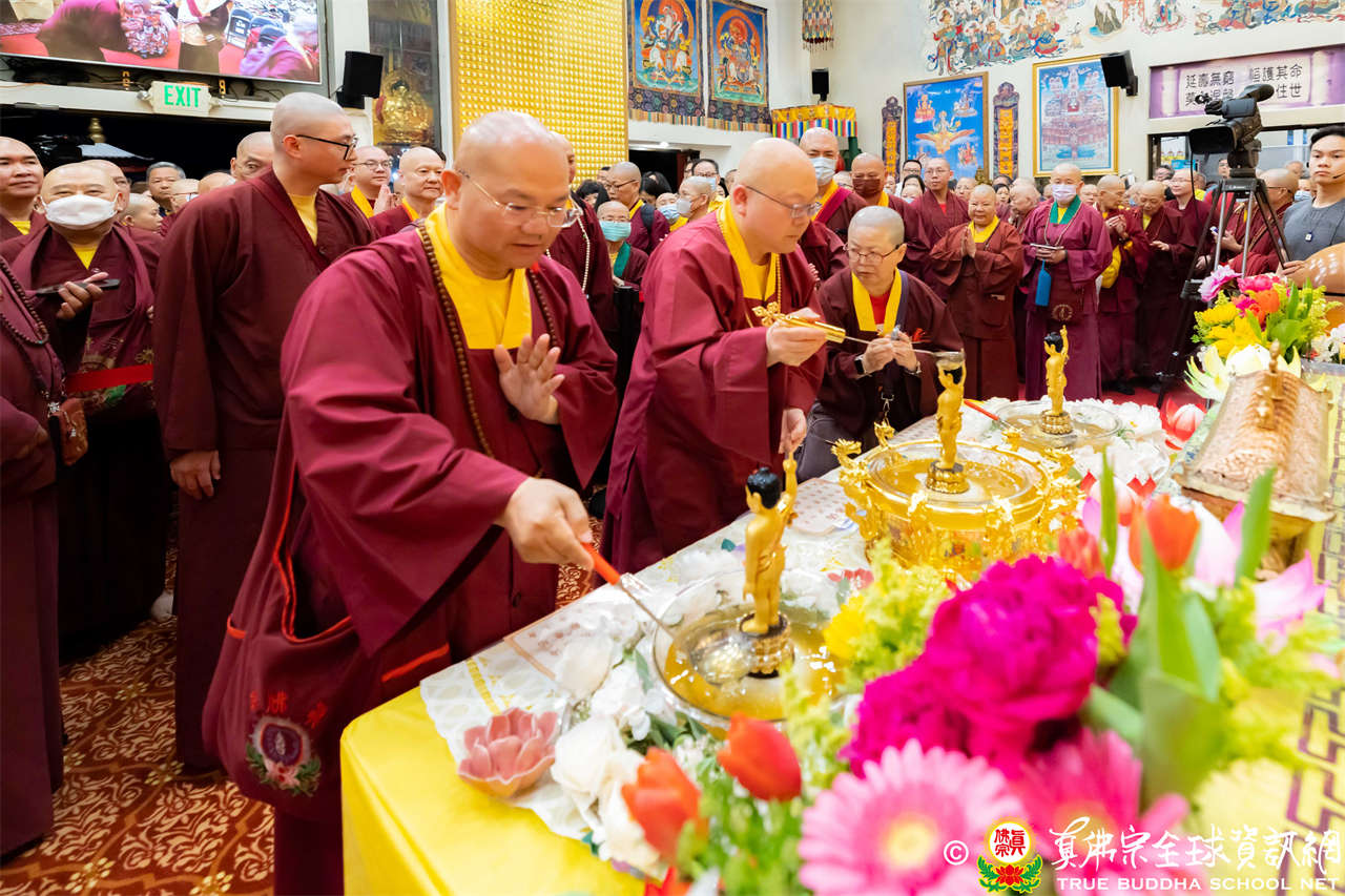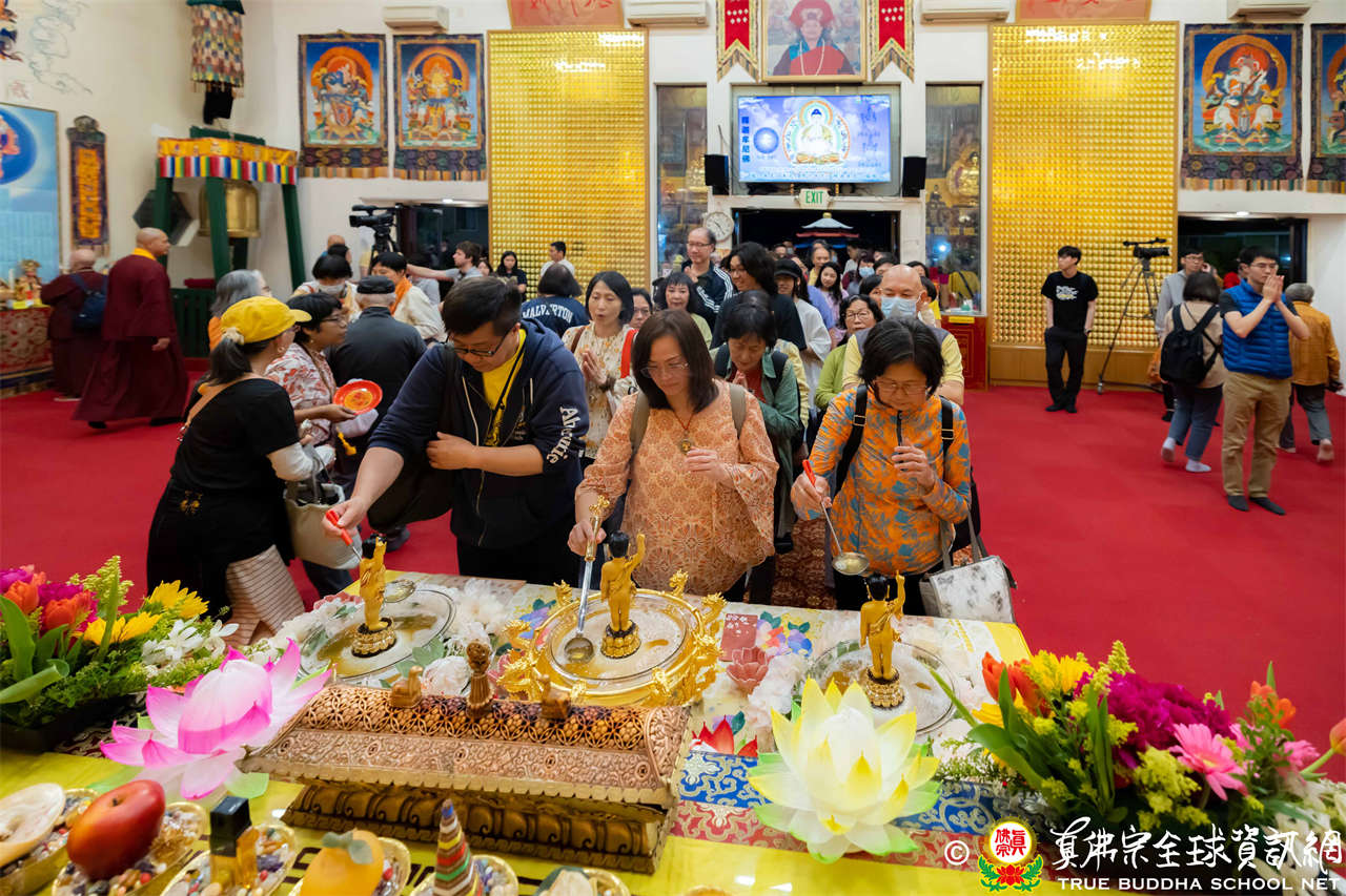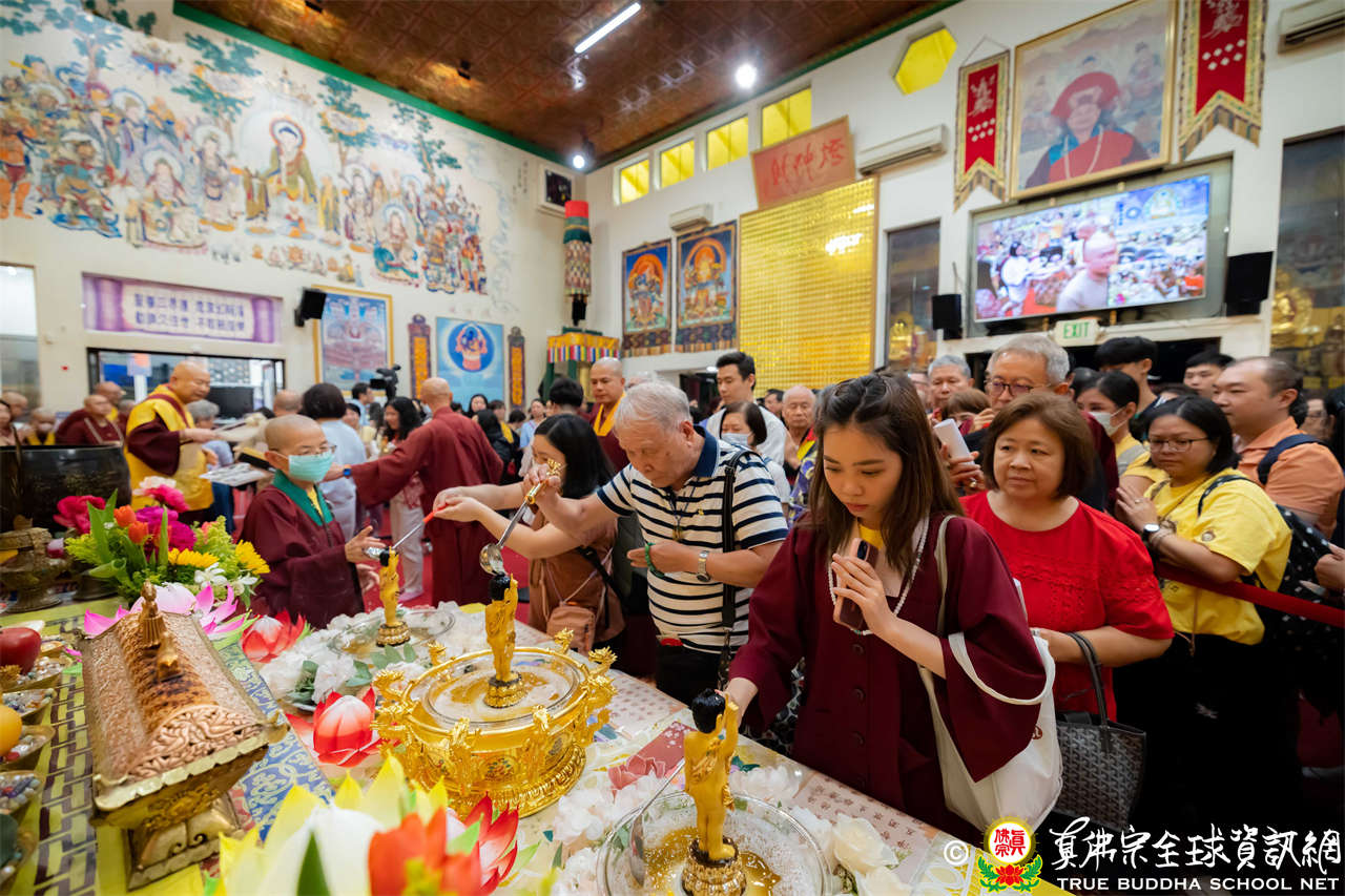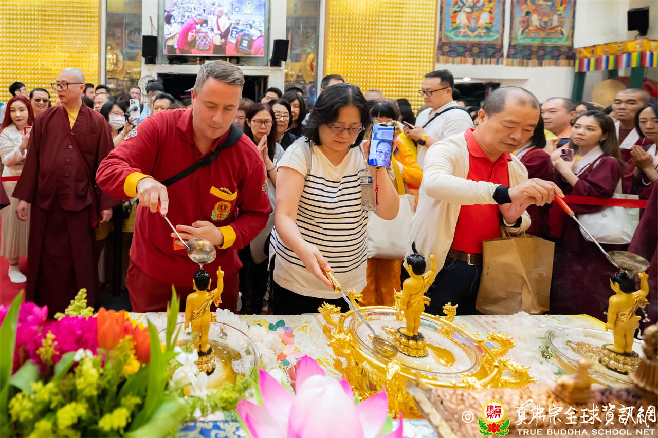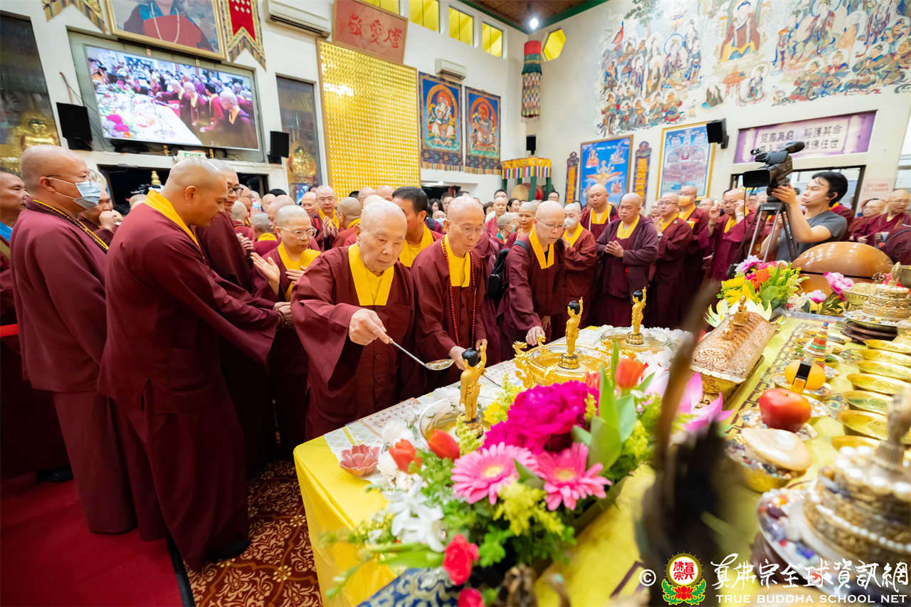 開示結束後,隨即進行浴佛儀式,師尊以拂塵加持大眾。