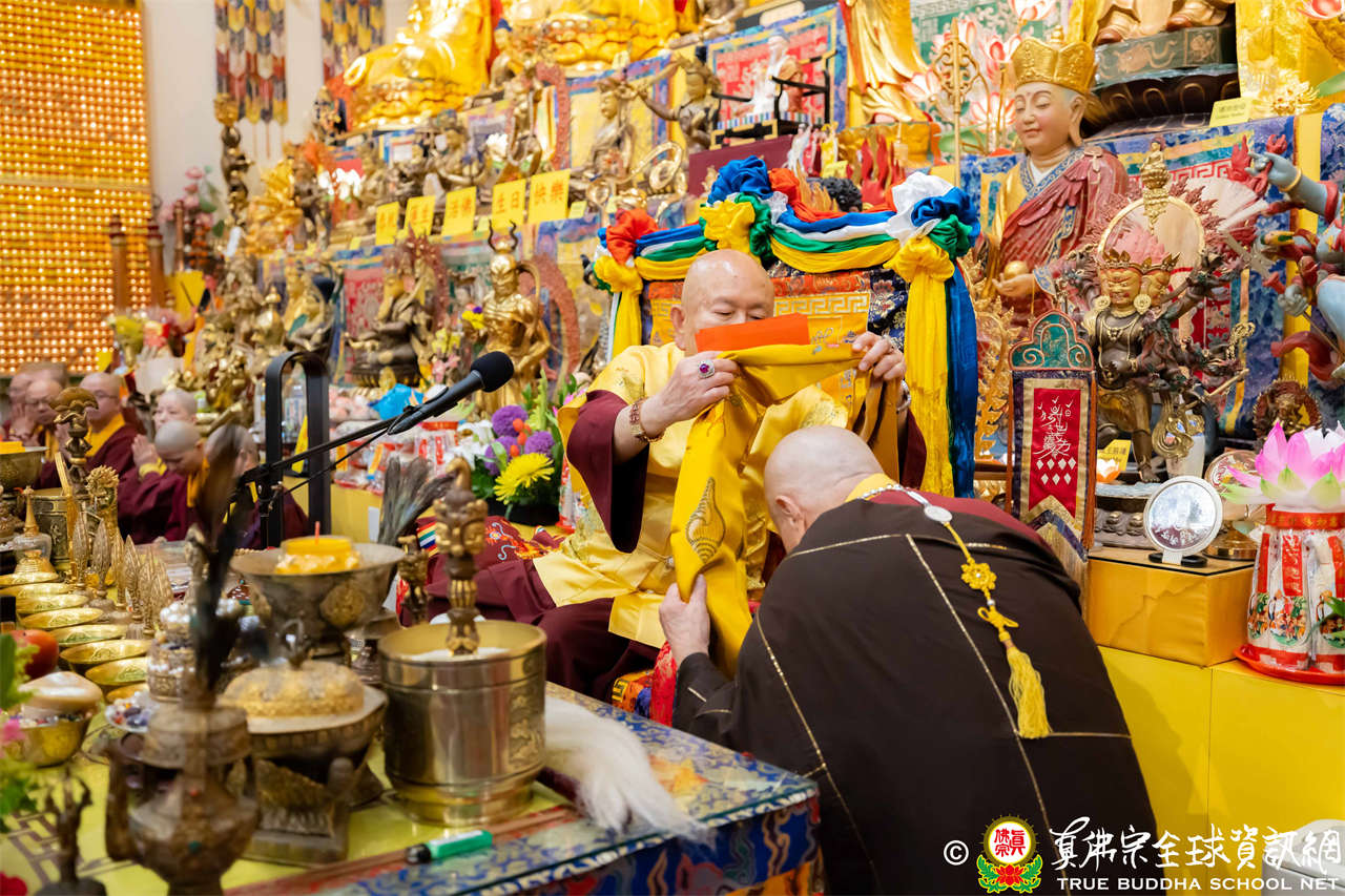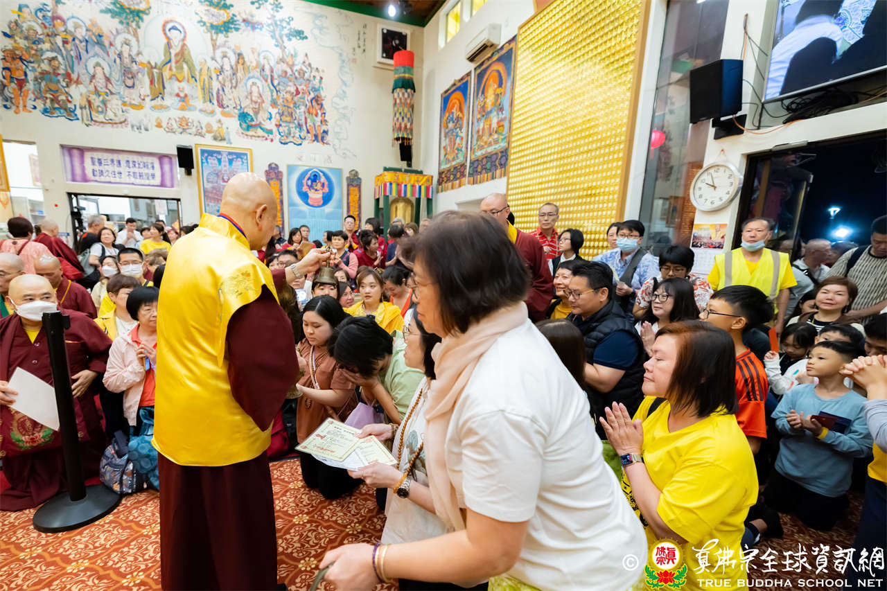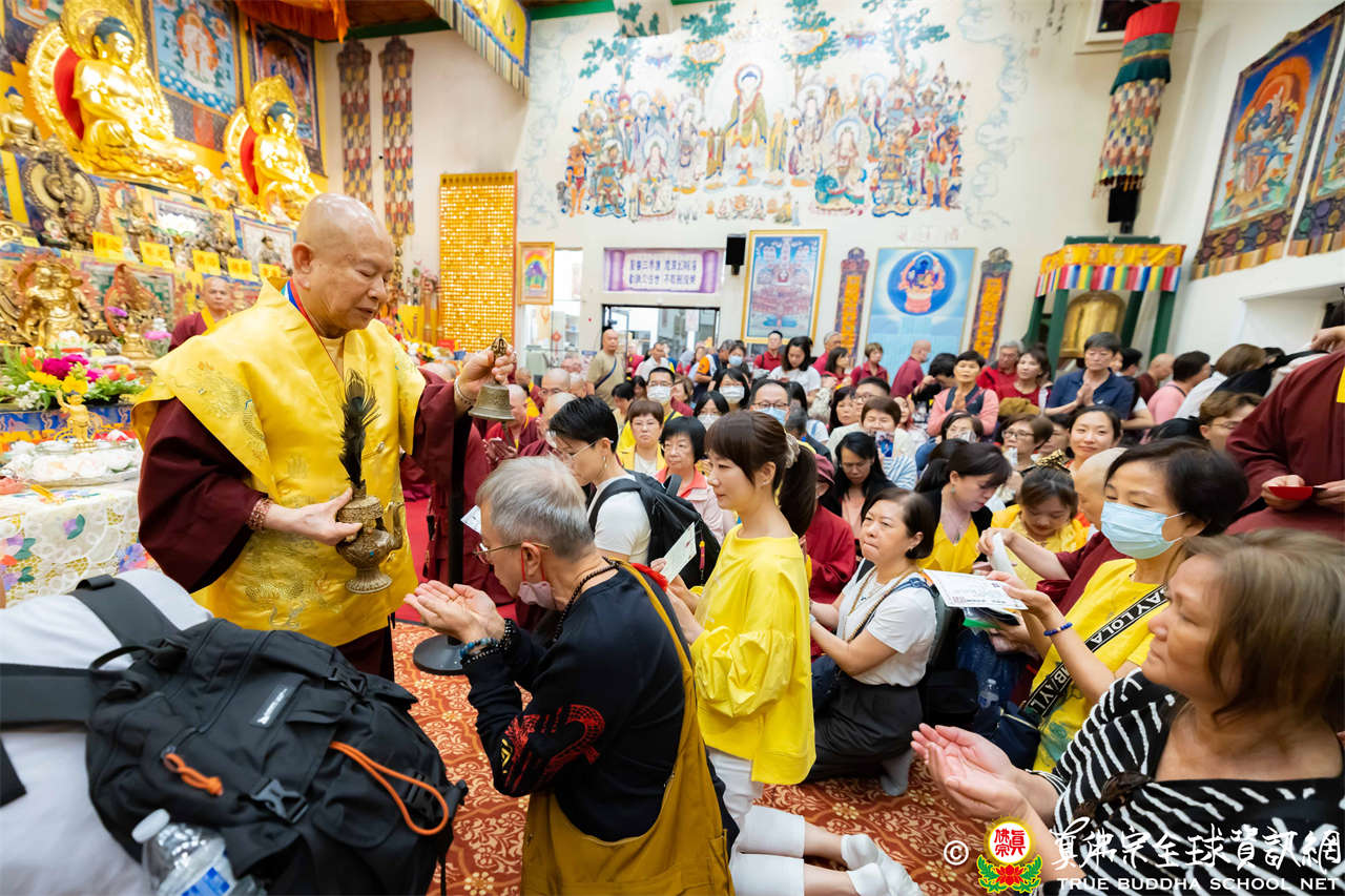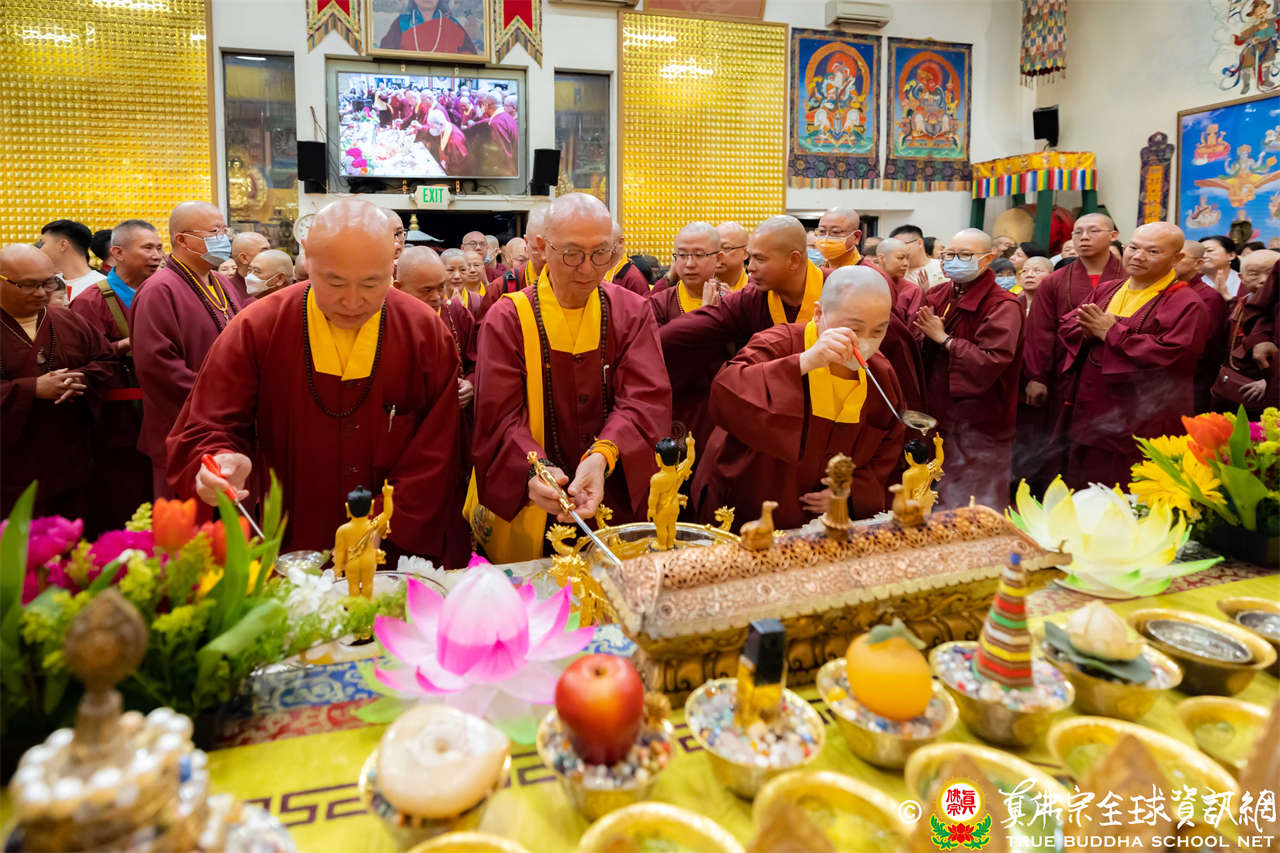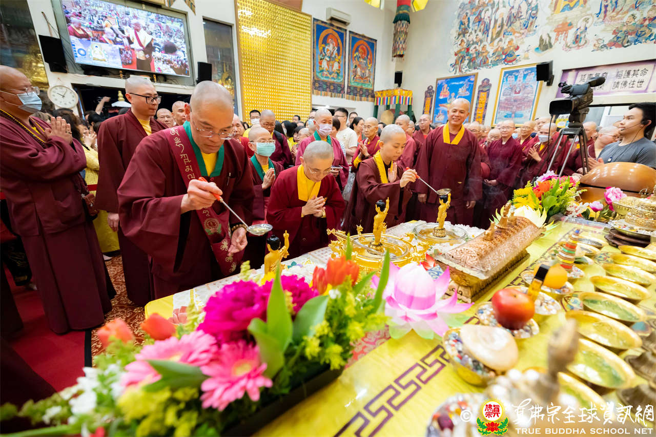開示結束後,隨即進行浴佛儀式,師尊以拂塵加持大眾。