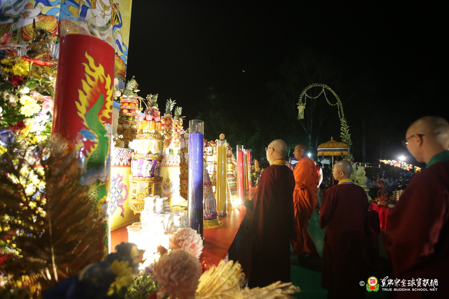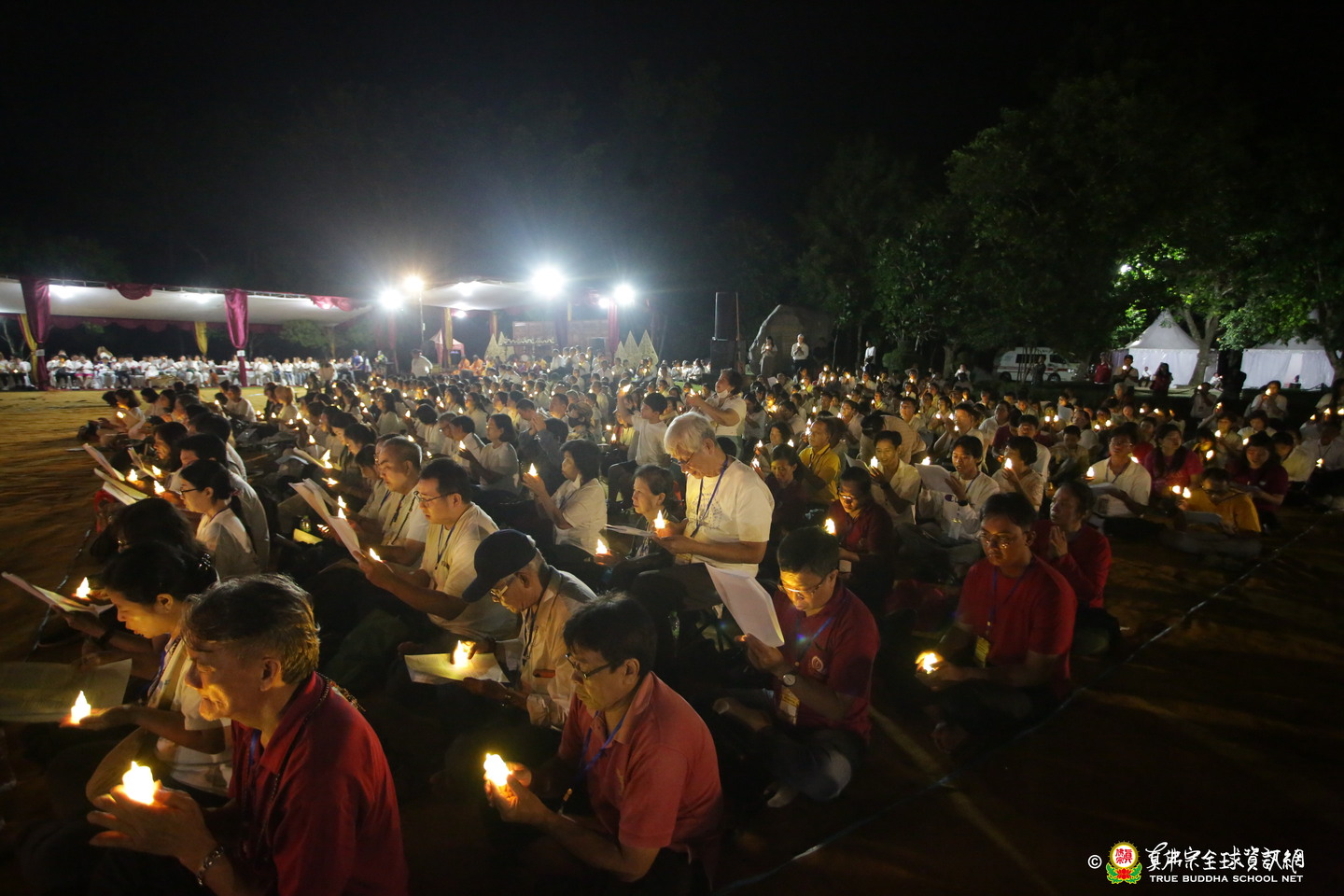 法會現場設有延生位與往生位壇城,為每位報名信眾圓滿迴向。現場並排列出由祈福蠟燭組成的「請佛住世」四字,每盞燈皆代表真佛弟子對根本上師的虔誠祈願,祈願真佛住世間、法輪常轉。