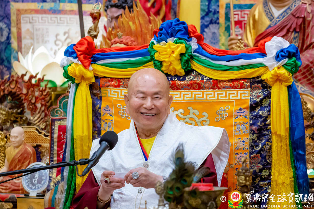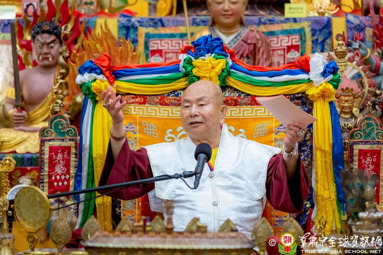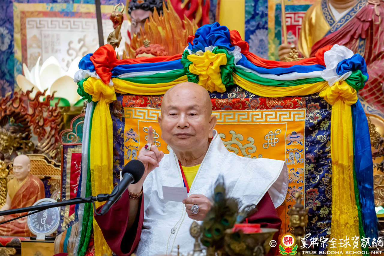 本尊法儀軌結束後,眾等隨著聖尊的帶領頂禮歷代傳承祖師及同修主尊後,以熱烈的掌聲恭請聖尊為大眾做寶貴的法語開示。