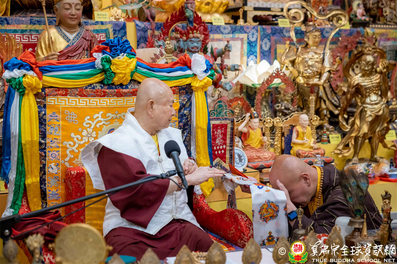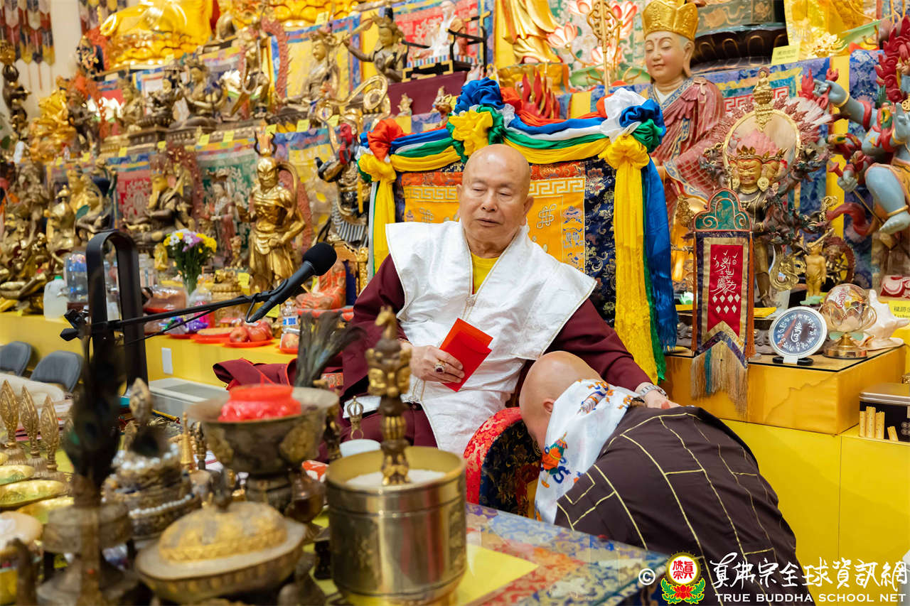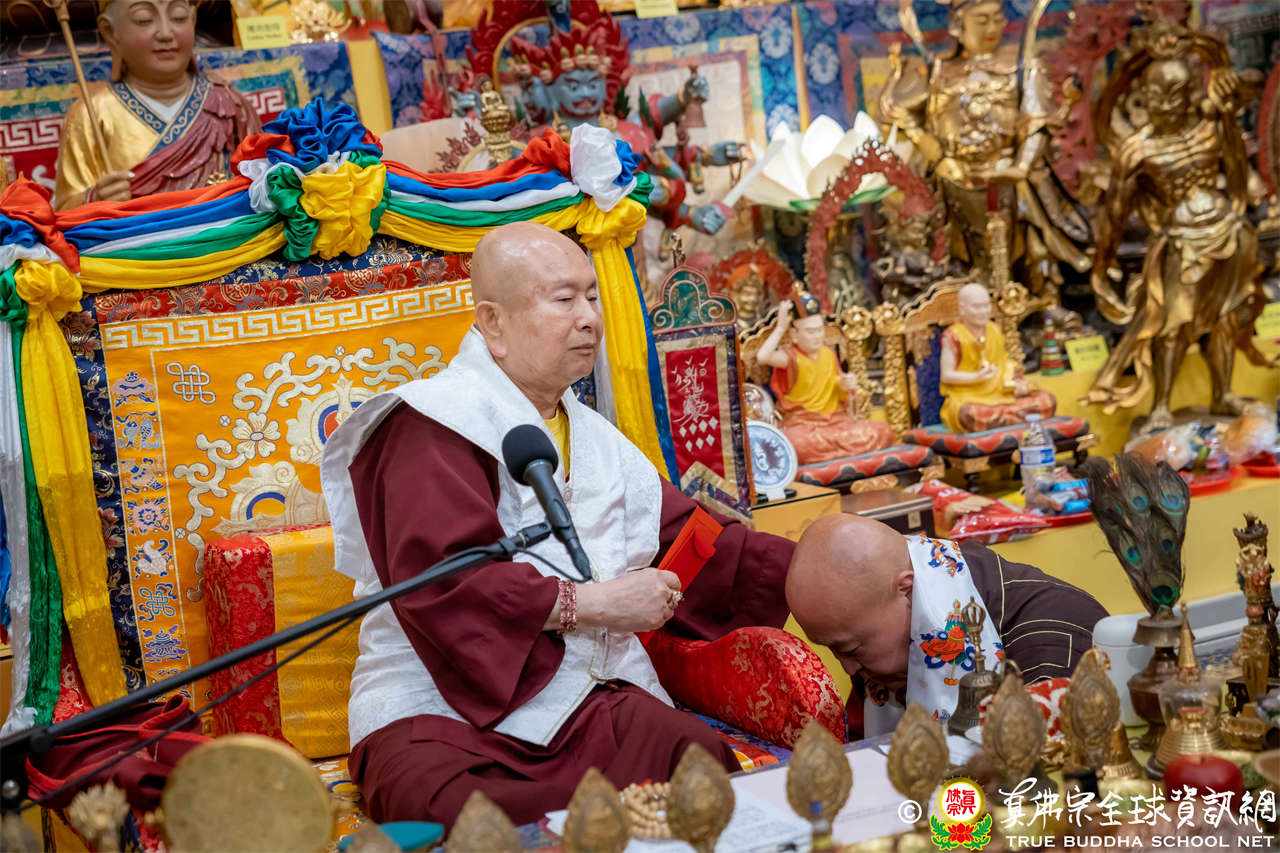 本尊法儀軌結束後,眾等隨著聖尊的帶領頂禮歷代傳承祖師及同修主尊後,以熱烈的掌聲恭請聖尊為大眾做寶貴的法語開示。