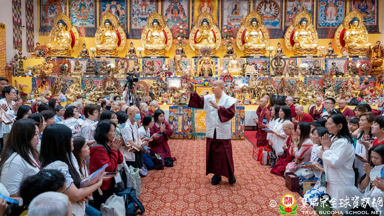 聖尊慈悲開示,深入淺出的講解,眾弟子聞法得益,對《楞嚴經》的義理與妙明真心有更深入體會。隨後,聖尊加持大悲咒水、開光佛像,並加持與會大眾,同修圓滿吉祥。