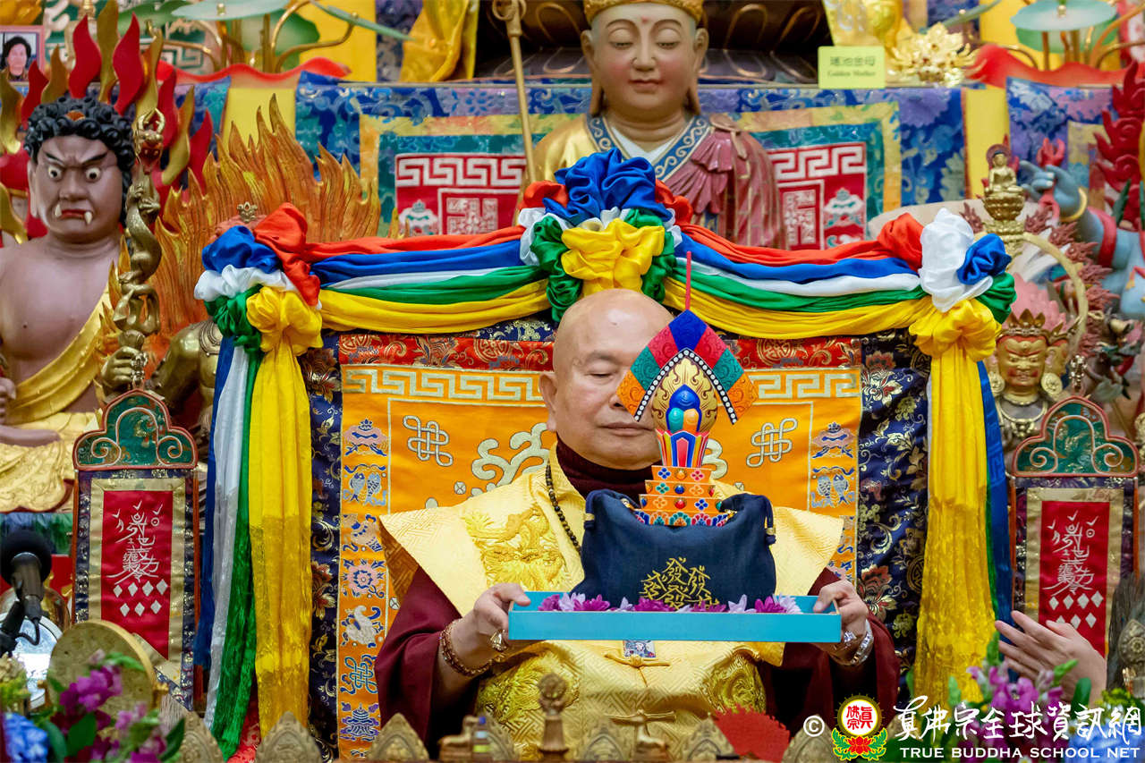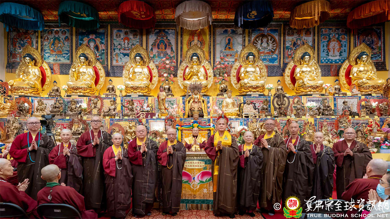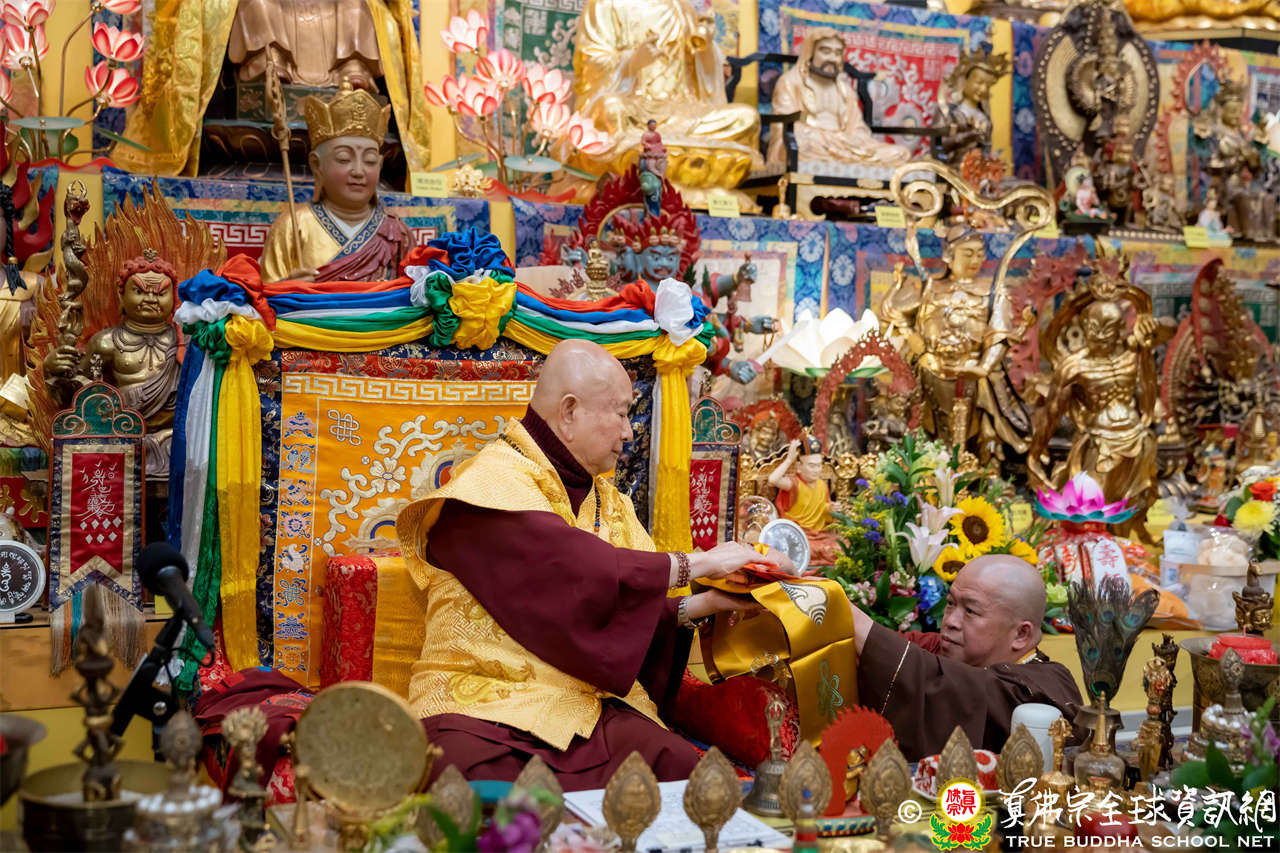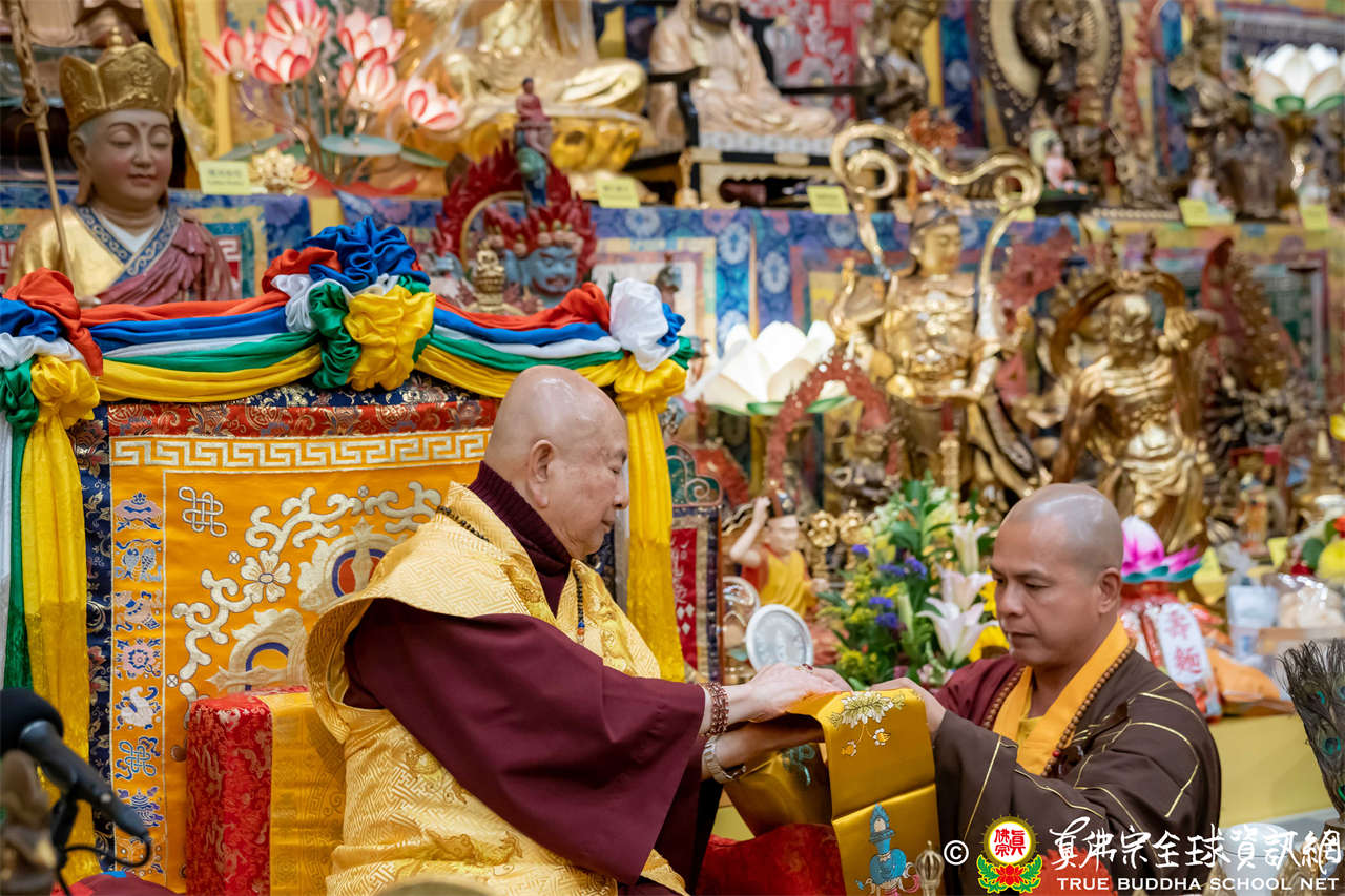 同修後,住持蓮吟上師率眾向蓮生活佛請法,恭請蓮生活佛主壇乙巳年9月20日阿彌陀佛息災祈福超度大法會及首傳扎基拉姆密法。請法人員敬獻法王寶冠、龍袍、扎基拉姆金身等等,以表達弟子們的懇切之忱。請法儀式莊嚴圓滿。