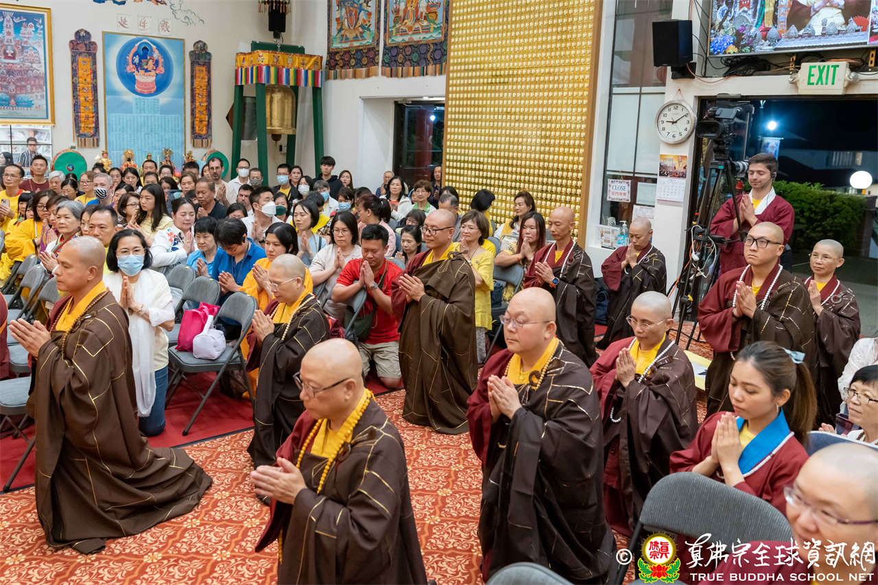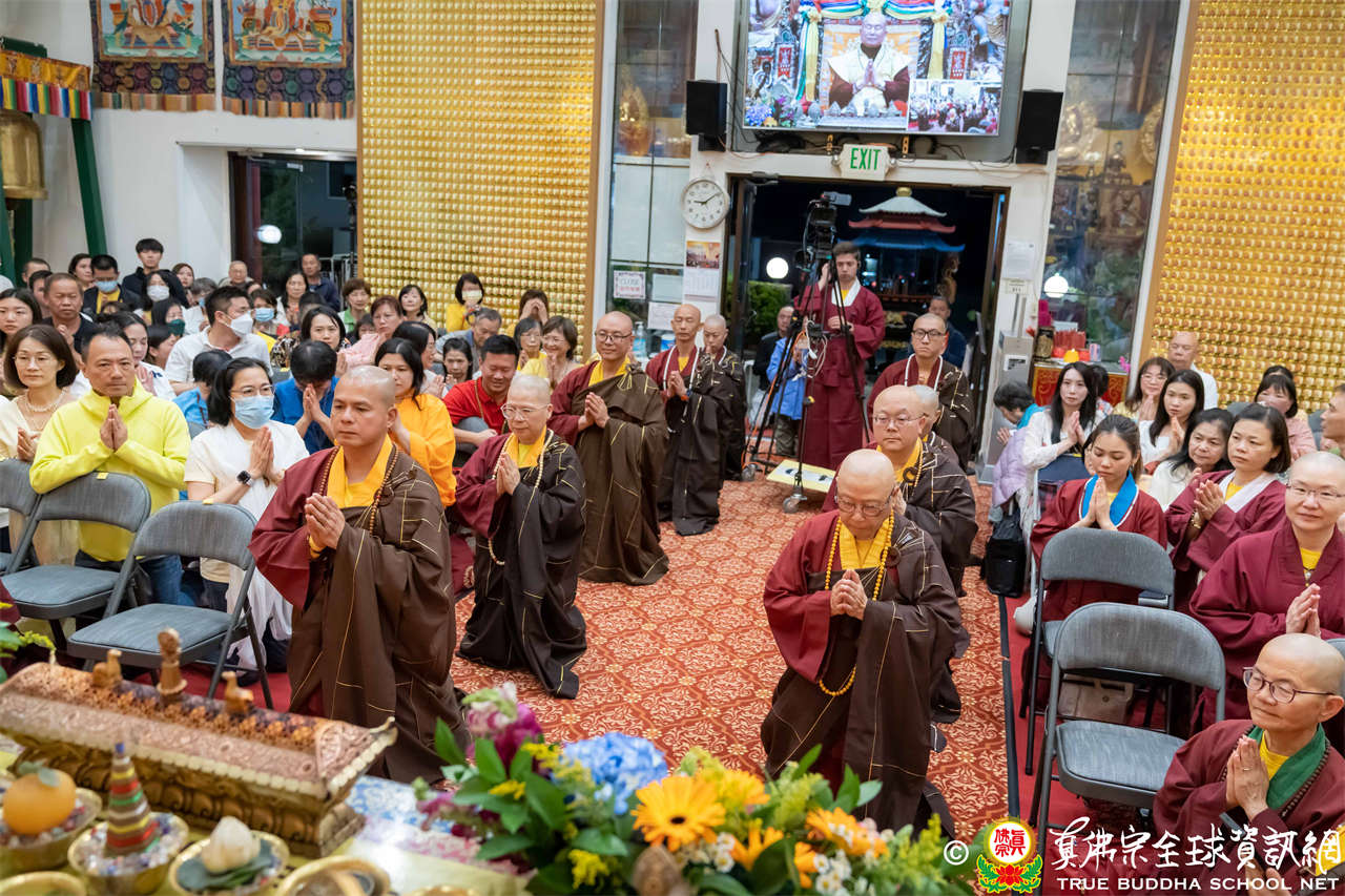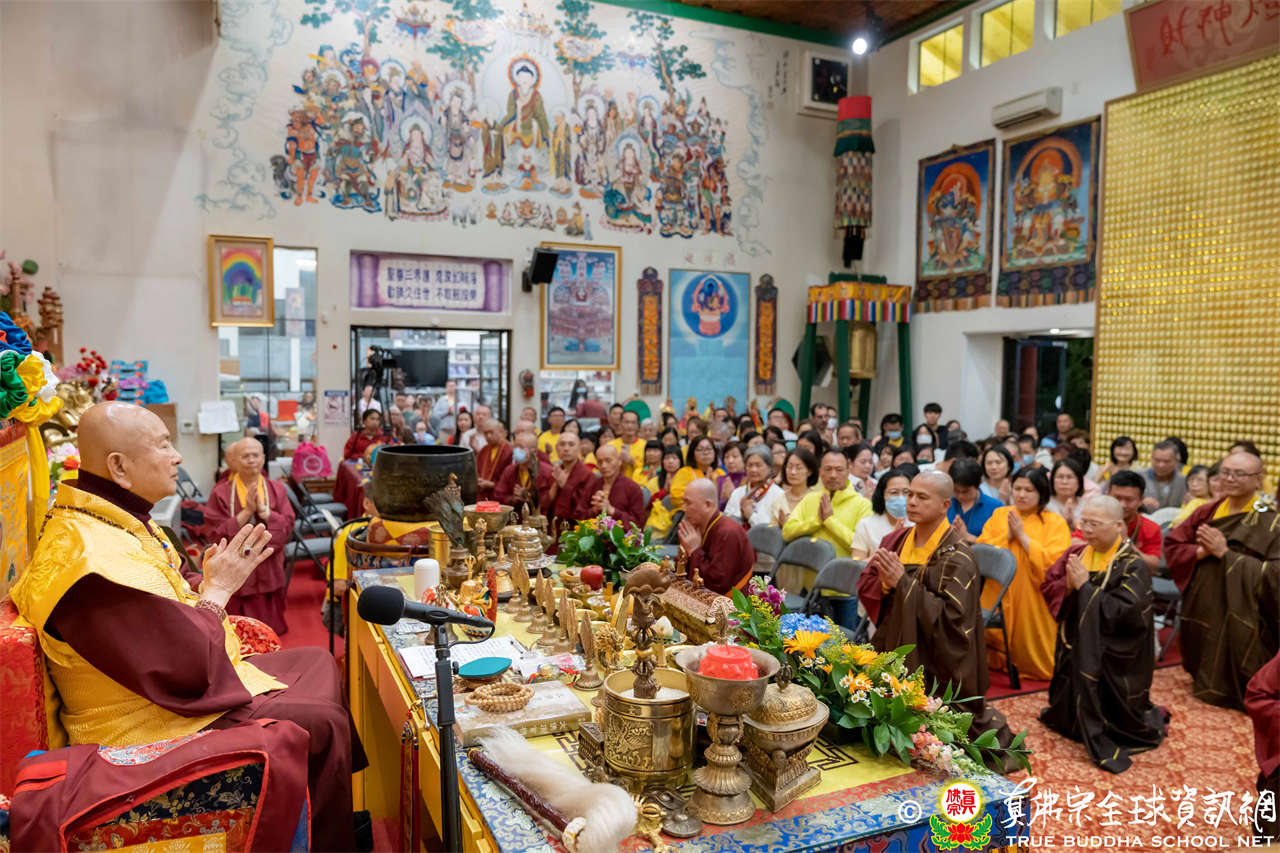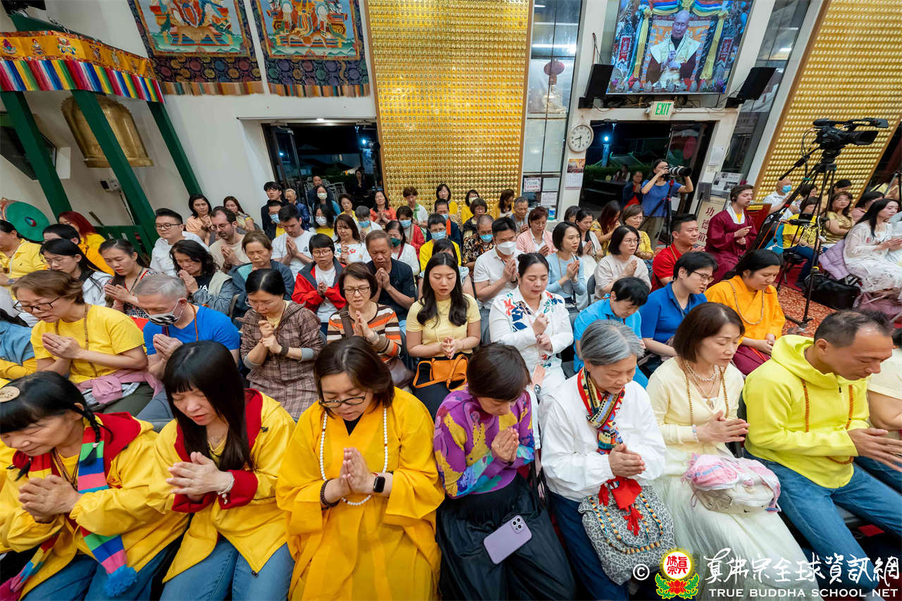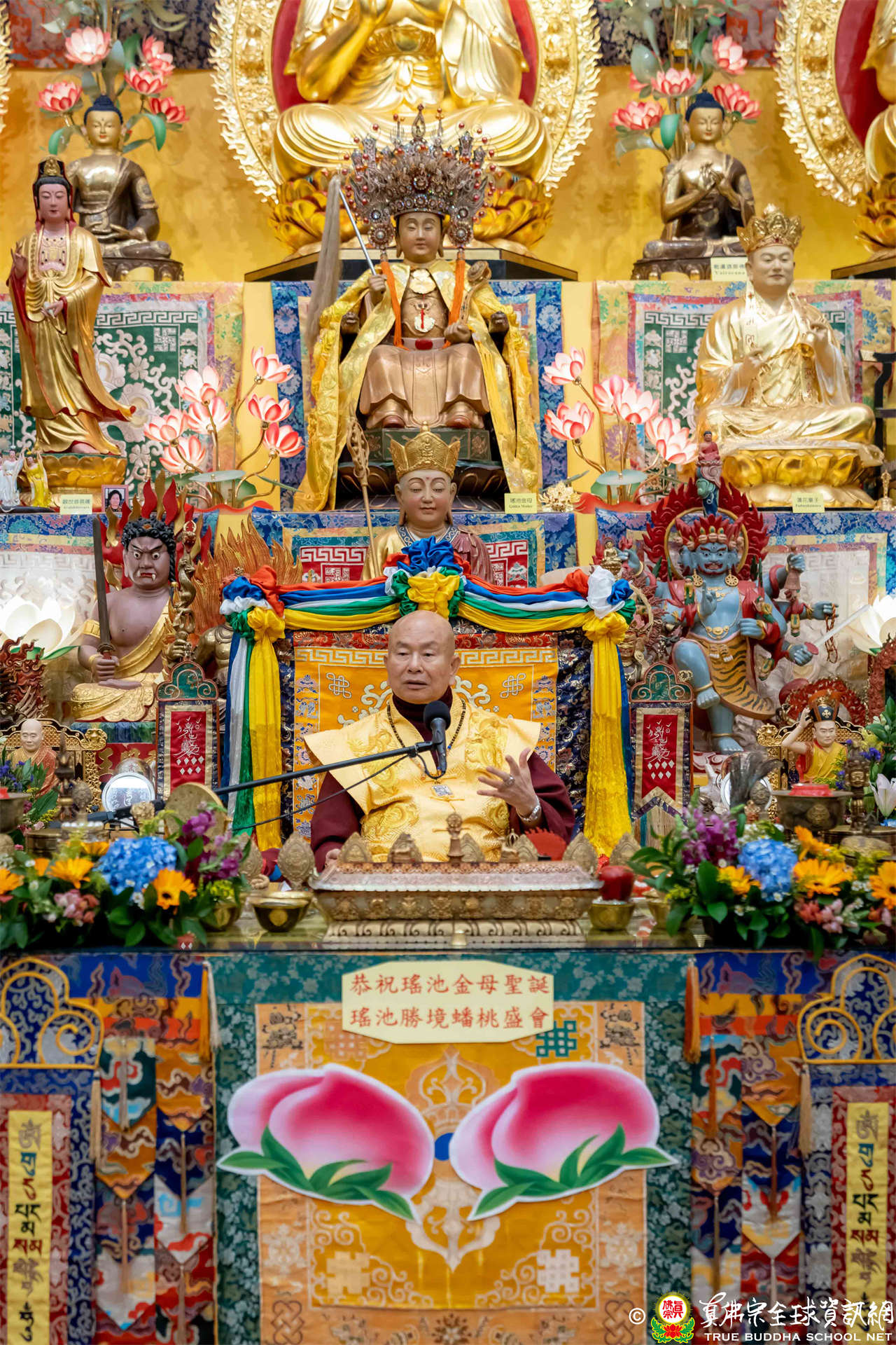為慶祝瑤池金母誕辰,西雅圖雷藏寺於2025年9月6日晚上八時舉行蟠桃盛會,同修瑤池金母本尊法,來自美洲、歐洲、亞洲、澳洲等地的各國善信匯聚於大雄寶殿,跟隨蓮生活佛禮拜佛菩薩、誦經、唸佛、持咒、入定。蓮生活佛帶領緇素大眾,祝賀瑤池金母聖誕千秋。