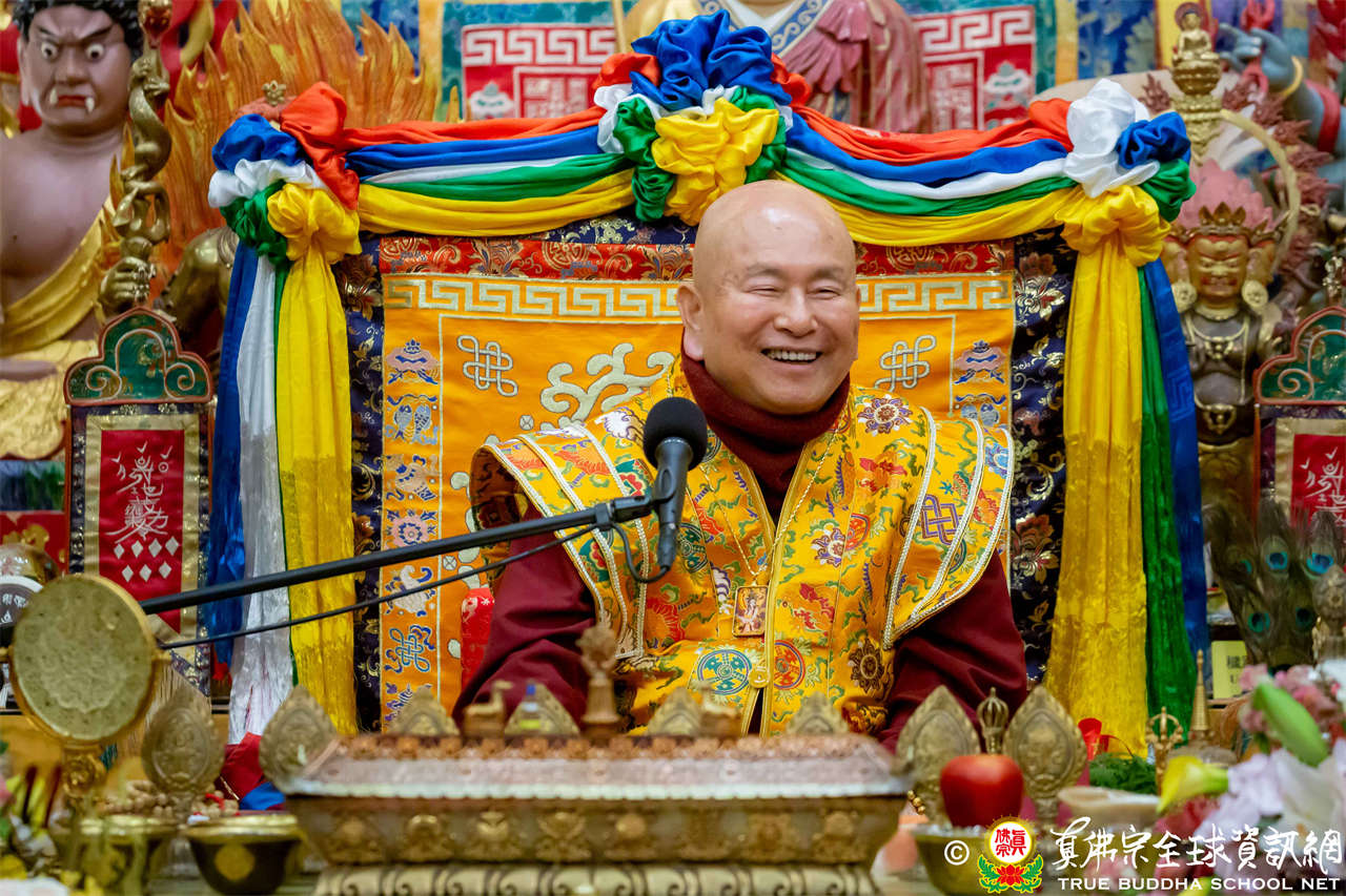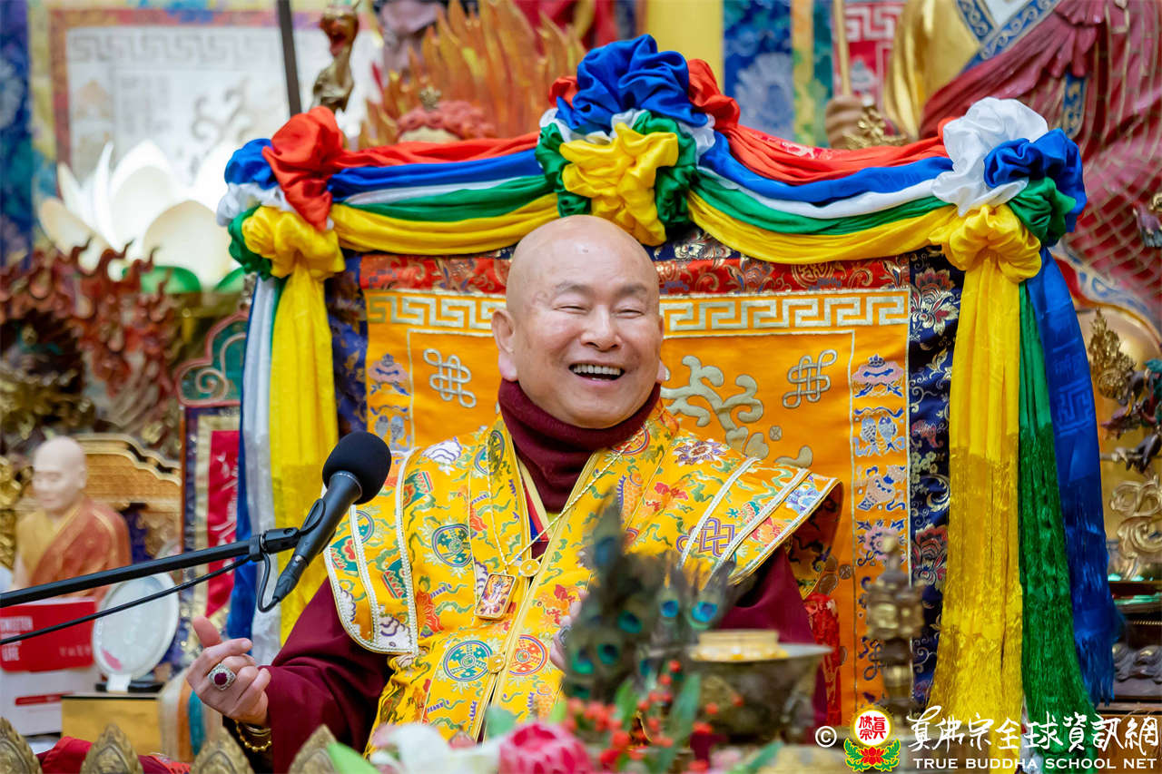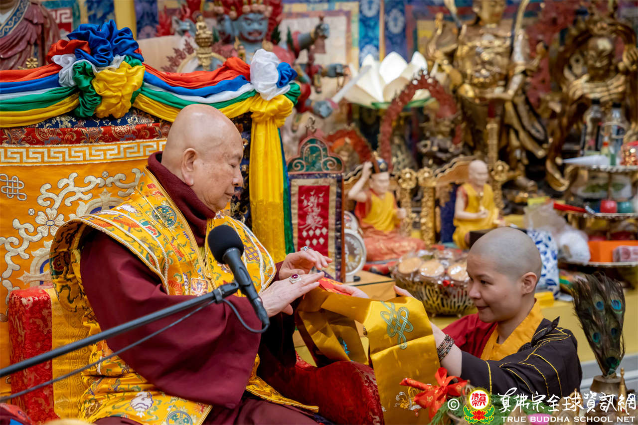 2025年10月18日聖尊蓮生活佛盧勝彥於西雅圖雷藏寺主持地藏王菩薩本尊法的同修,隨後為一對新人蓮花明亮與蓮花誼茵做福證,在與會大眾的見證與祝福之下,一切吉祥圓滿。