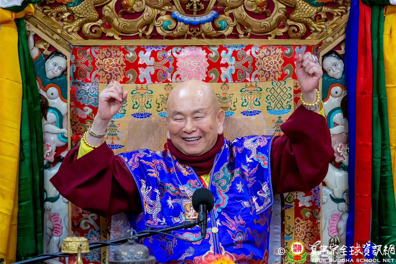 法王笑說:「我講舌吻、講善事,這都是講道理啊!學佛就是要明理、行善。」