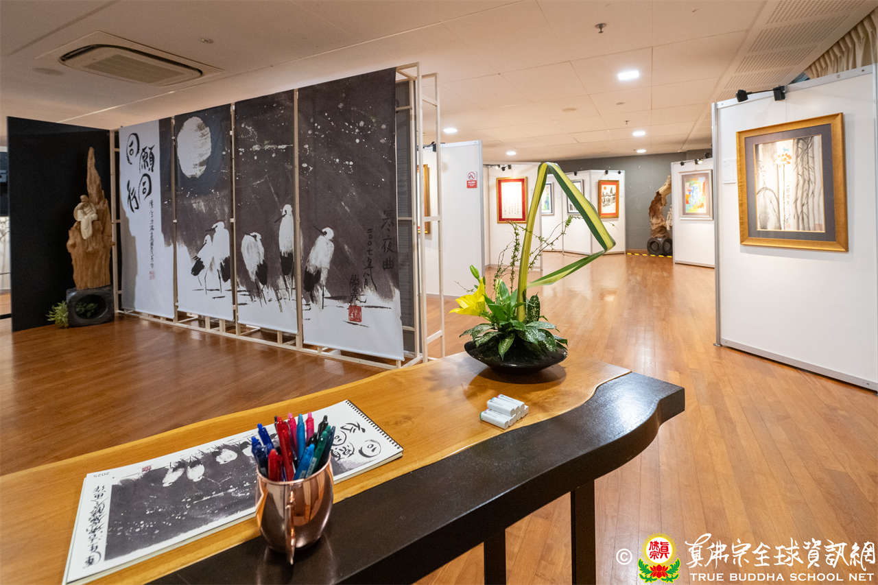 本次畫展一共展出了31幅法王蓮生活佛的真跡畫作及墨寶。這些作品均來自新加坡的立文師兄和永華師兄兩位居士大德多年來的珍藏,無私地提供給大會做公開展出,可謂殊勝難得。