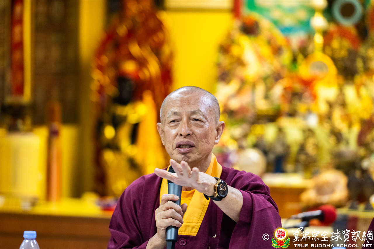 2025年11月1日上午真佛宗在新加坡聯合各道場舉辦蓮生法王真跡畫展隆重剪綵開幕後,再經過莊嚴的誦戒儀式,蓮滿長老以根本上師特別簽名加持的戒板為大眾清淨加持。接著世界真佛宗宗務委員會(簡稱 宗委會)核心小組與新加坡密教總會(簡稱新密總)籌委會一行人,隨即假藉圓證雷藏寺進行互動交流。