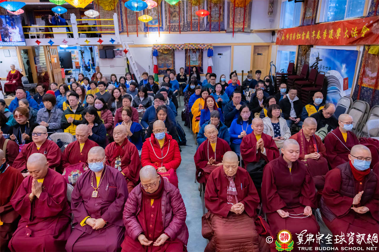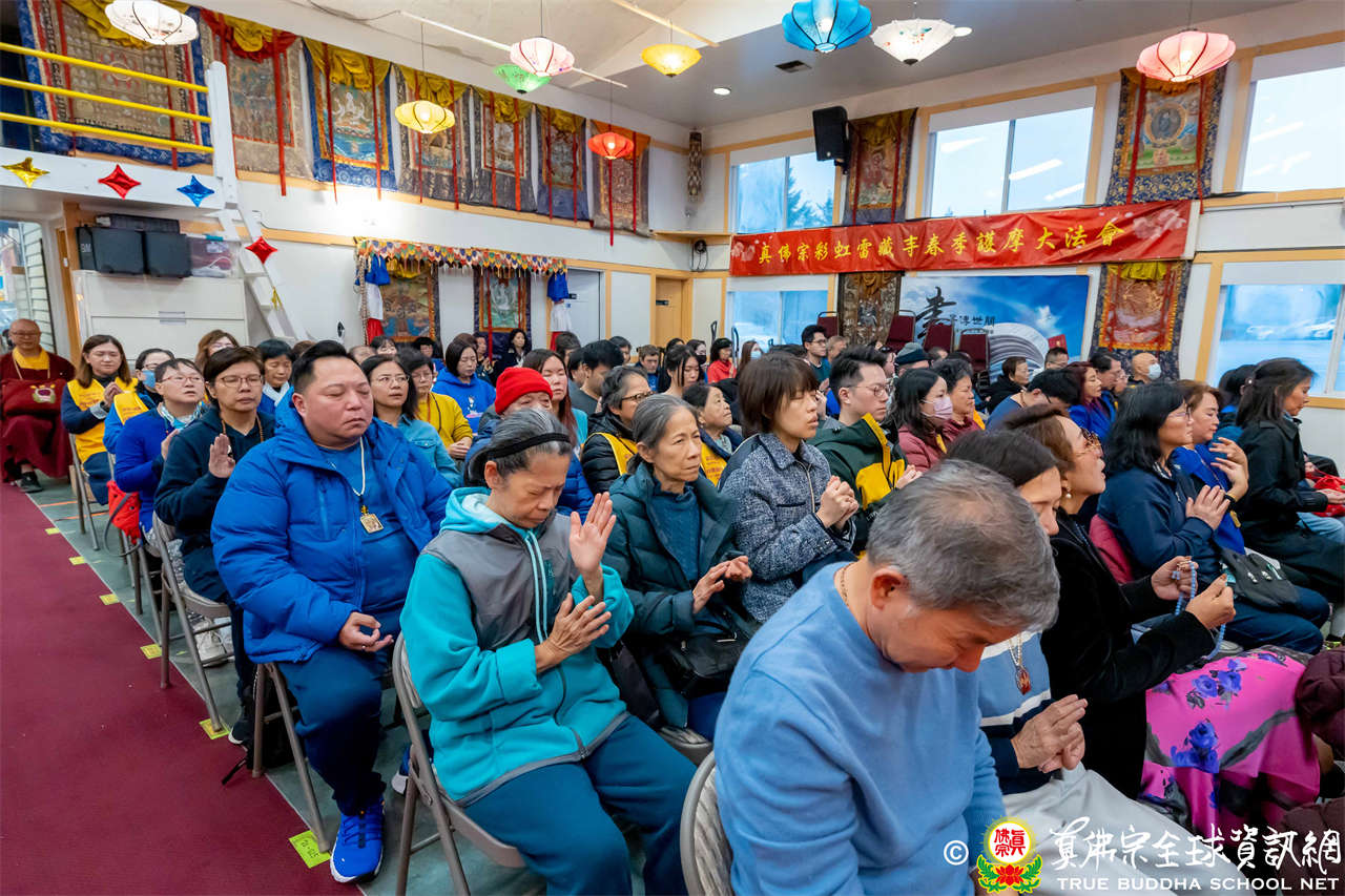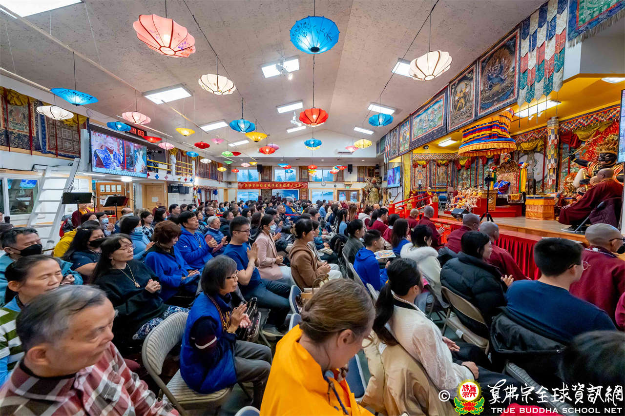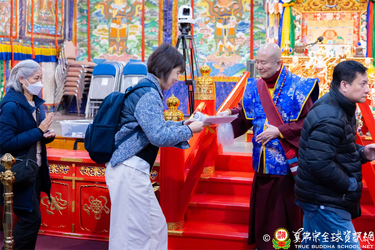 法王開示畢,衆人報以熱烈掌聲感謝法王。接著法王下座與線上弟子互相問候,並為與會大衆賜授藥師佛法灌頂。法會至此圓滿結束。