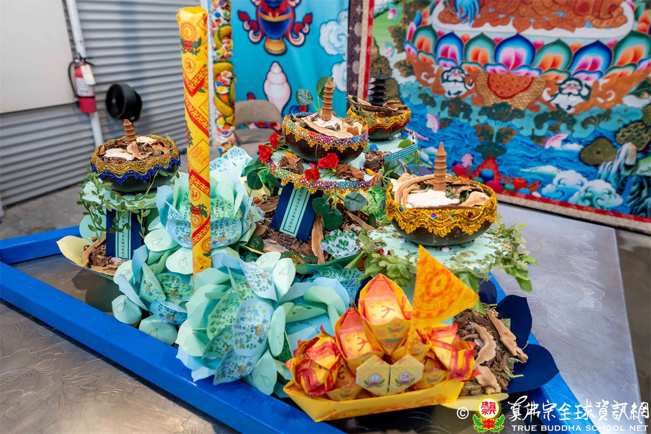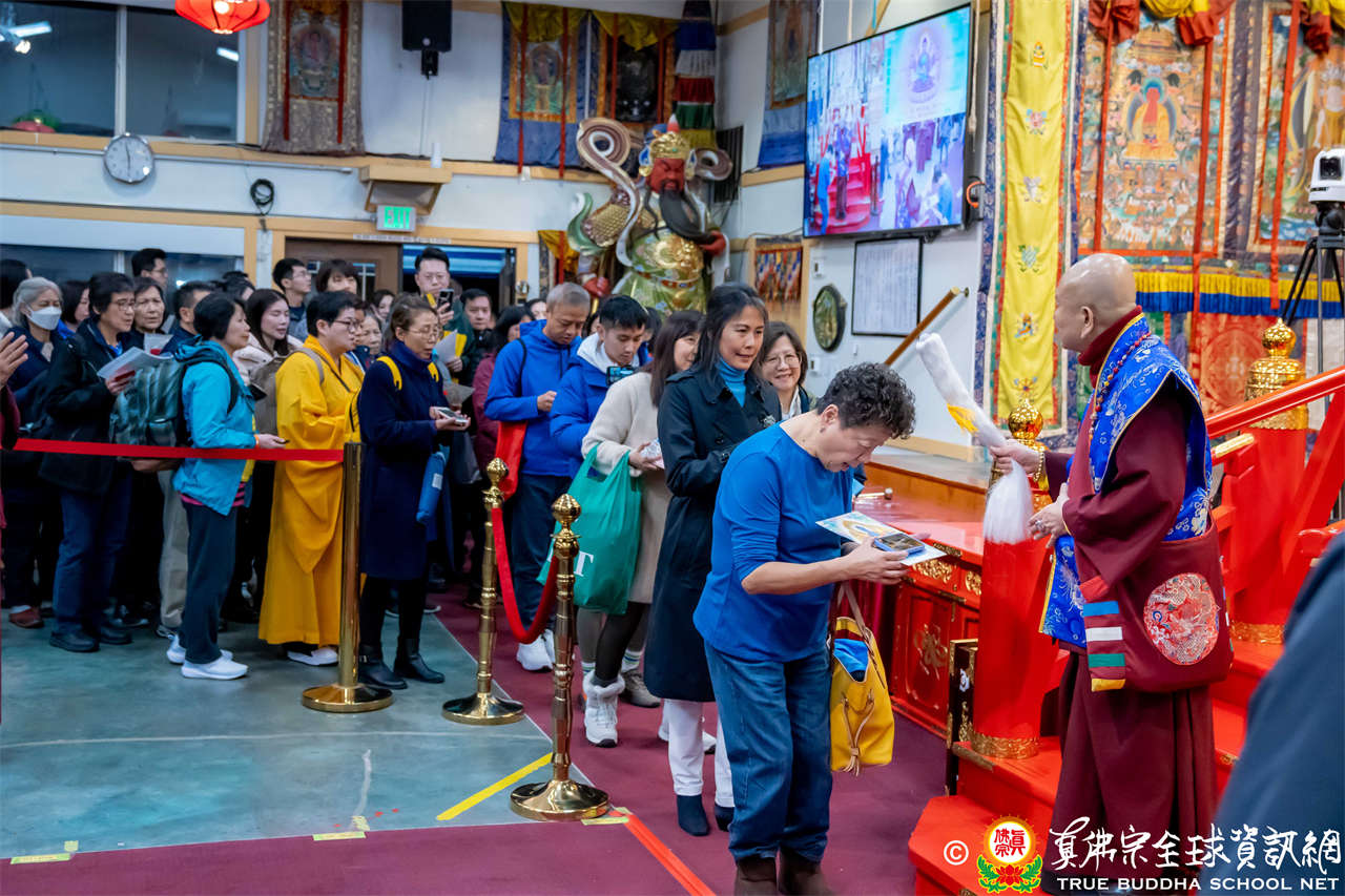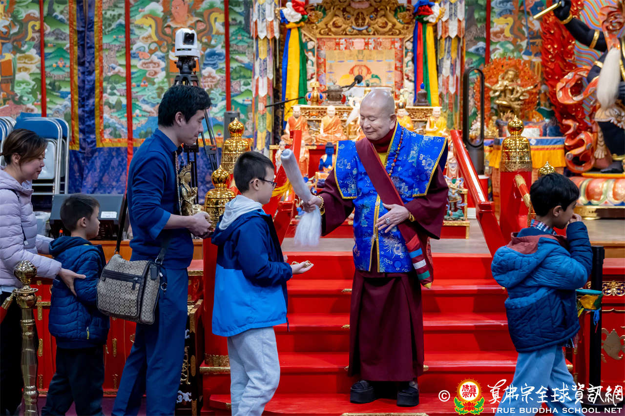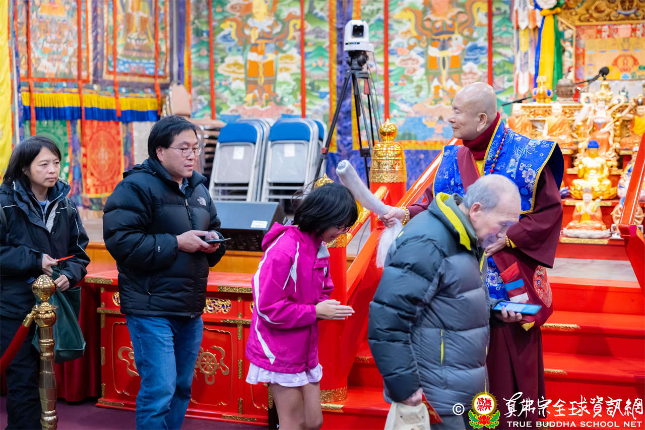 法王開示畢,衆人報以熱烈掌聲感謝法王。接著法王下座與線上弟子互相問候,並為與會大衆賜授藥師佛法灌頂。法會至此圓滿結束。