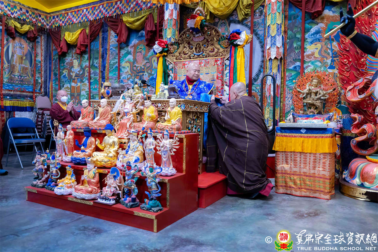 法王談及是日主尊,祂曾在韓國慶州清晰見到藥師琉璃光佛與日光、月光菩薩,及十二藥叉神將等眷屬的完整顯現。