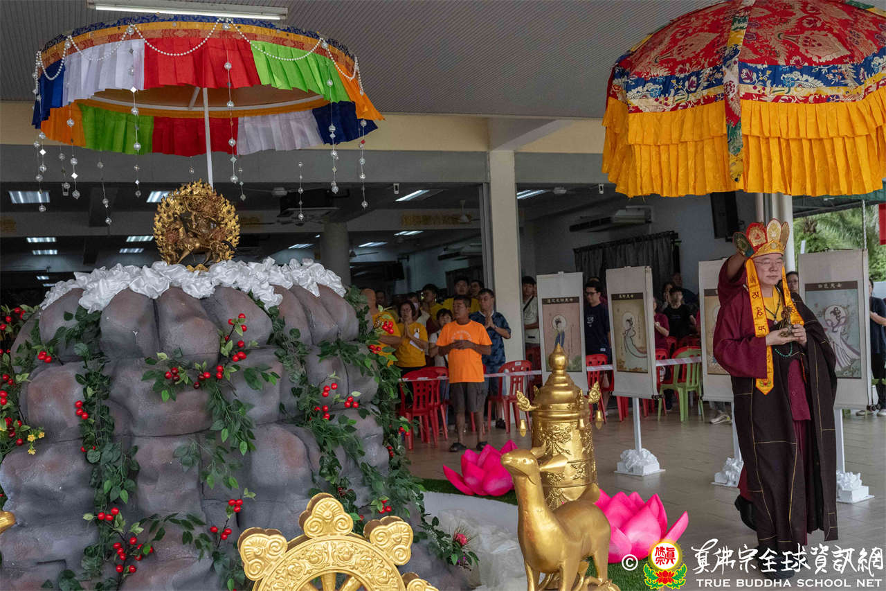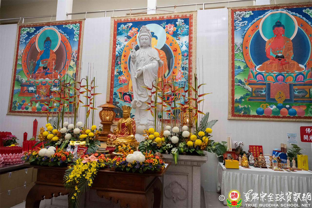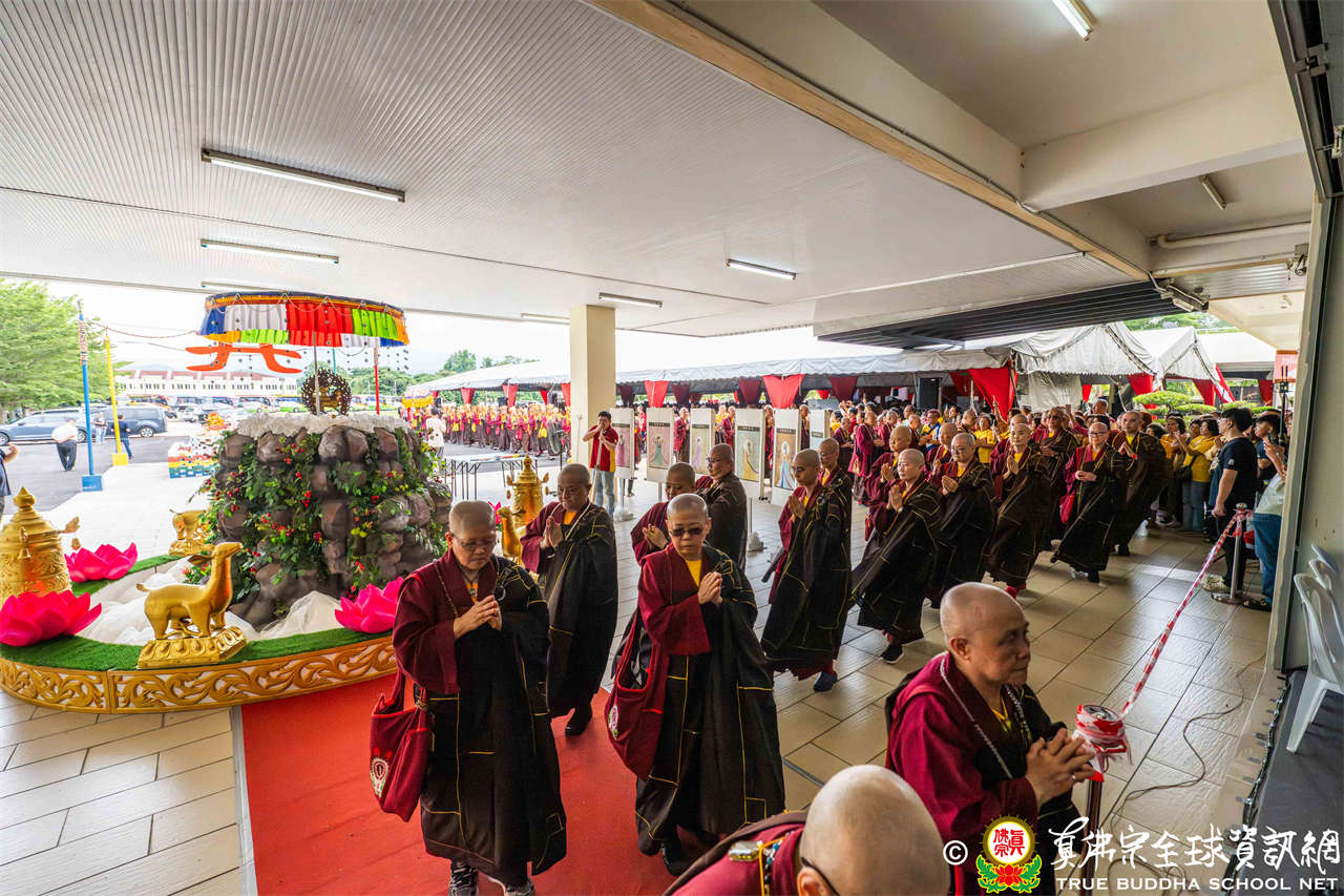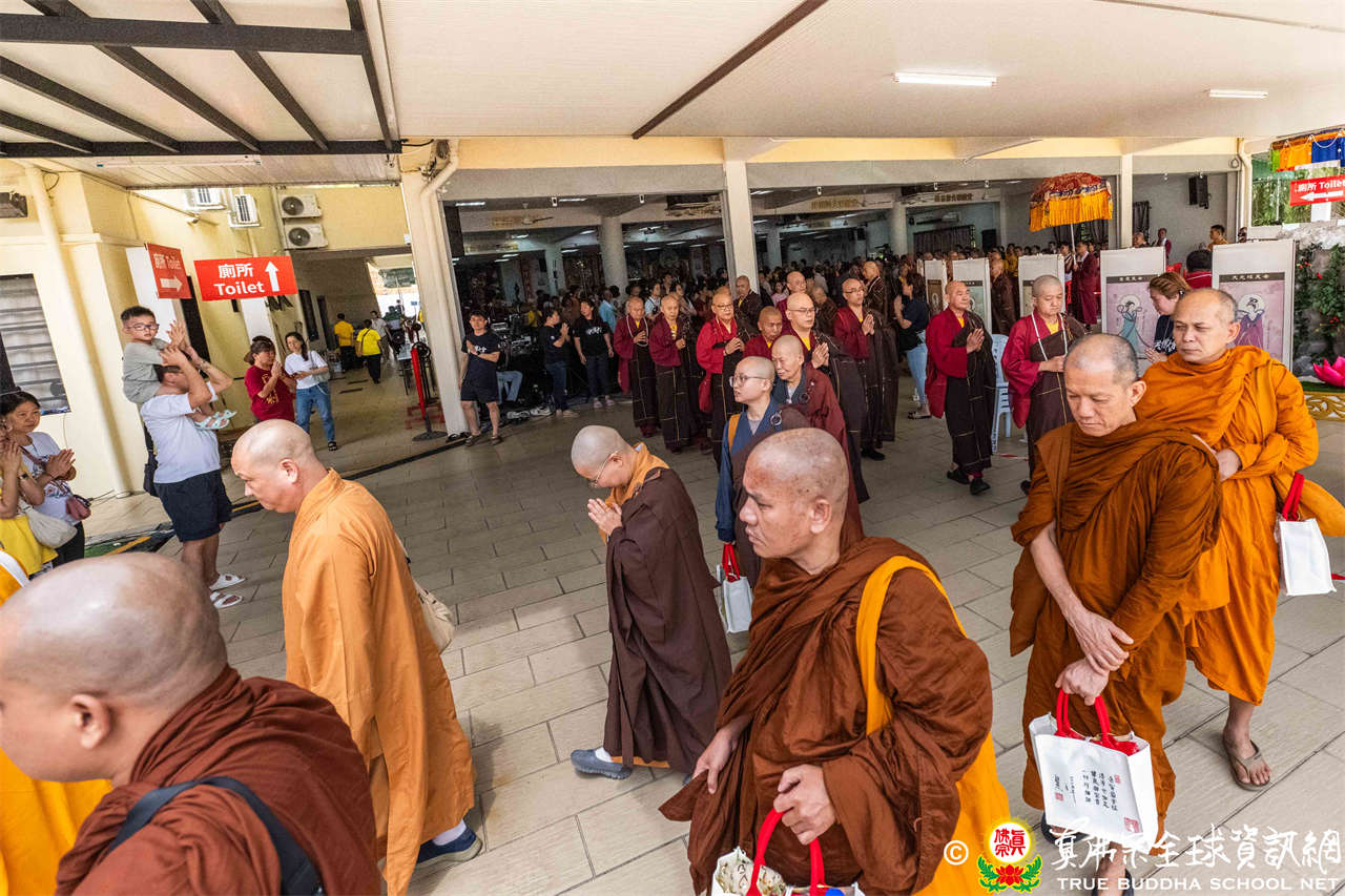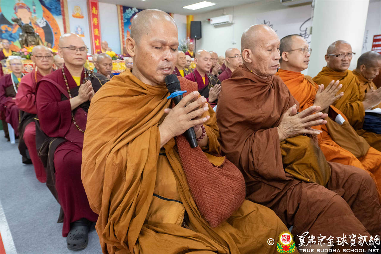 供僧大會依循《真佛宗供僧儀軌》肅穆進行,由長老釋蓮栽上師代表根本上師聖尊蓮生活佛盧勝彥納受信眾供養,並代表供養住世羅漢賓頭盧尊者。全體真佛弟子齊聲念誦《請佛住世祈願文》,祈請根本上師常住世間、永轉法輪;現場亦有南傳僧人持誦巴利文《祈禱文》,北傳僧人念誦《大悲咒》及《心經》。隨後,眾同門善信向僧眾敬獻哈達與供養,並由釋蓮栽長老開示佛法,供僧大會圓滿。