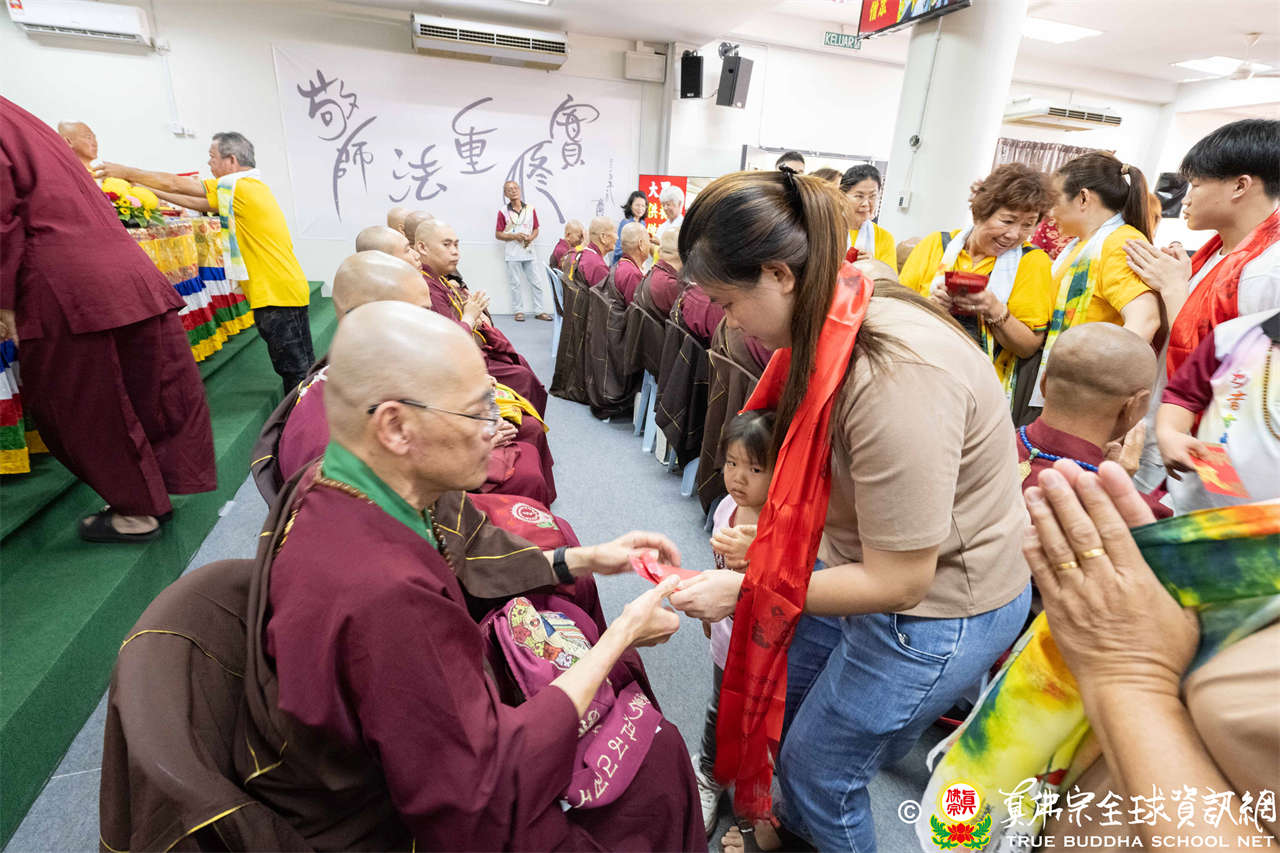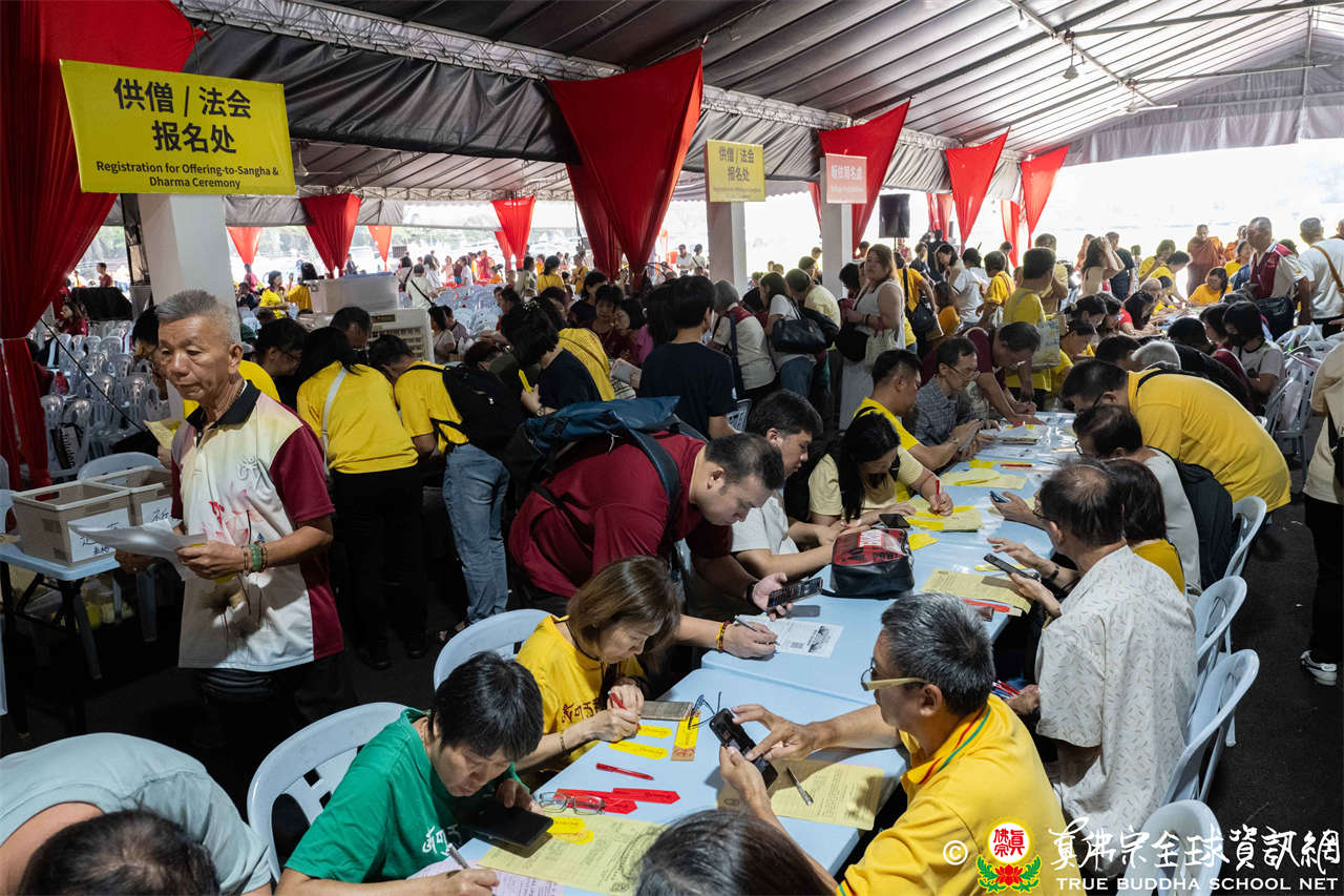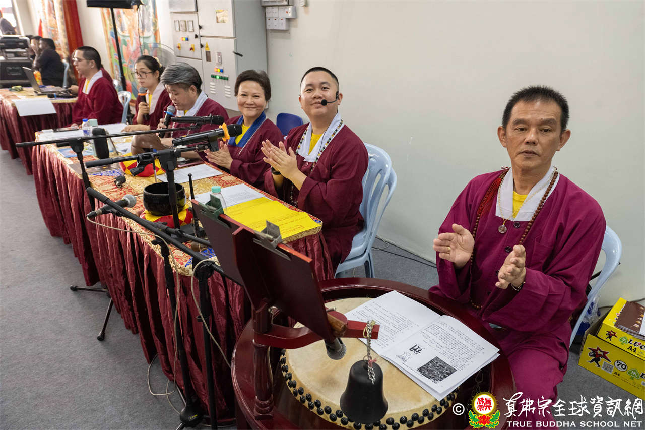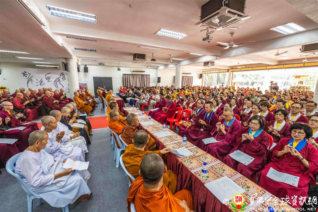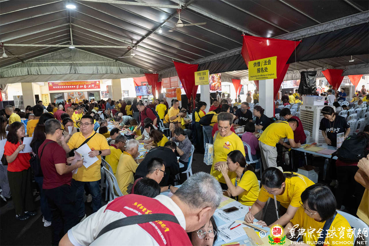 本次供僧大會恭請長老釋蓮栽上師主壇,隨後的「大吉祥天女護摩法會」則由宗委會教育處處長釋蓮訶上師主壇。約30位來自全球的真佛宗上師,及教授師、法師、講師及助教等近百位各級弘法人員共同與會。值得一提的是,與會僧眾涵蓋了南傳、北傳佛教僧人,體現了宗派廣納百川的包容精神。宗委會及馬密總法律顧問羅日良律師、黃月琴律師等貴賓亦出席護持。來自全馬各地的道場負責人和同門紛紛組團參與,35輛旅遊巴士整齊停泊會場,場面莊嚴殊勝。