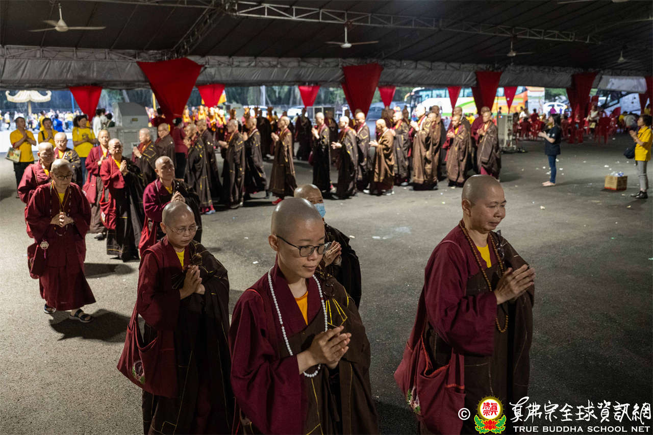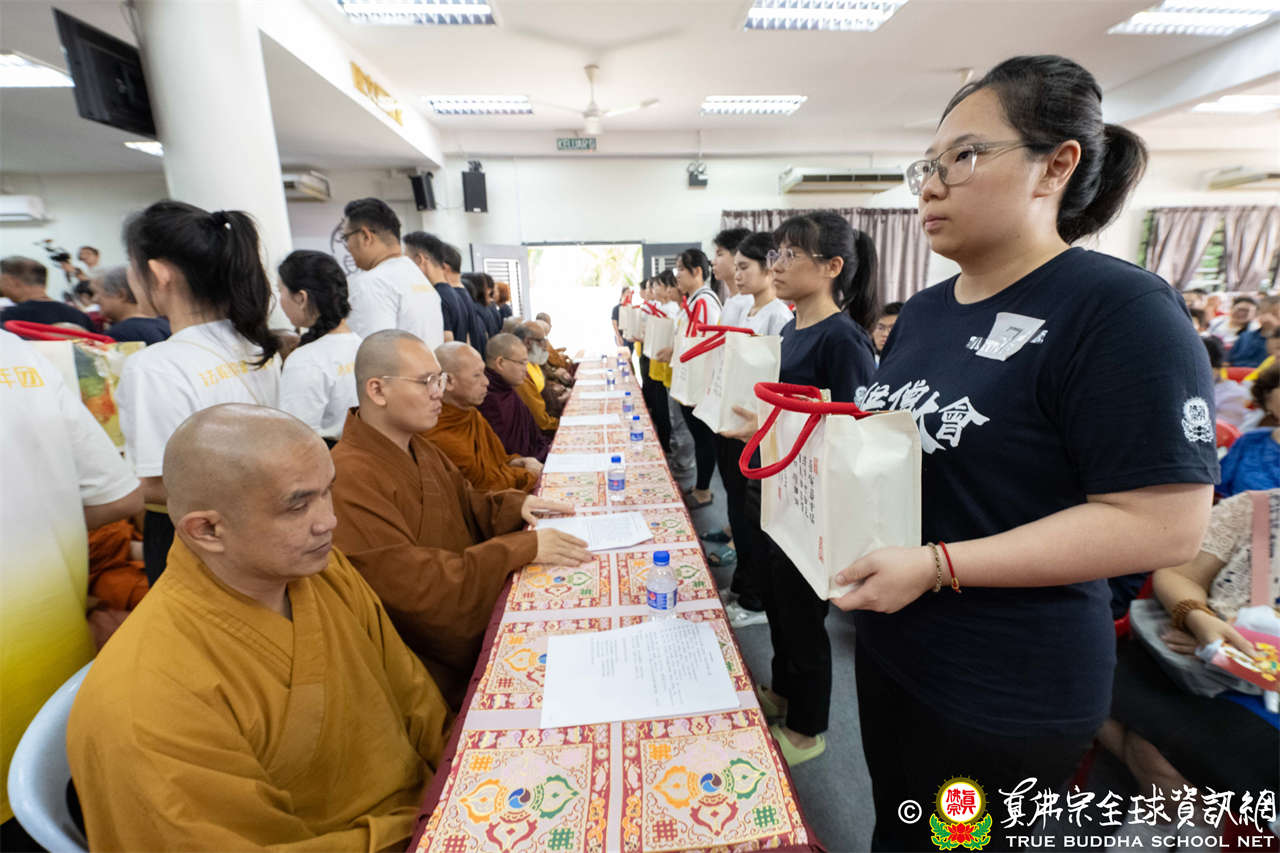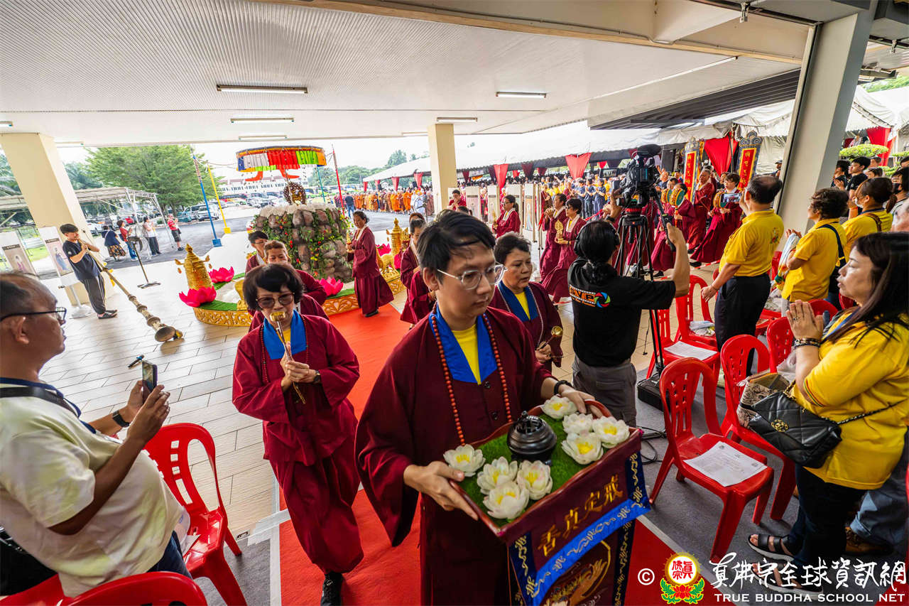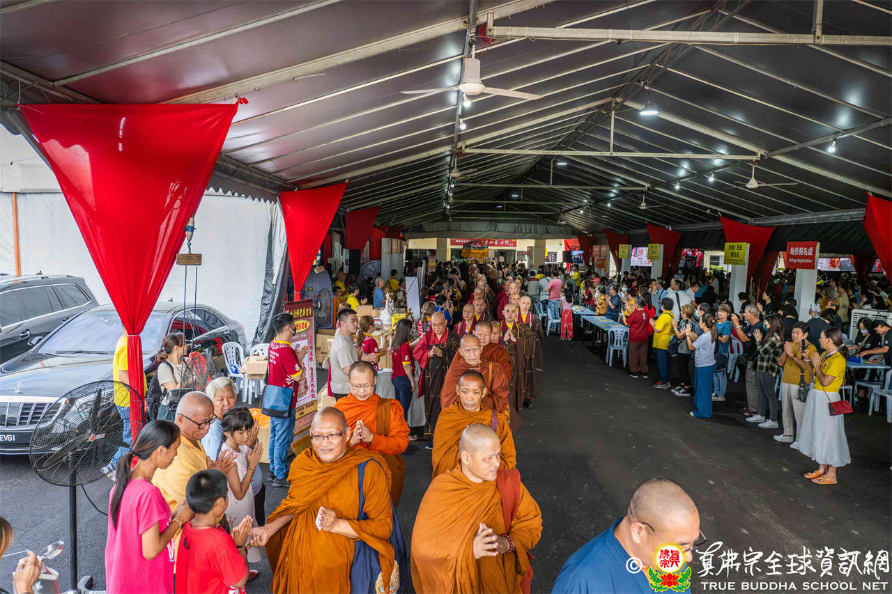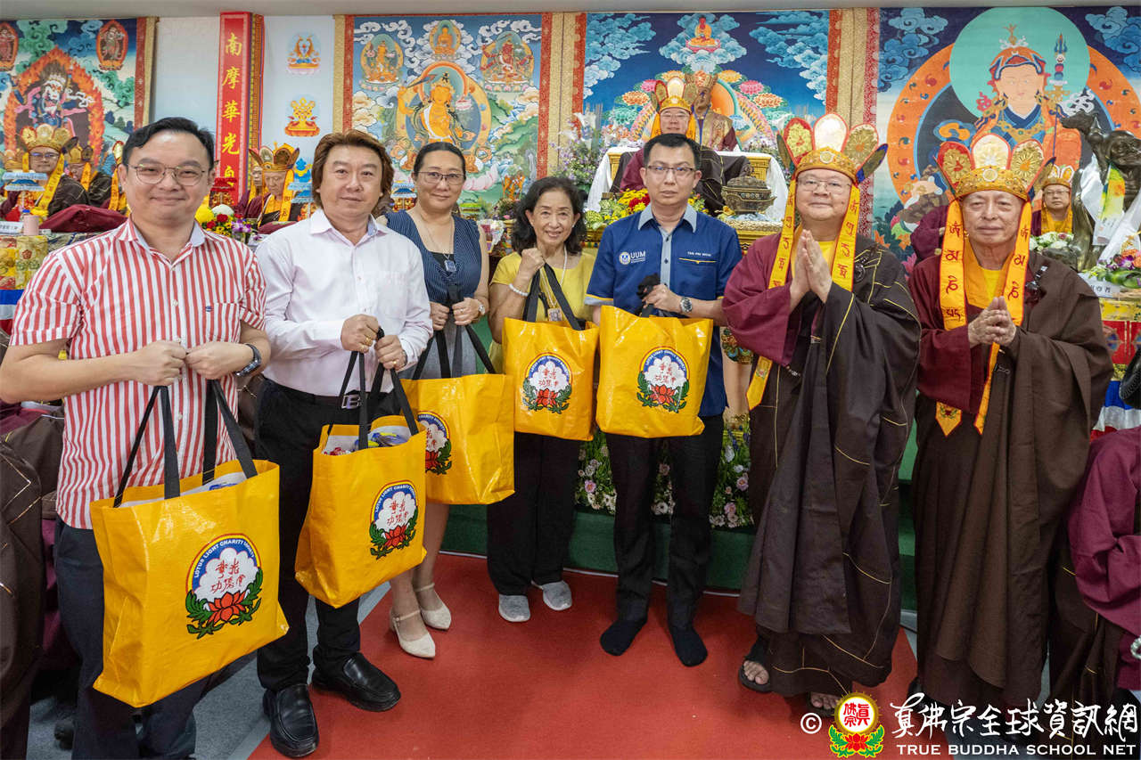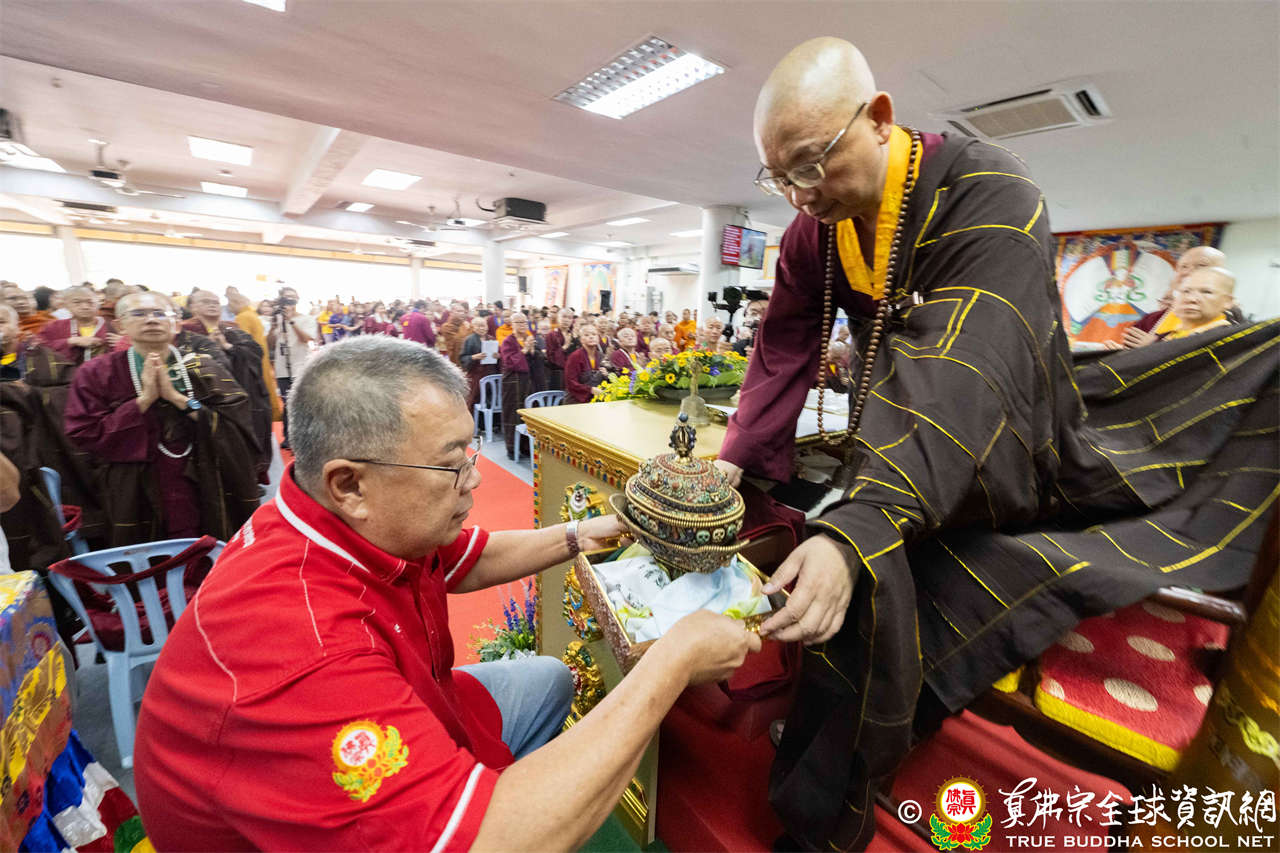 本次供僧大會恭請長老釋蓮栽上師主壇,隨後的「大吉祥天女護摩法會」則由宗委會教育處處長釋蓮訶上師主壇。約30位來自全球的真佛宗上師,及教授師、法師、講師及助教等近百位各級弘法人員共同與會。值得一提的是,與會僧眾涵蓋了南傳、北傳佛教僧人,體現了宗派廣納百川的包容精神。宗委會及馬密總法律顧問羅日良律師、黃月琴律師等貴賓亦出席護持。來自全馬各地的道場負責人和同門紛紛組團參與,35輛旅遊巴士整齊停泊會場,場面莊嚴殊勝。