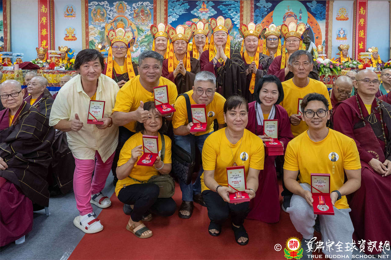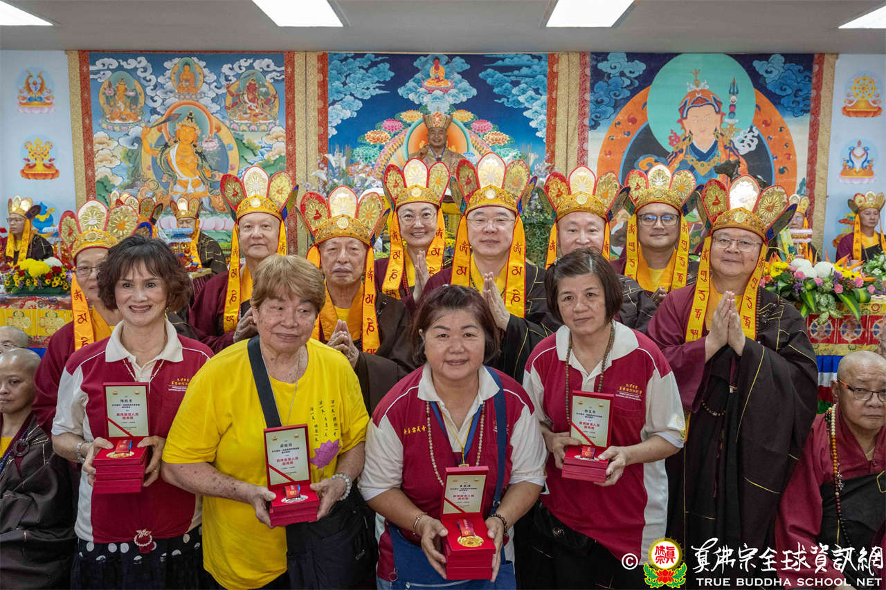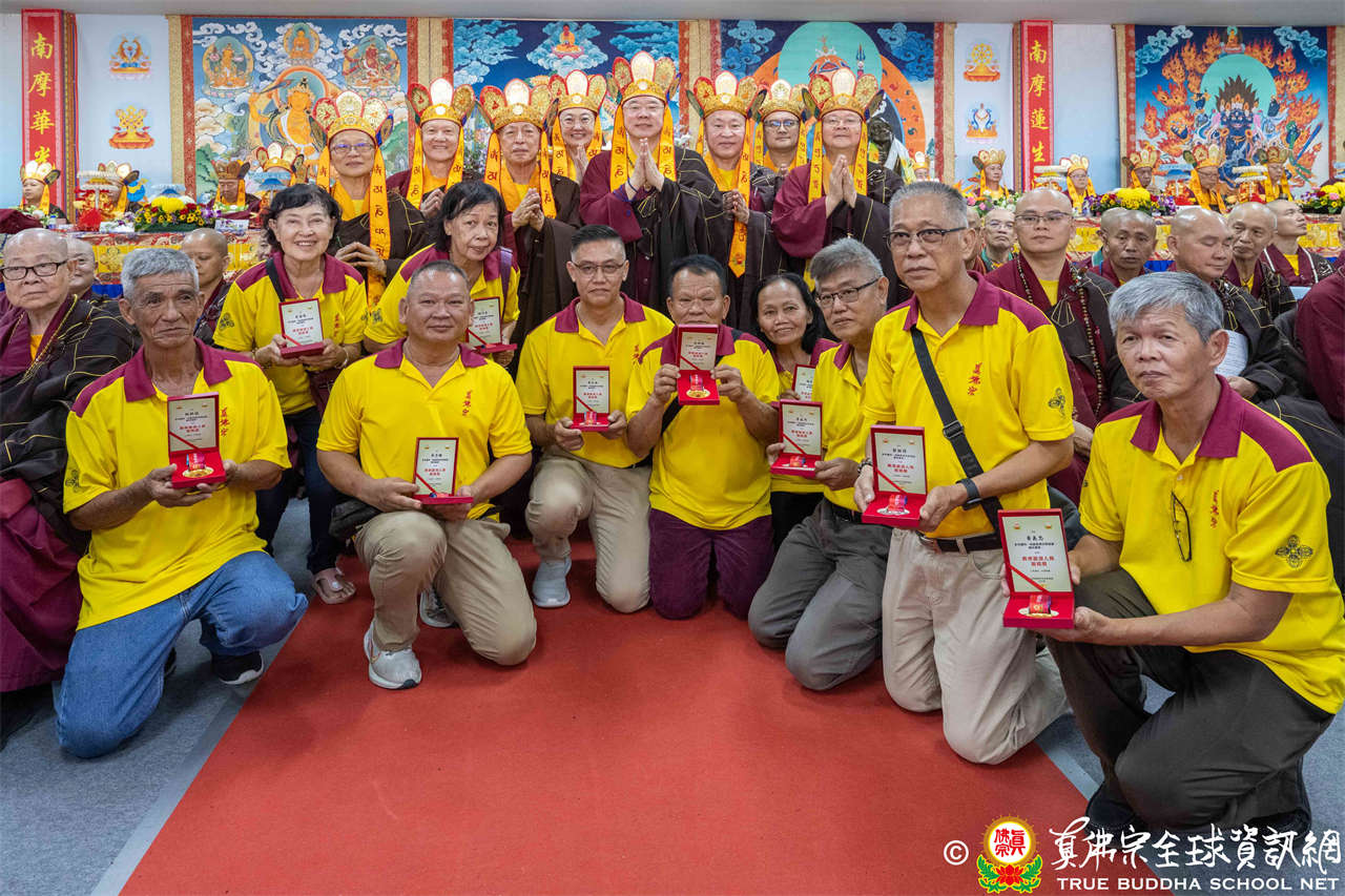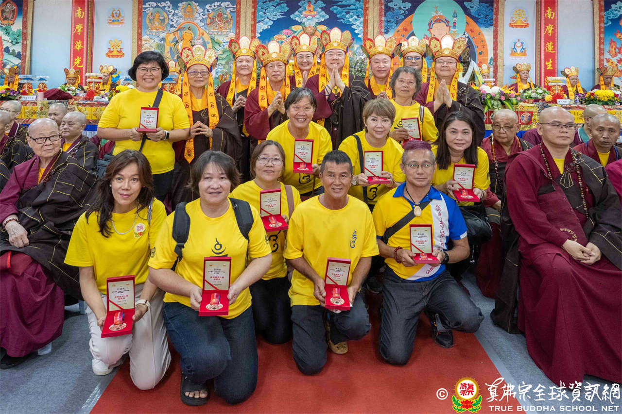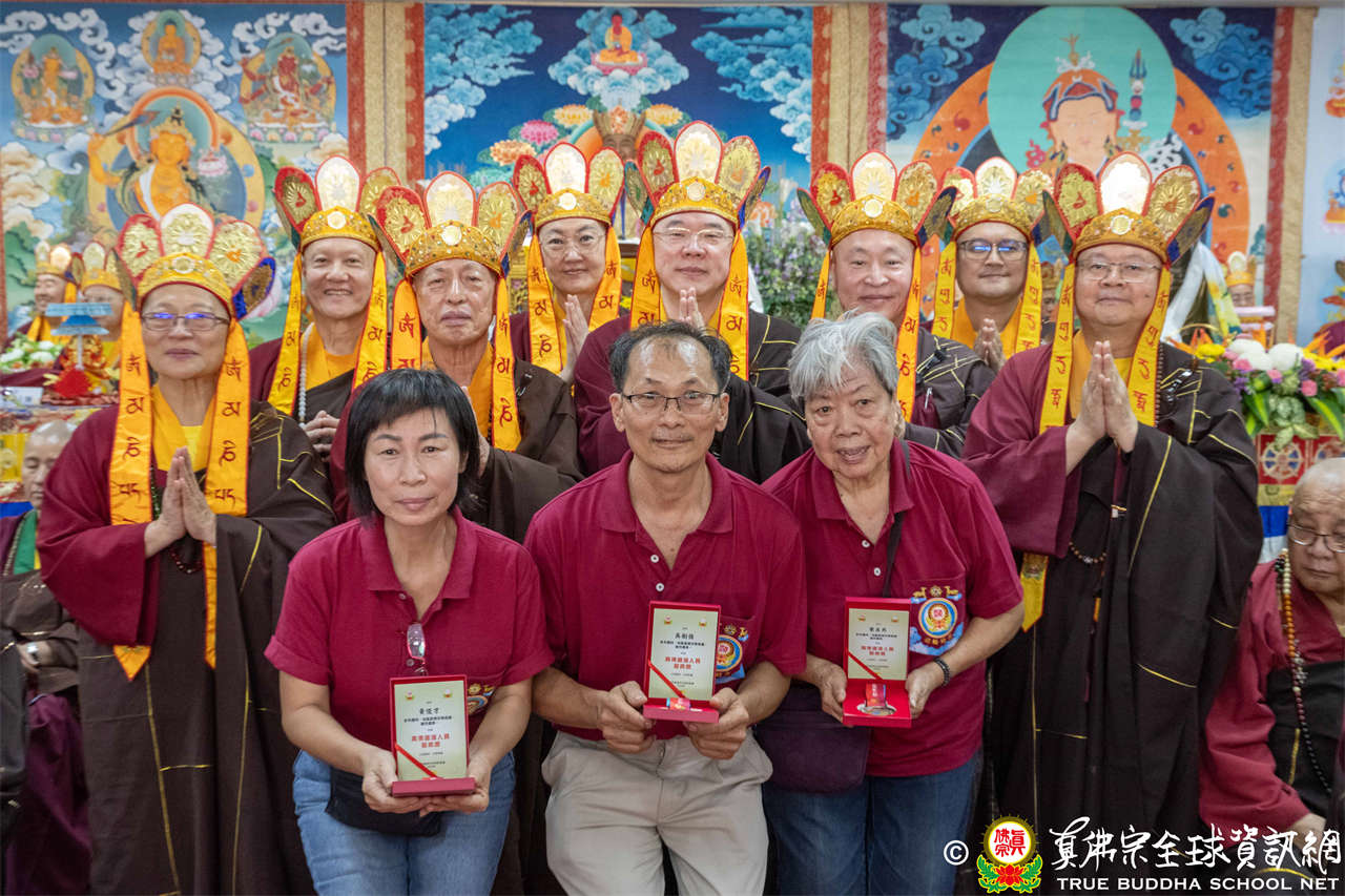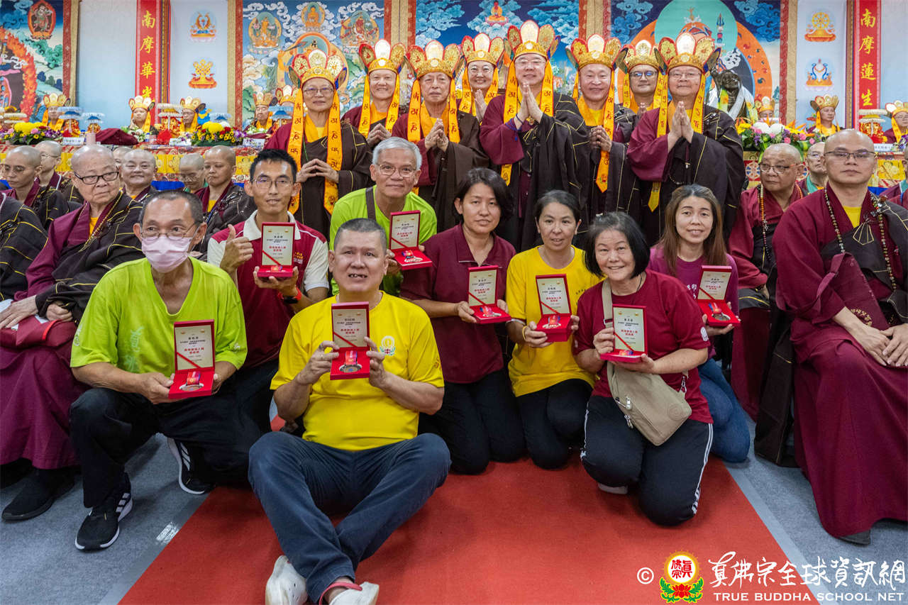 一、頒發獎章典禮:護摩法會開始前,宗委會舉辦了隆重的頒獎典禮,表揚在弘法及對當地社會具有卓越貢獻的真佛僧伽及居士,感恩其為宗派默默付出。