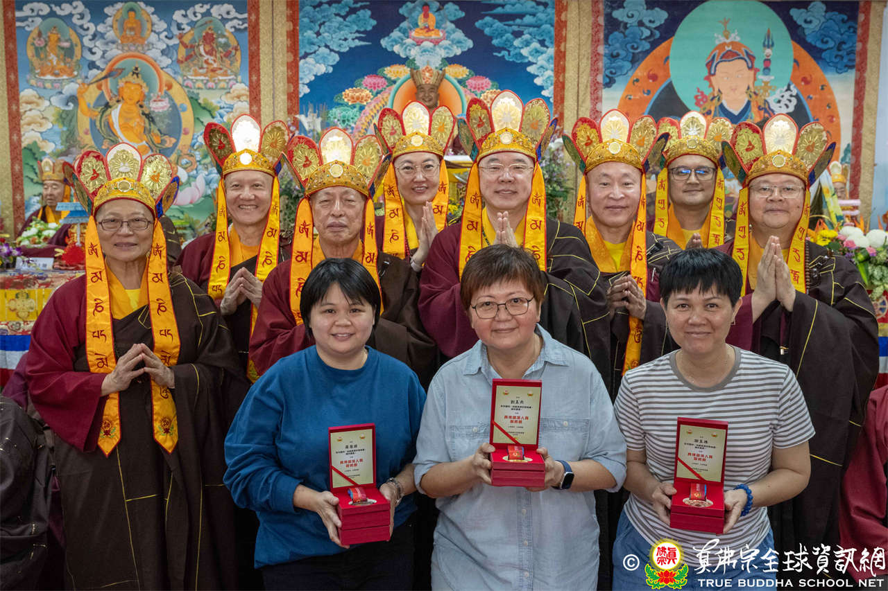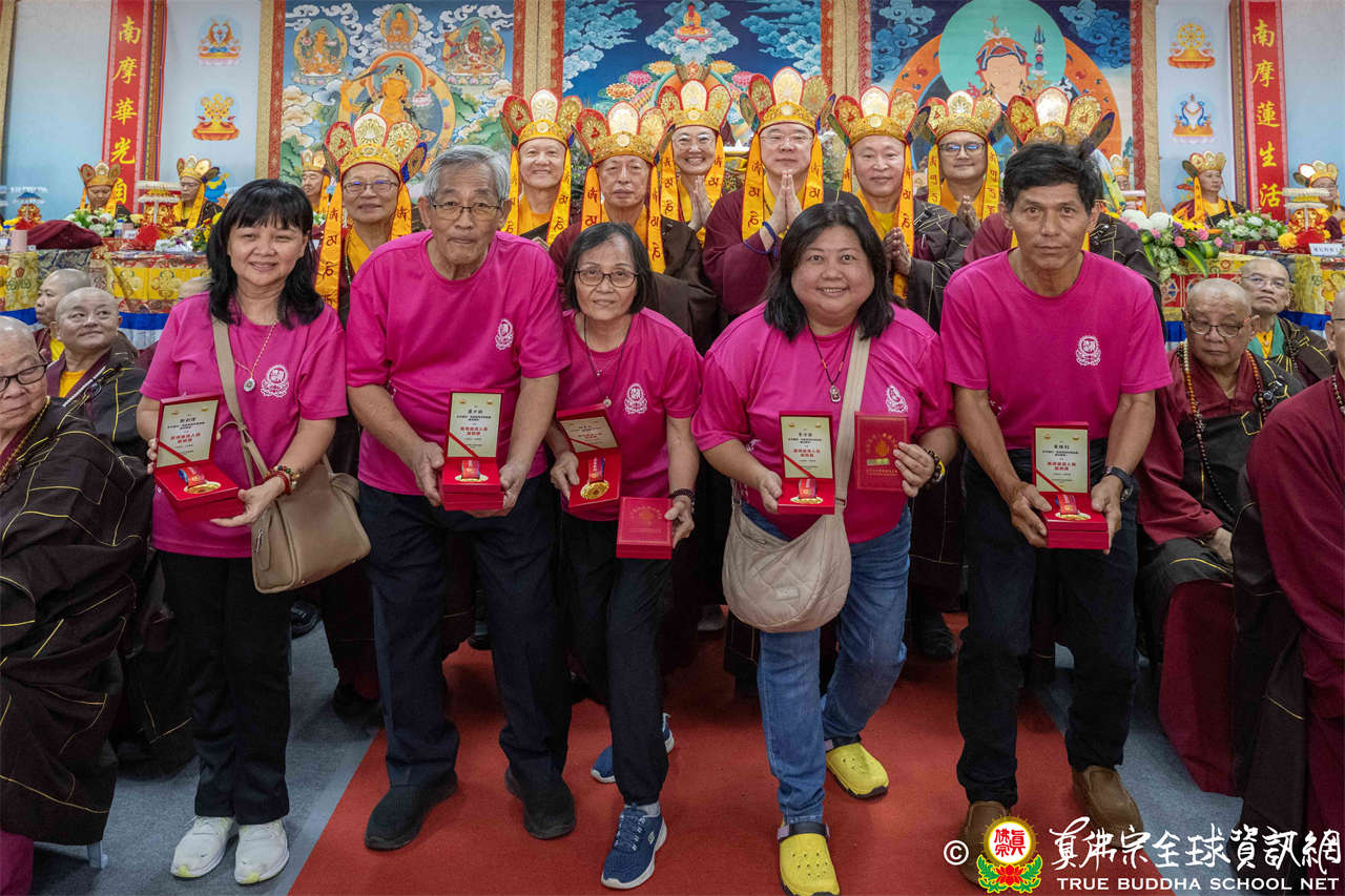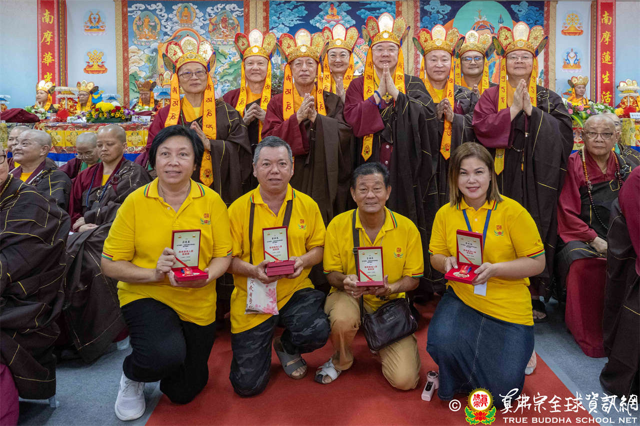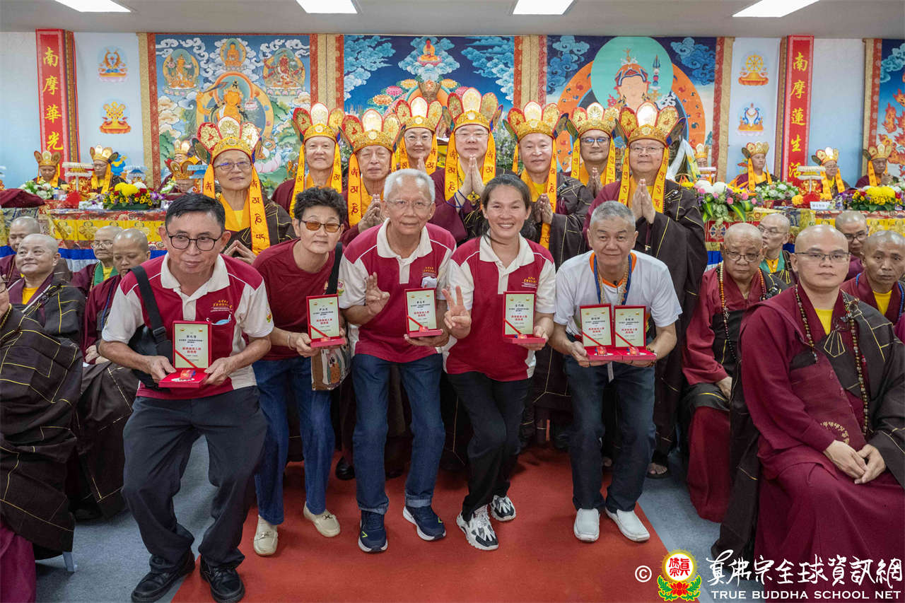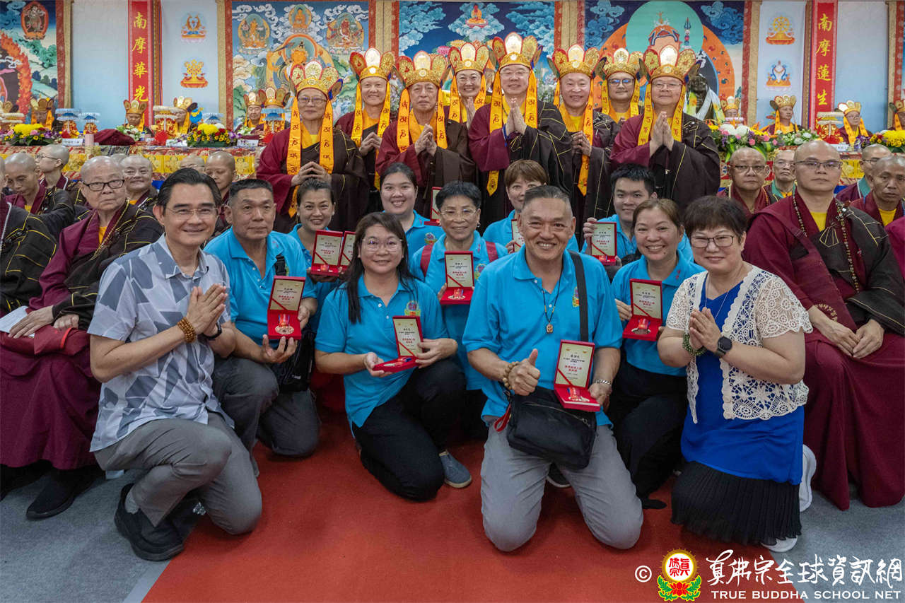 一、頒發獎章典禮:護摩法會開始前,宗委會舉辦了隆重的頒獎典禮,表揚在弘法及對當地社會具有卓越貢獻的真佛僧伽及居士,感恩其為宗派默默付出。