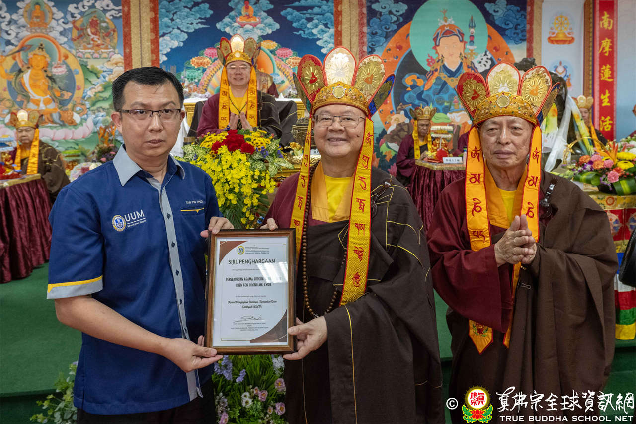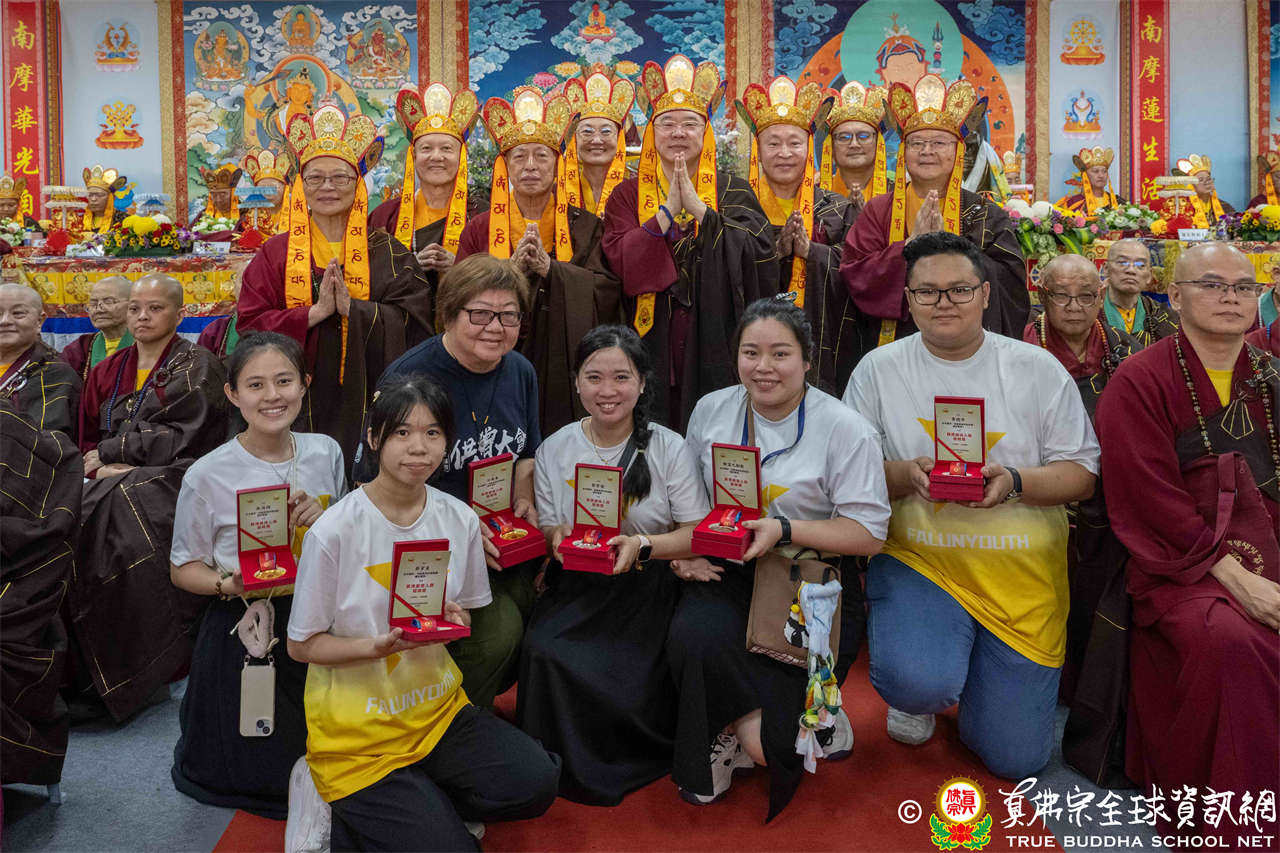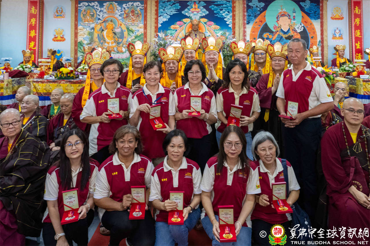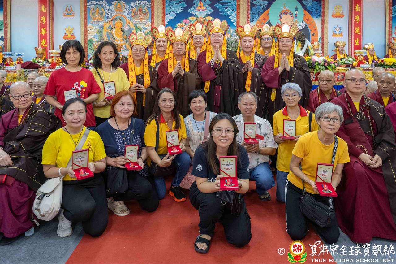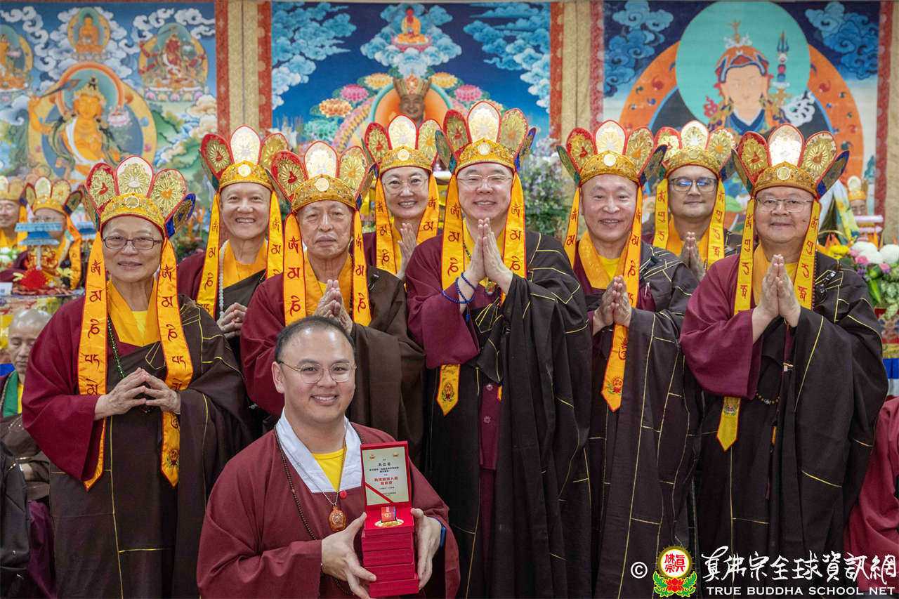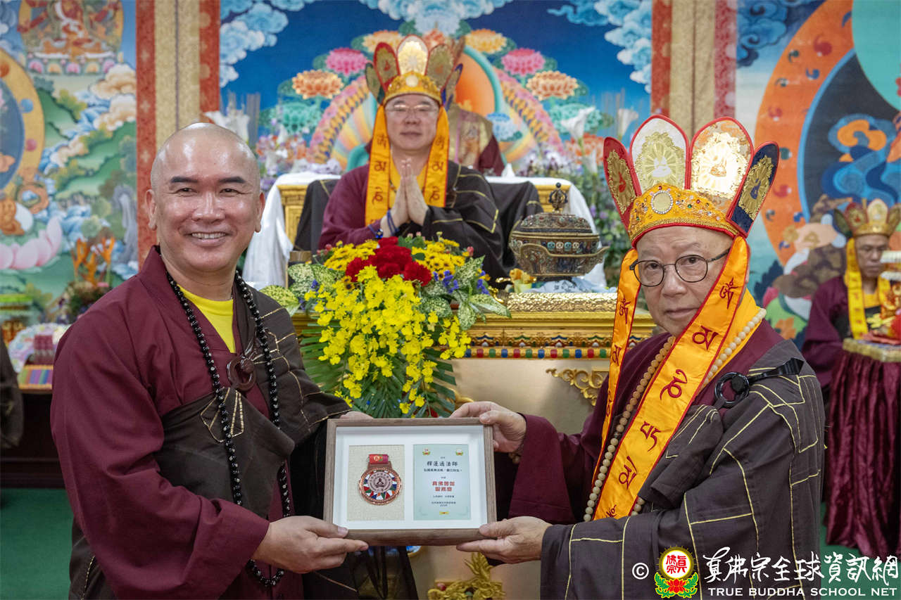 一、頒發獎章典禮:護摩法會開始前,宗委會舉辦了隆重的頒獎典禮,表揚在弘法及對當地社會具有卓越貢獻的真佛僧伽及居士,感恩其為宗派默默付出。