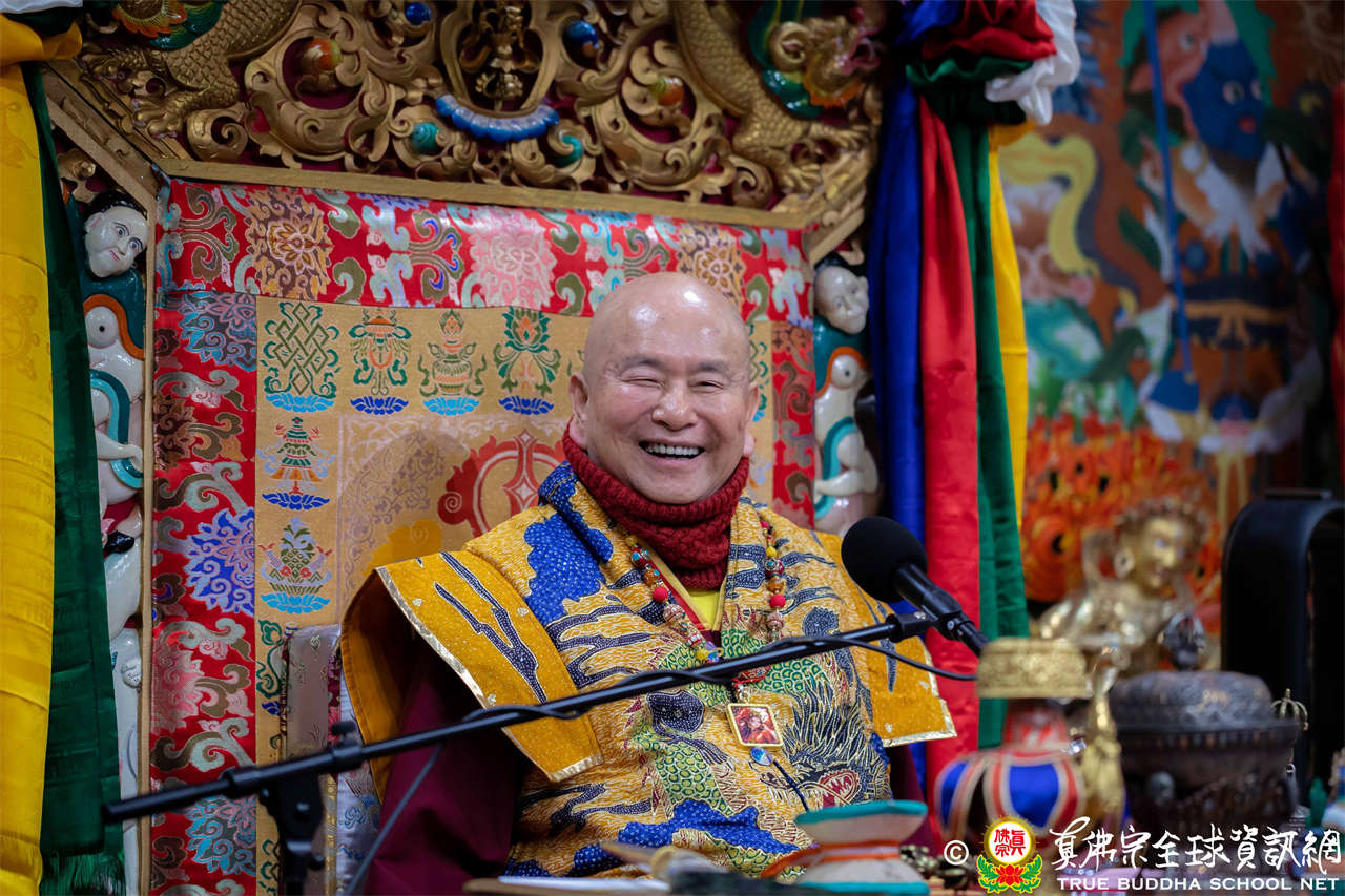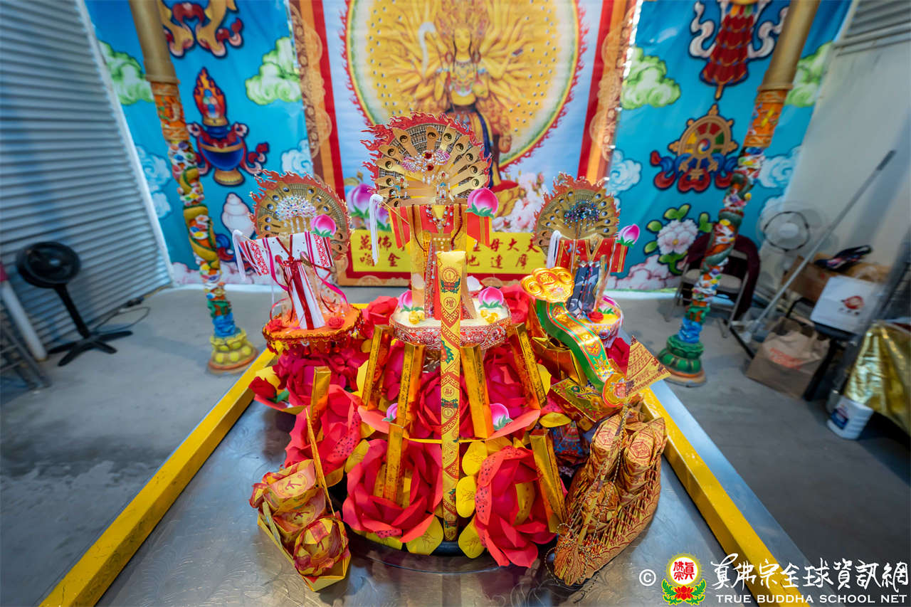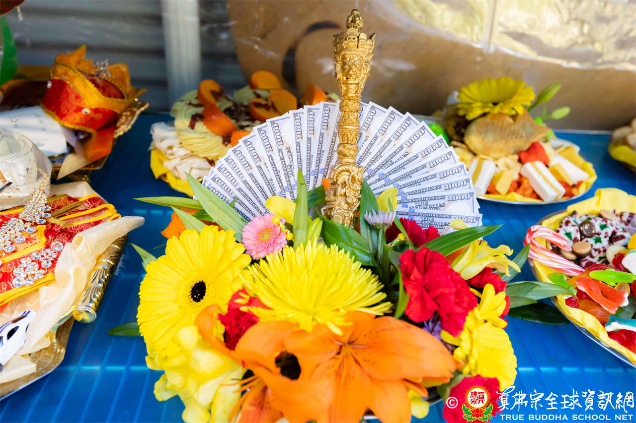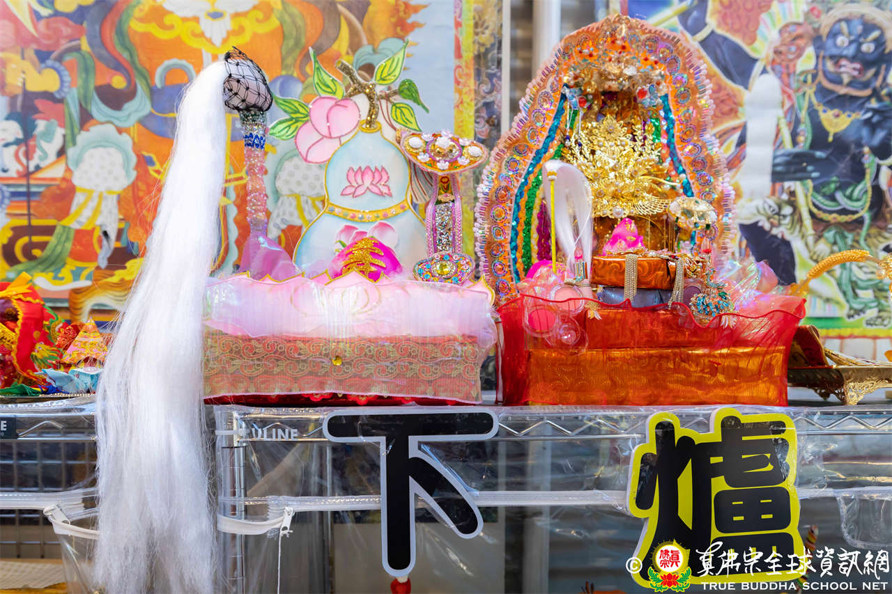 接著,法王分享了是日主尊——萬佛手無極眼瑤池金母大天尊在法會前夕的特別開示。法王曾請示金母對供品的特別要求,金母僅簡潔答覆:「你不要用骯髒的杯子裝水來供養我。」