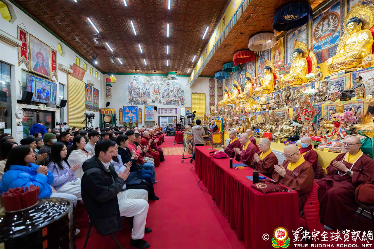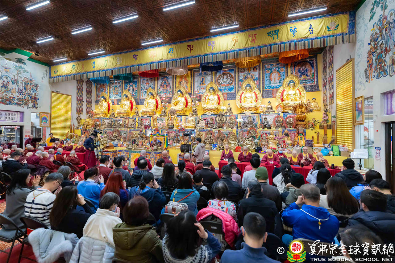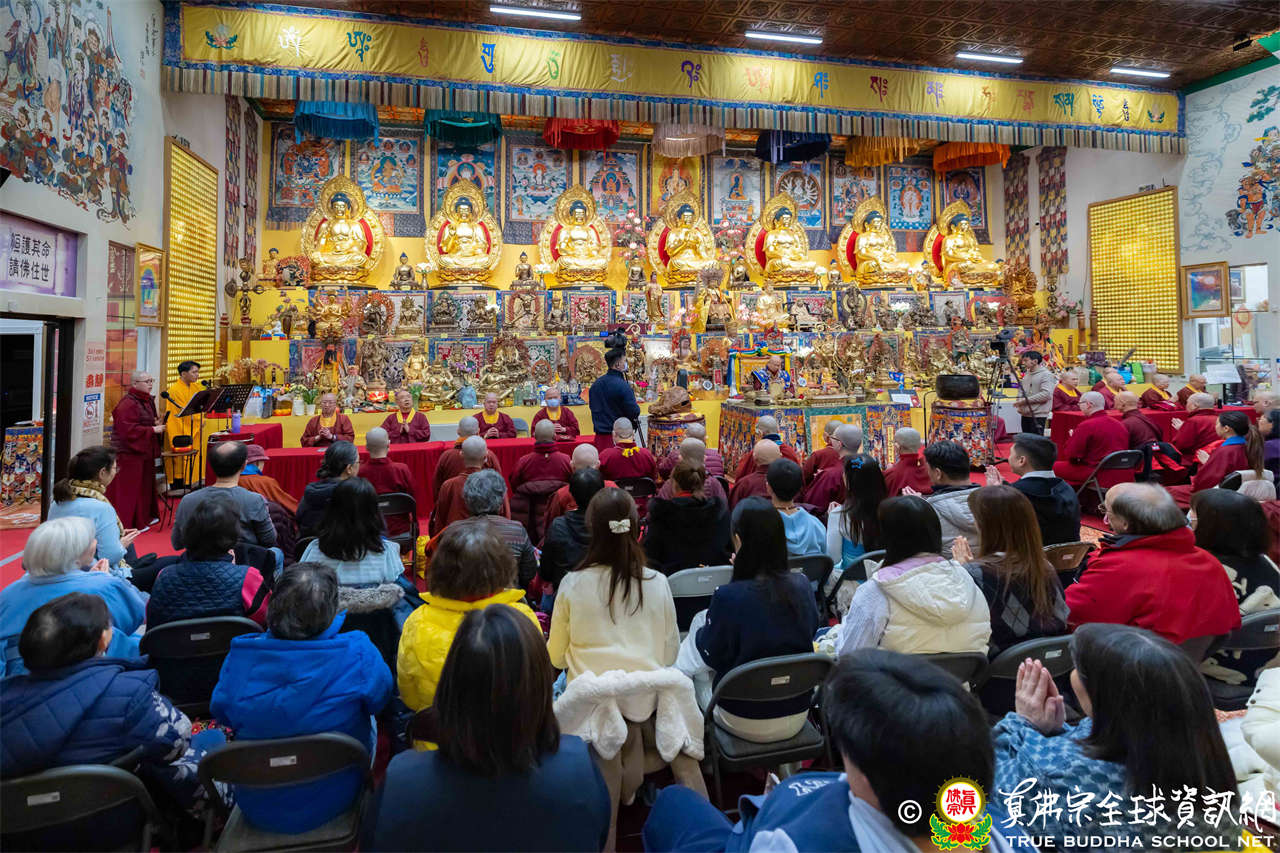 每逢周六晚上,西雅圖雷藏寺總是燈火通明。2026年1月17日,大家在晚餐過後,早早來到大雄寶殿裡,坐在座位上,期待着與佛同修。隨後,在莊嚴的蓮花童子心咒梵唱中,迎來了根本傳承上師聖尊蓮生活佛盧勝彥。聖尊步履安詳,慈視大眾,進入大殿,升於法座上,主持藥師佛本尊法同修。