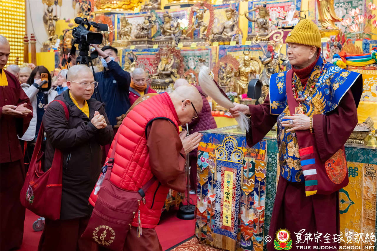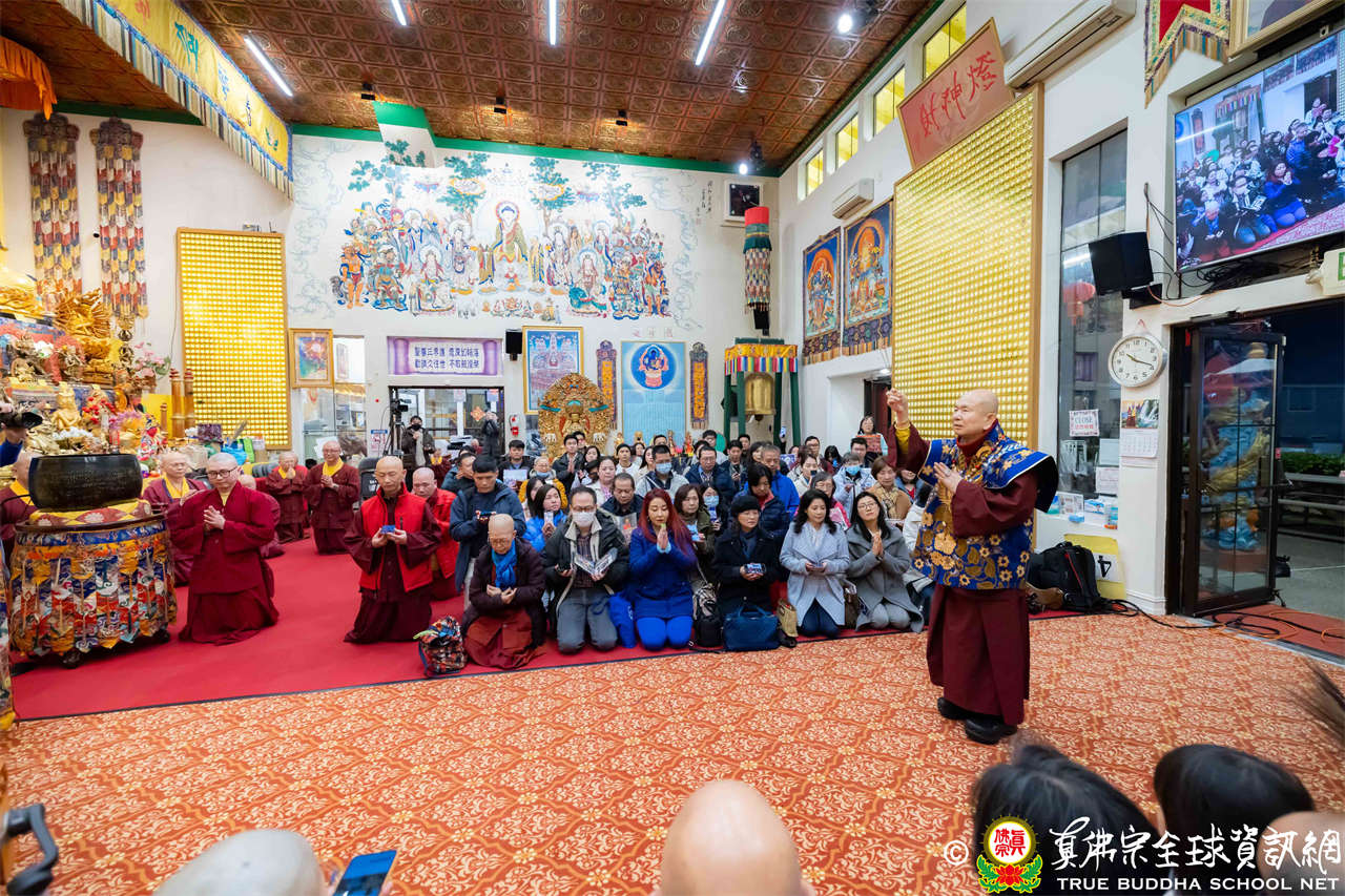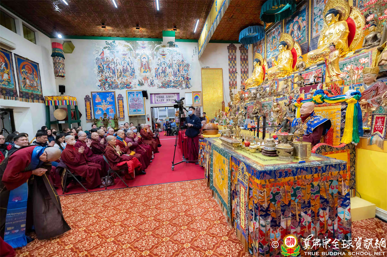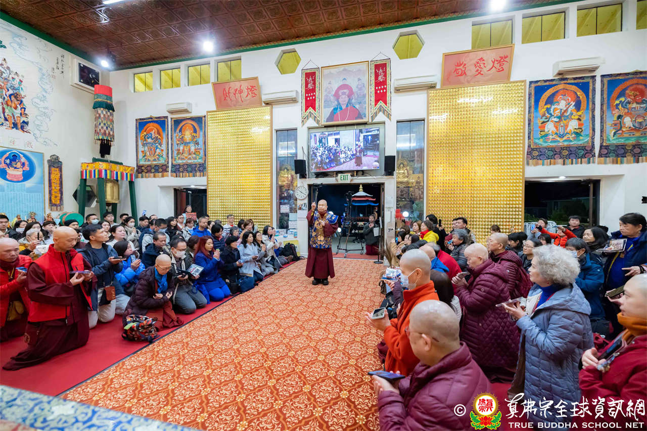 每逢周六晚上,西雅圖雷藏寺總是燈火通明。2026年1月17日,大家在晚餐過後,早早來到大雄寶殿裡,坐在座位上,期待着與佛同修。隨後,在莊嚴的蓮花童子心咒梵唱中,迎來了根本傳承上師聖尊蓮生活佛盧勝彥。聖尊步履安詳,慈視大眾,進入大殿,升於法座上,主持藥師佛本尊法同修。
