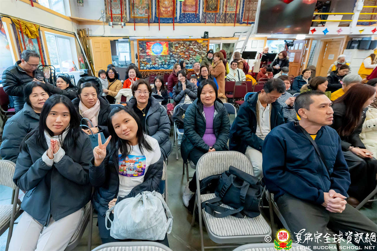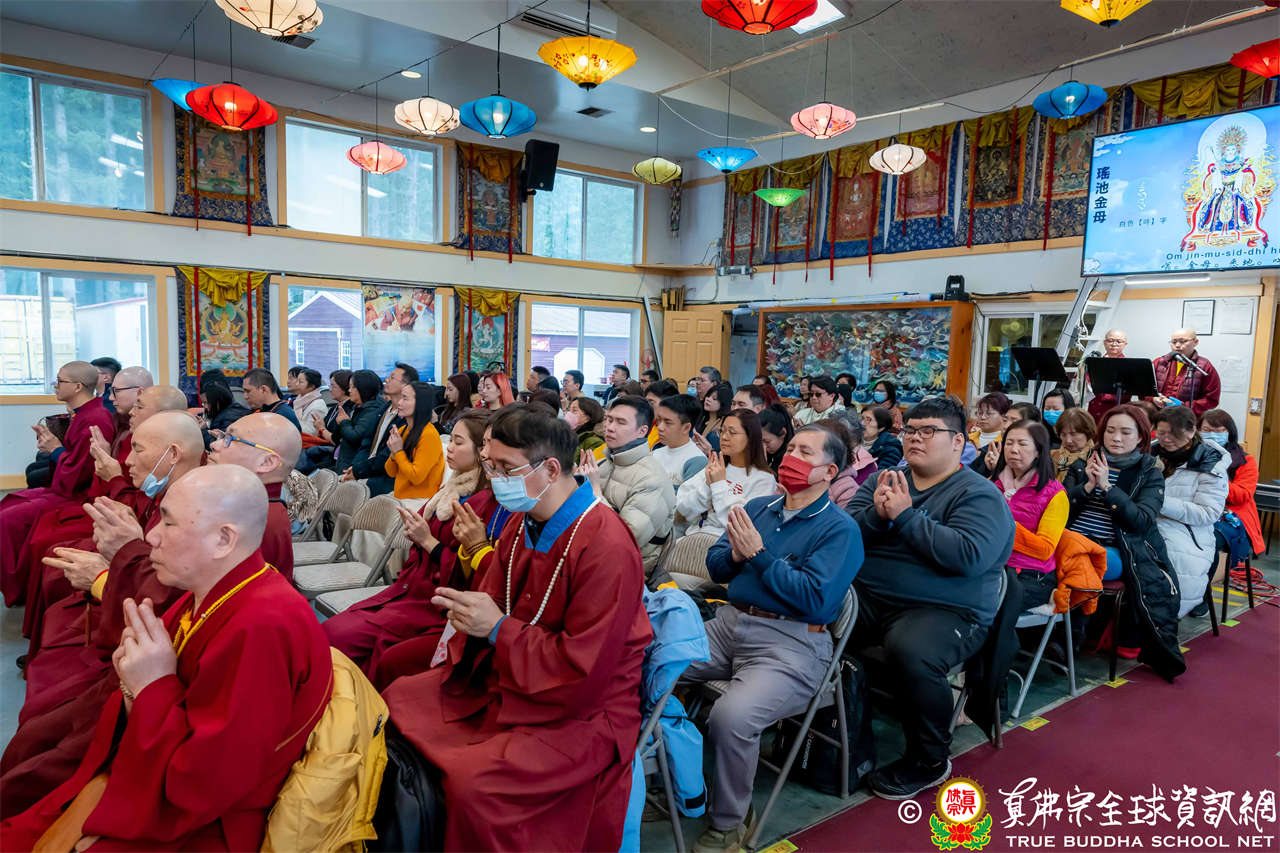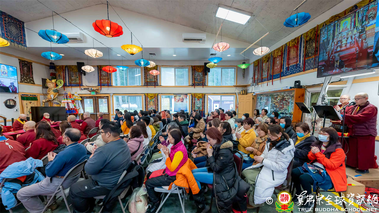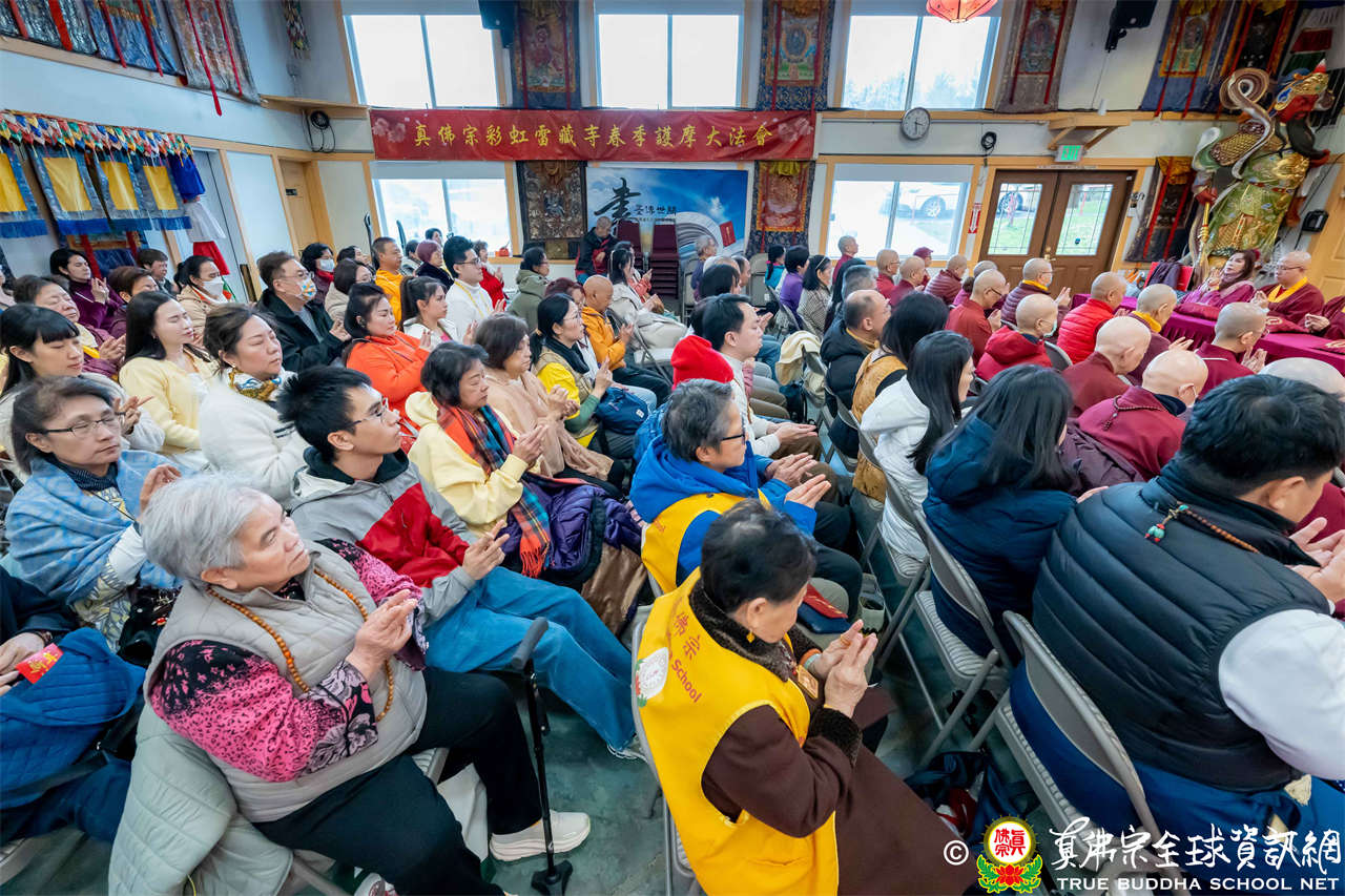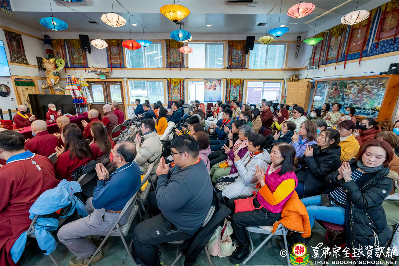 開示結束後,上師特別邀請攝影組為大眾拍攝大合照與影片,呈送給師尊、師母。上師期許大眾能放下焦慮、安住其心,將心力專注於最有意義的修行上,共同期待在三月大法會與根本上師的歡喜相聚。