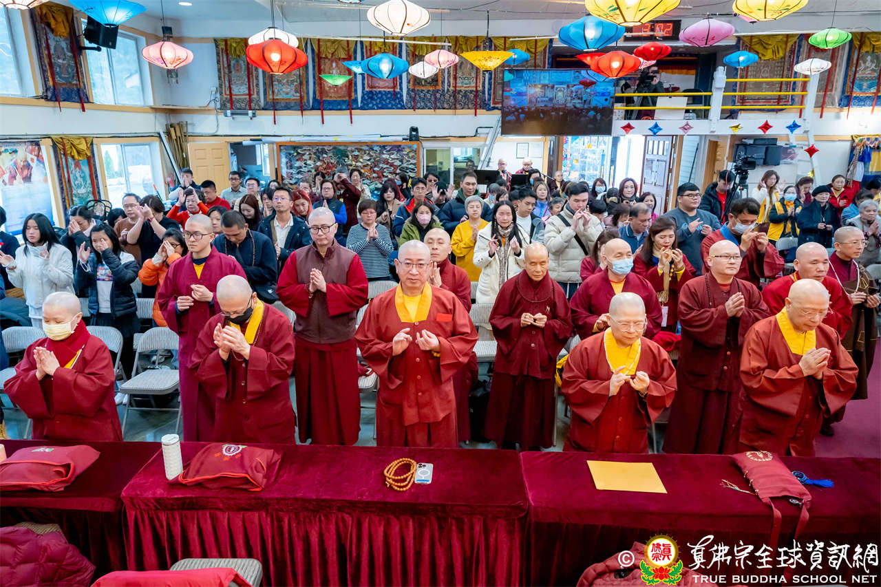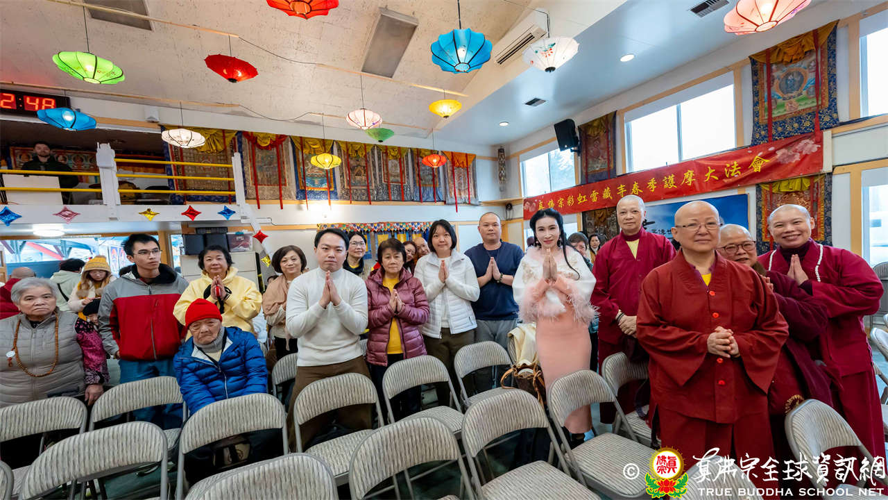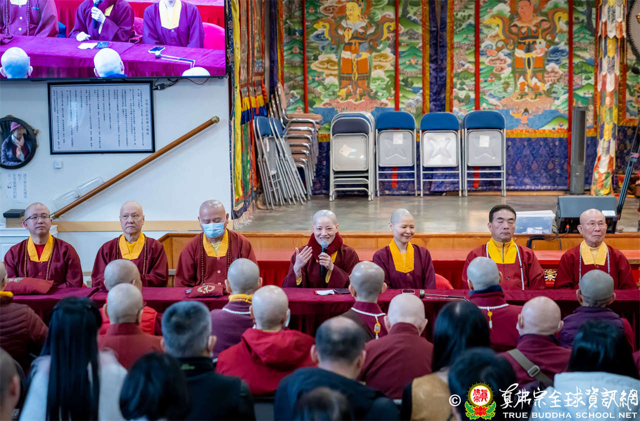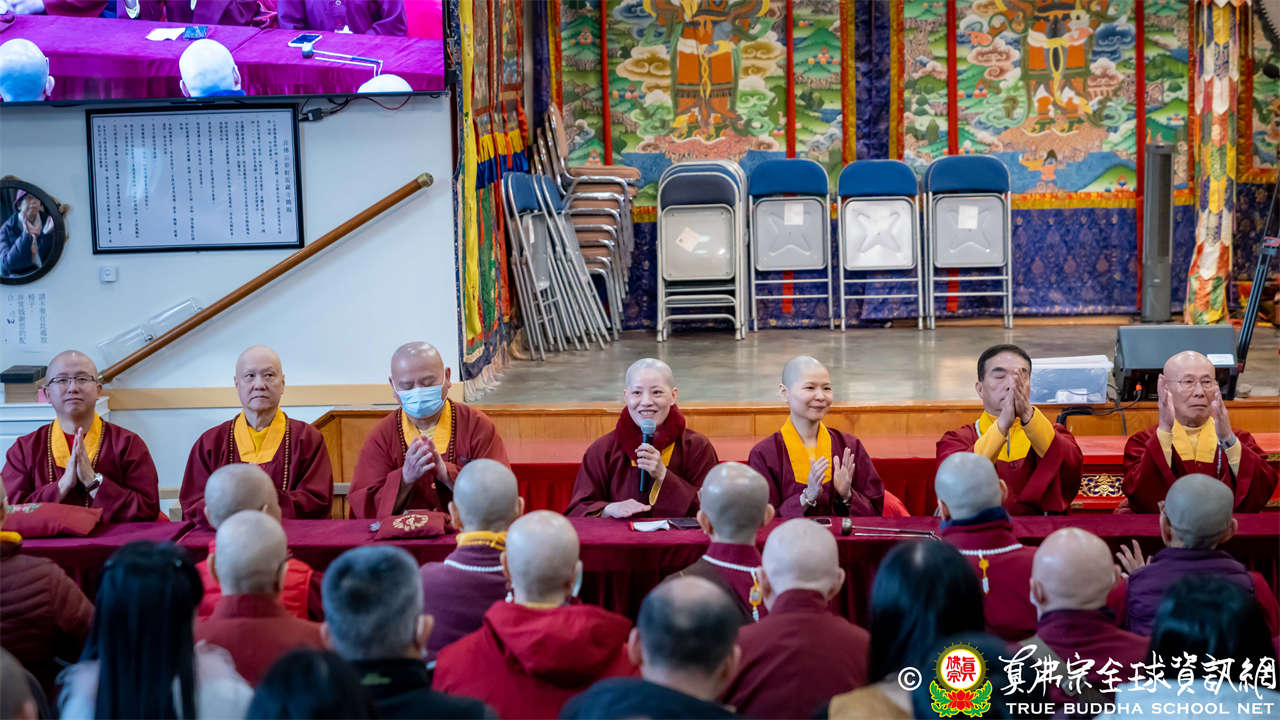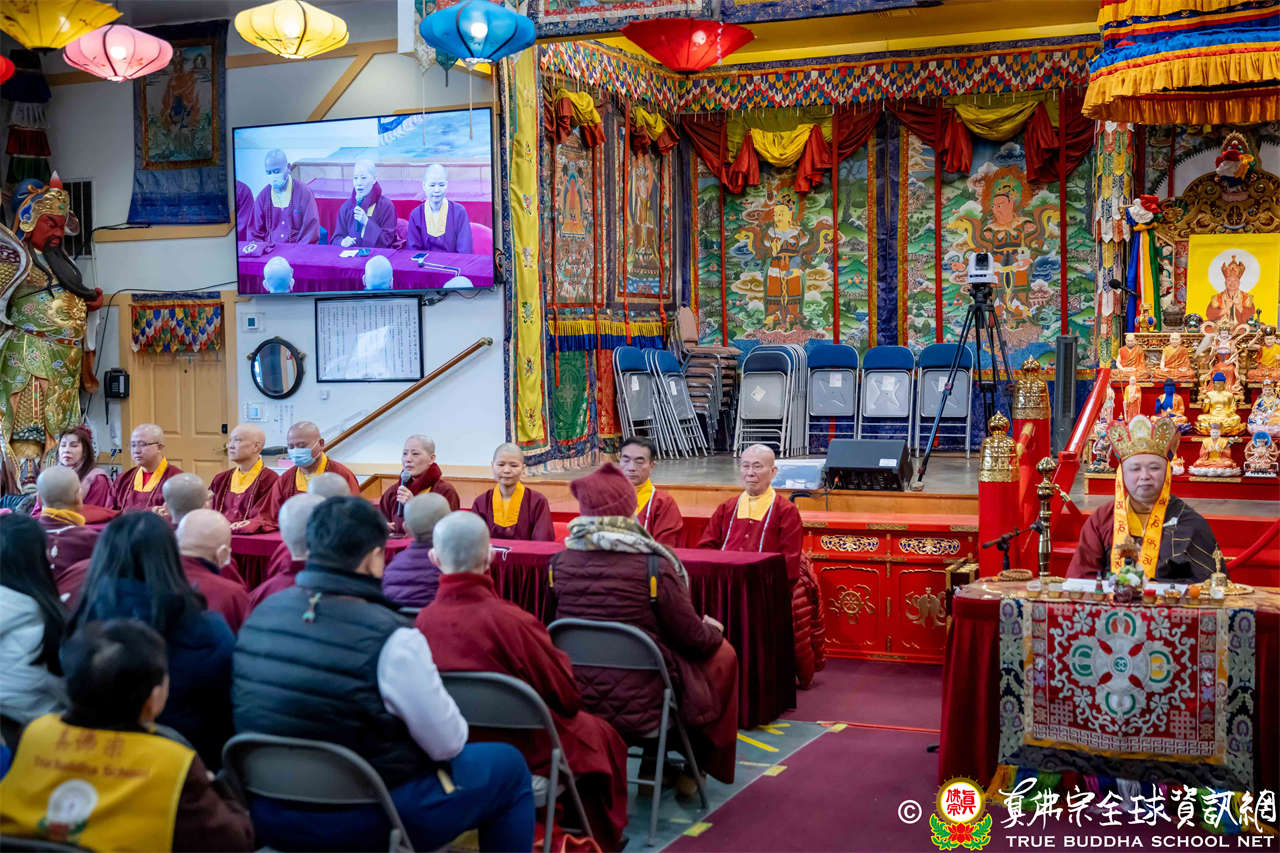 開示結束後,上師特別邀請攝影組為大眾拍攝大合照與影片,呈送給師尊、師母。上師期許大眾能放下焦慮、安住其心,將心力專注於最有意義的修行上,共同期待在三月大法會與根本上師的歡喜相聚。