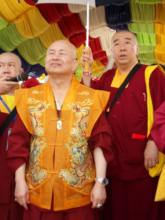 主辦單位ㄧ開始迎請蓮生活佛入帳篷內,活佛向壇城上香祝禱後,靈算指示:此地理甚佳,分數高達90分。需沿著圍牆方向而建寺。