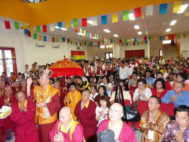 活佛首先賜墨寶給棉蘭雷藏寺與蘇北雷藏寺。之後活佛被迎請大殿,加持開光後理事長蓮花明珠致歡迎詞,蓮惺教授師則講述:大殿主尊當初大過大門,移不進來安座,後來焚香祝禱唸上師心咒,竟奇蹟似的可以移進來。棉蘭雷藏寺主尊蓮花童子高達約七米,是本宗道場最高金身之冠。