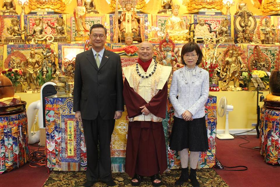 2014年11月3日中華民國駐西雅圖台北經濟文化辦事處金星處長與莊秘書足金小姐首次親訪〈西雅圖雷藏寺〉拜會聖尊蓮生活佛盧勝彥