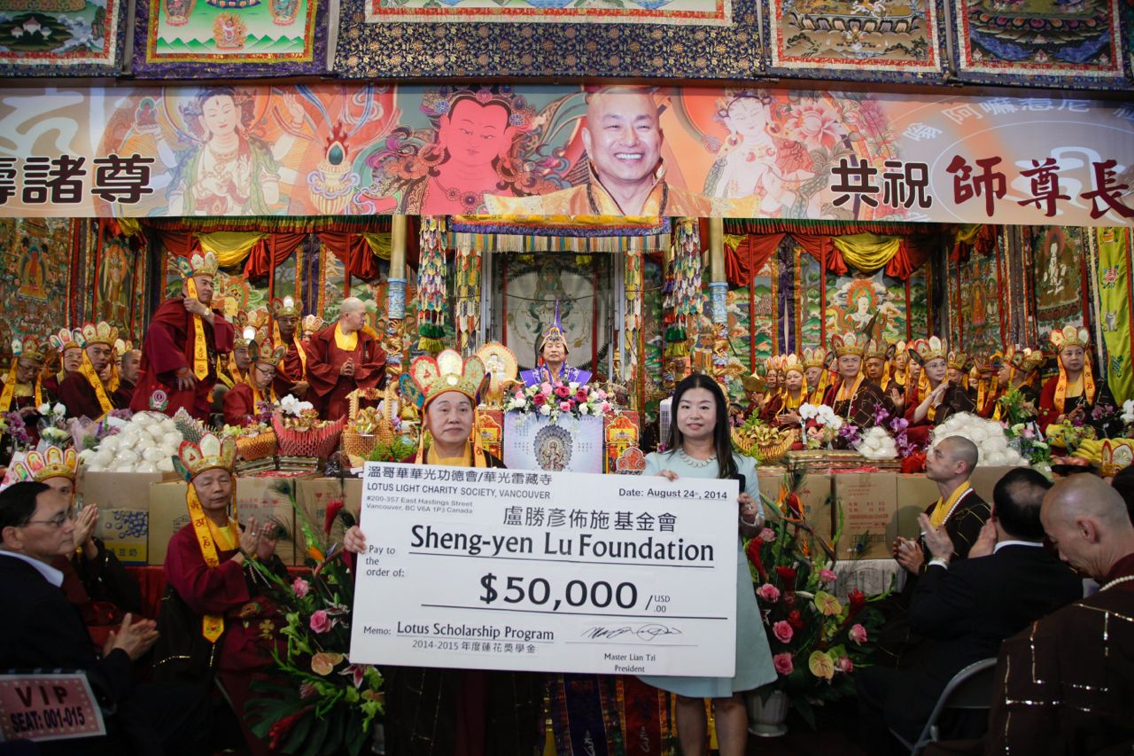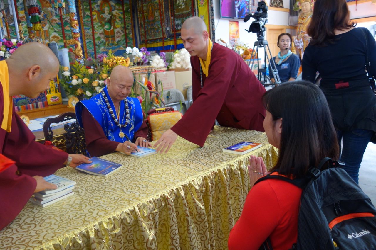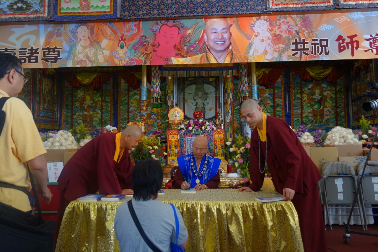 8月24日上午十點半,蓮生活佛 盧勝彥應廣大書迷在〈彩虹雷藏寺〉簽英文書。