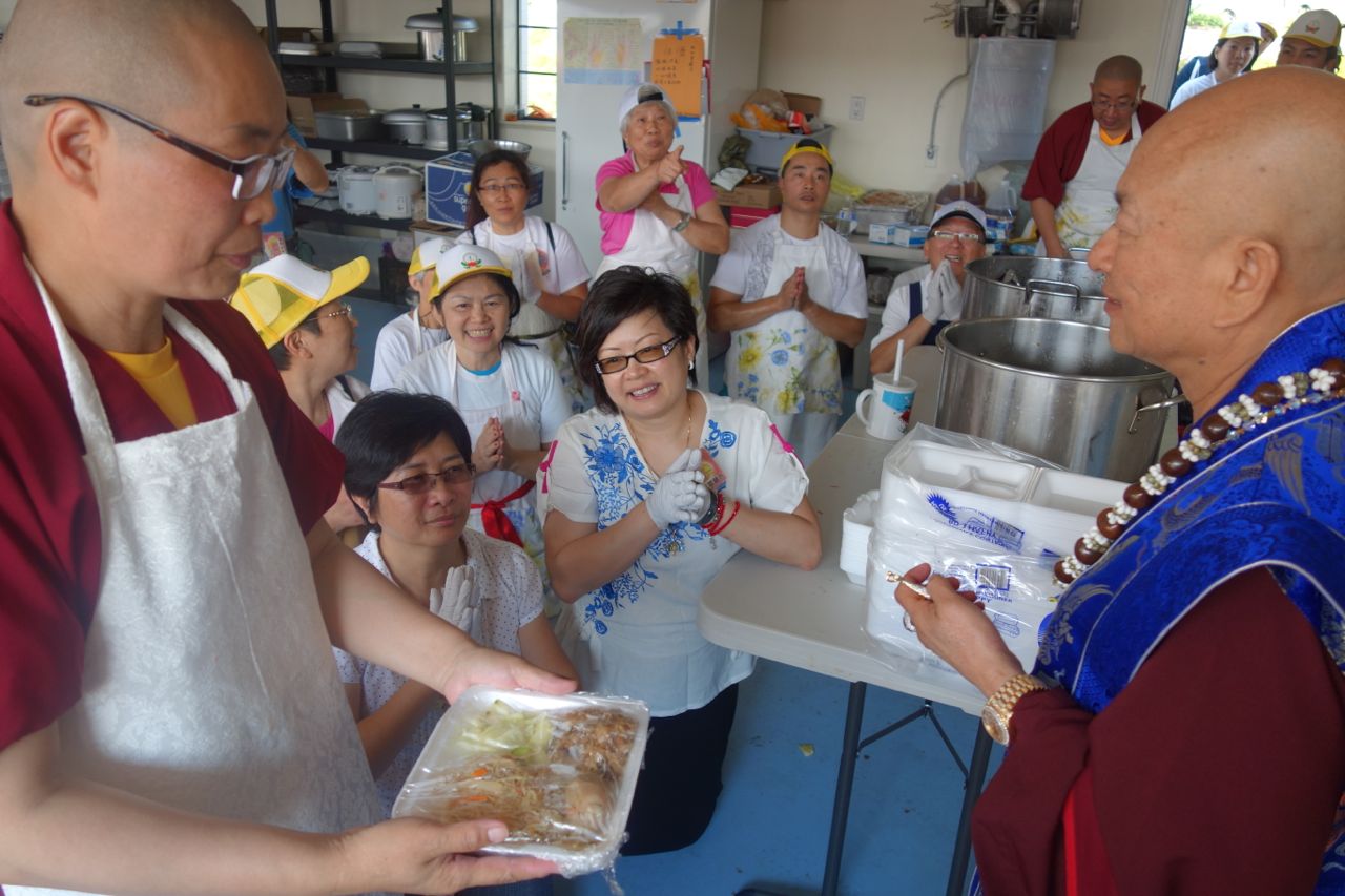 用餐前,蓮生活佛還特地到戶外弟子用餐的地方,關心弟子的用餐及問候負責香積組義工們的辛勞,蓮生活佛的慈悲關懷,讓所有弟子心中感到特別溫暖~