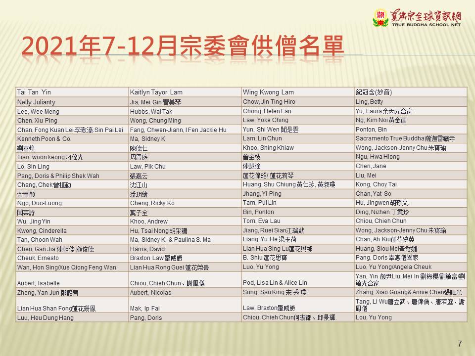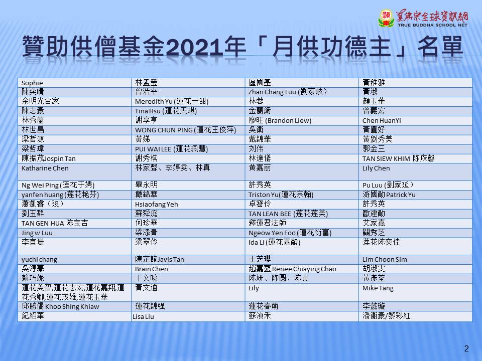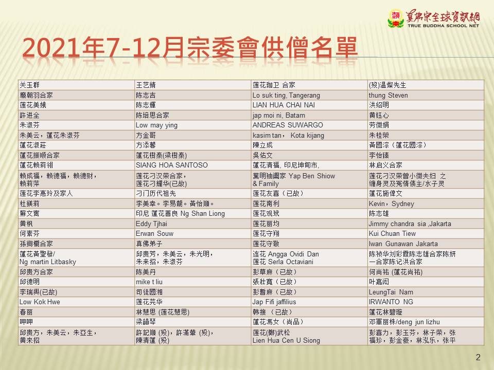 2021年7月至12月供僧功德主及2021年月供供僧功德主名單