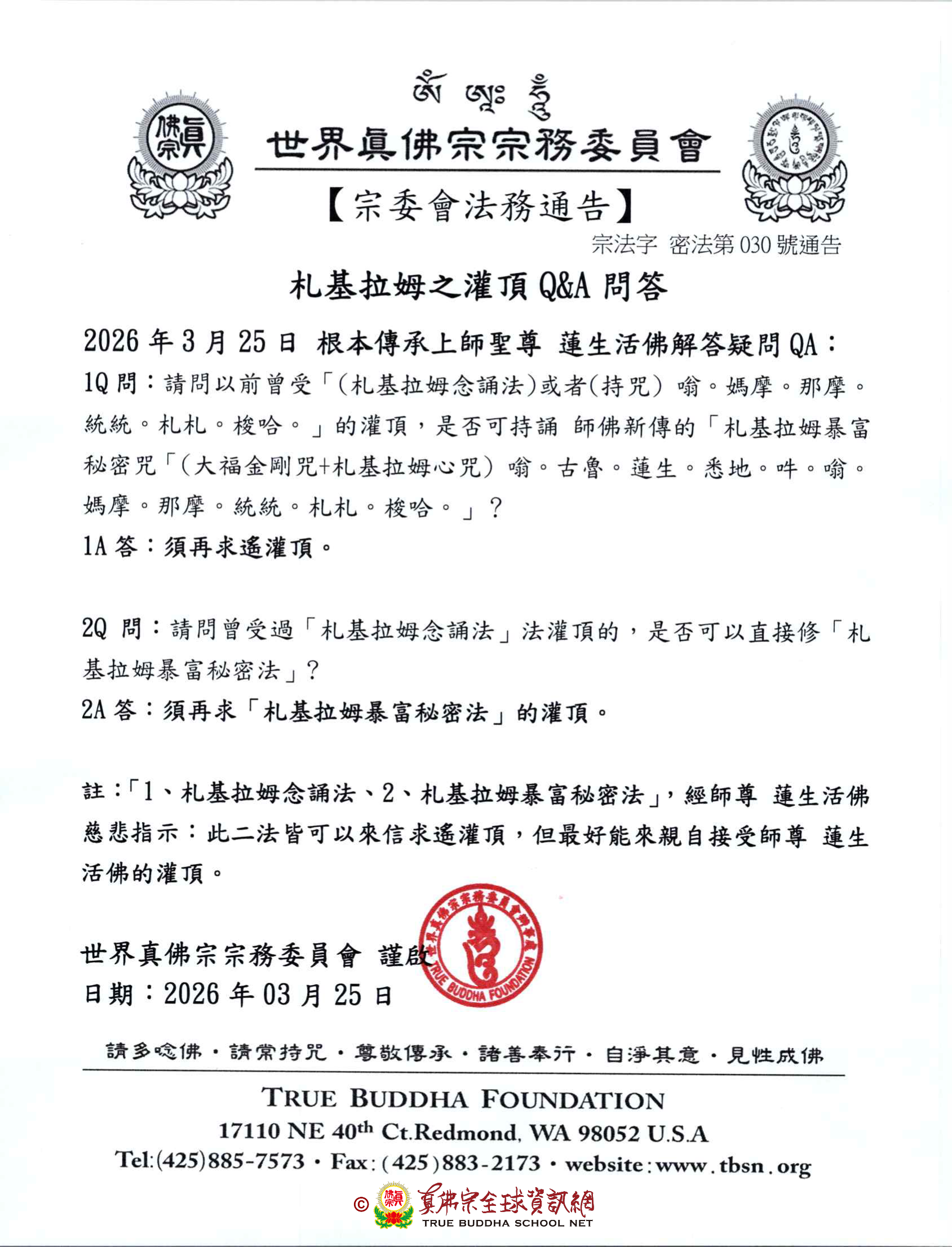 世界真佛宗宗務委員會 謹啟