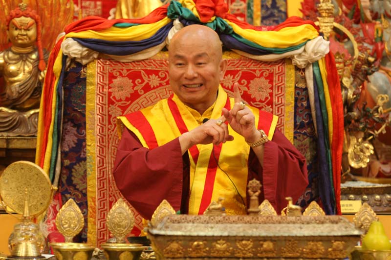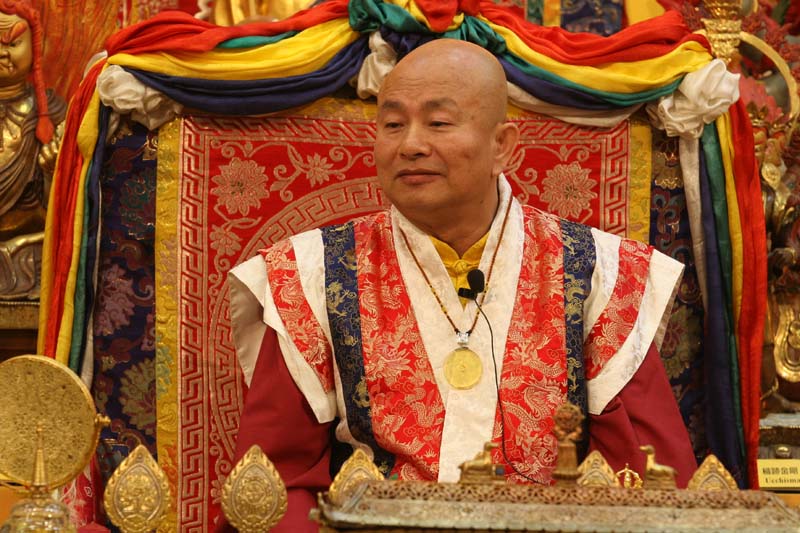 敬禮了鳴和尚、薩迦證空上師、十六世大寶法王噶瑪巴、吐登達爾吉上師,敬禮壇城三寶。 尊貴的貴賓,還有上師、堂主、法師、講師、助教,各位同門! 四點多了,等一下還有下一場,時間很緊迫。我出門的時候,師母有交代,我的上司(指師母)有交代:每一個堂給半小時。現在已經不得了了,已經超過了。