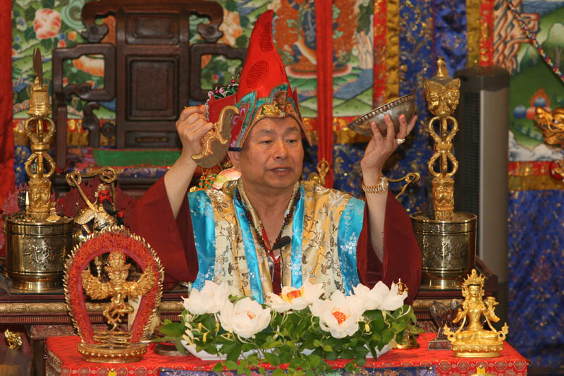 敬禮了鳴和尚,薩迦證空上師,十六世大寶法王噶瑪巴,吐登達爾吉上師!敬禮壇城三寶!今天修法的主尊準提佛母!主持上師蓮旺上師、師母、各位上師、教授師、法師、講師、助教,各位同門,還有網路上的同門,大家吉祥。(眾鼓掌)