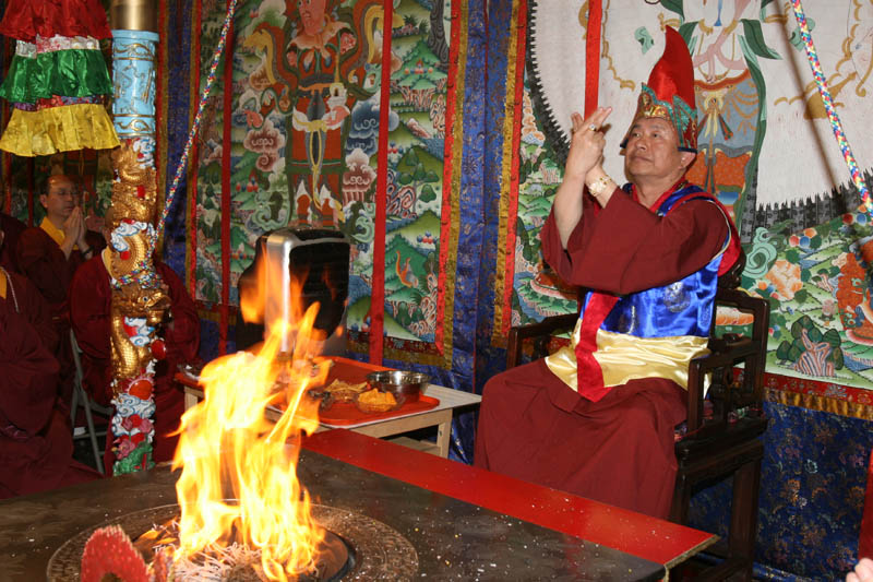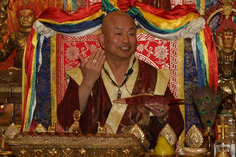 敬禮了鳴和尚、薩迦證空上師、十六世大寶法王噶瑪巴、吐登達爾吉上師。敬禮壇城三寶。敬禮護摩主尊吉祥喜金剛大明王。師母、各位上師、教授師,各位法師、講師、助教、堂主,各位同門,還有來自世界各地的貴賓、網路上的同門,大家吉祥!(眾鼓掌)