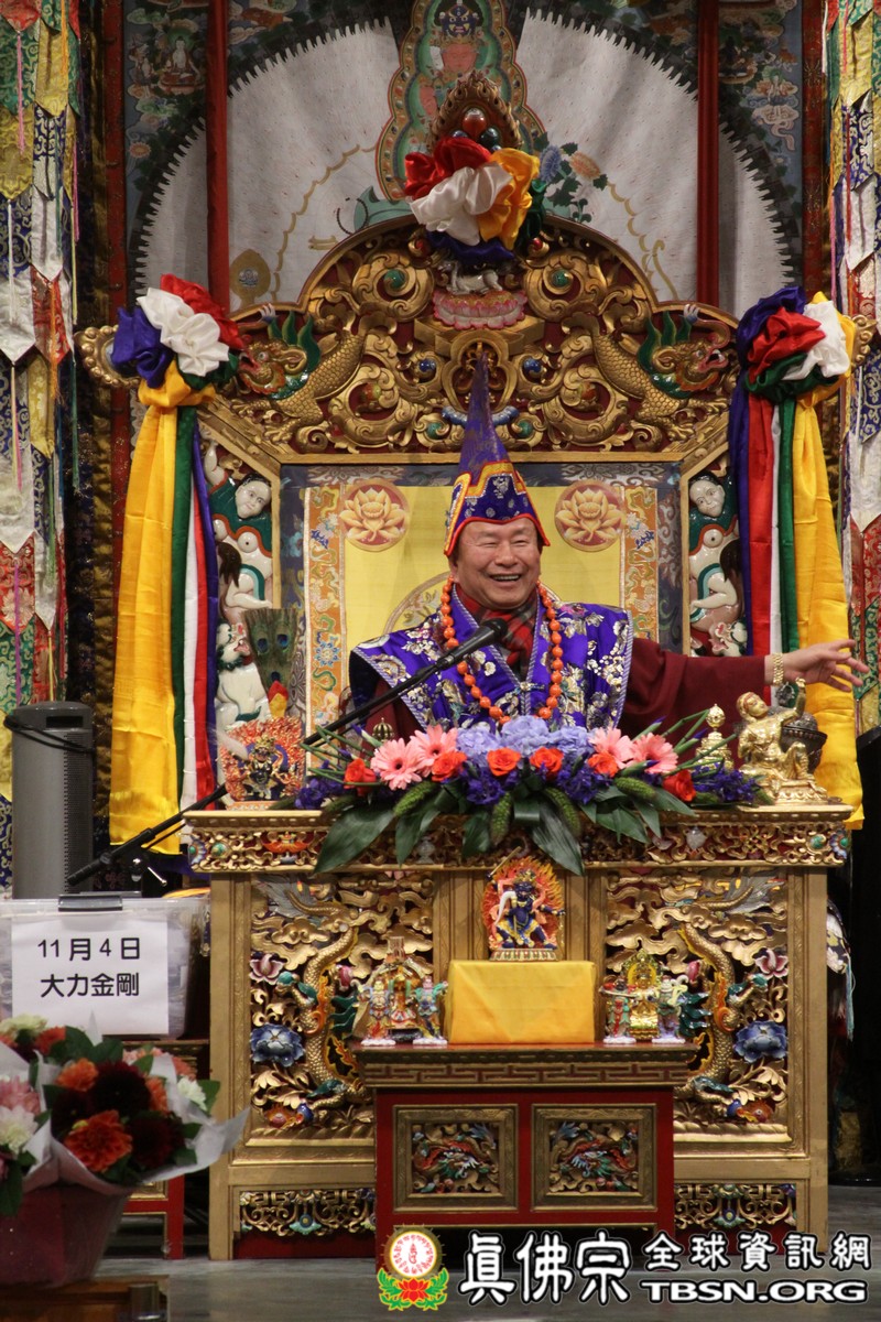 大力金剛是阿彌陀佛、瑤池金母、地藏王菩薩、大力侍者、蓮花童子,五身合一的金剛神。明點下降,會產生大樂,再用薩迦六勢變,忍住不放掉明點,就很容易產生拙火,拙火上升,經過眉心輪、喉輪、心輪、臍輪、密輪,五輪全部打開,就可以看到光,再將一切覺受,化歸於本然虛空。