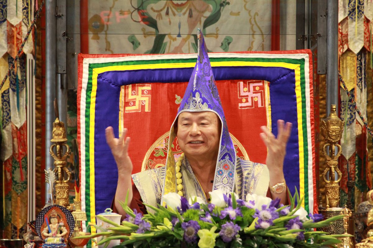 講解「三煖相」。打坐時都會有雜念出來,叫做「前行煖相」,其他的教授是有雜念產生的時候就「呸」,將它斷掉。《道果》的教授不一樣,一有雜念出來,要想這雜念為什麼會產生出,想清楚了以後,將它化解掉,就不會再有這雜念出來,變成一種加行,前行的煖相就是助緣。
