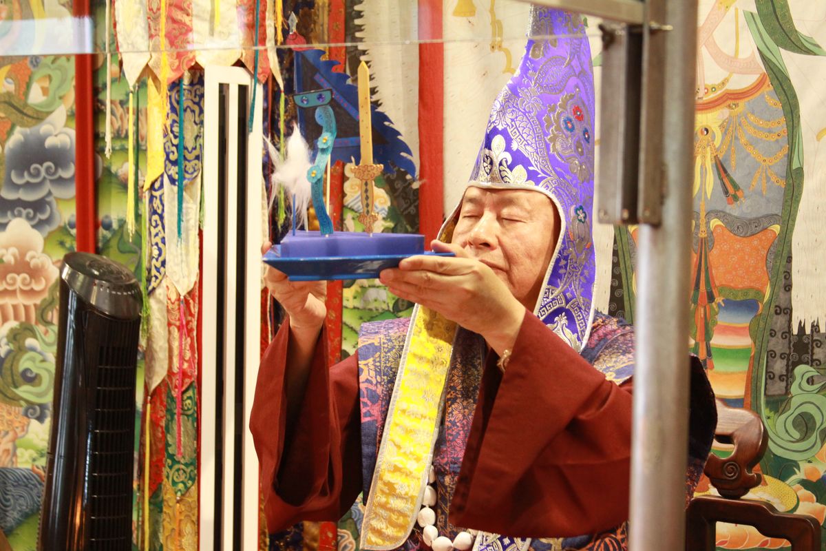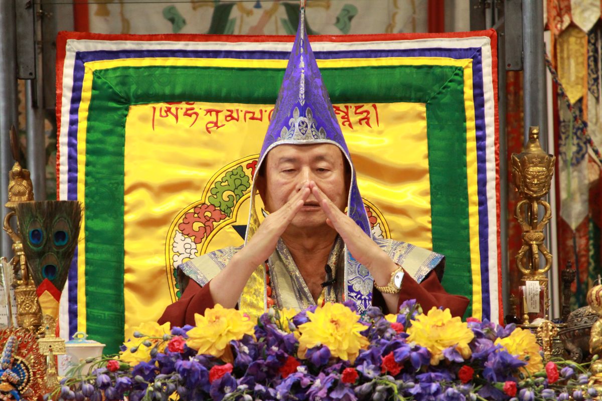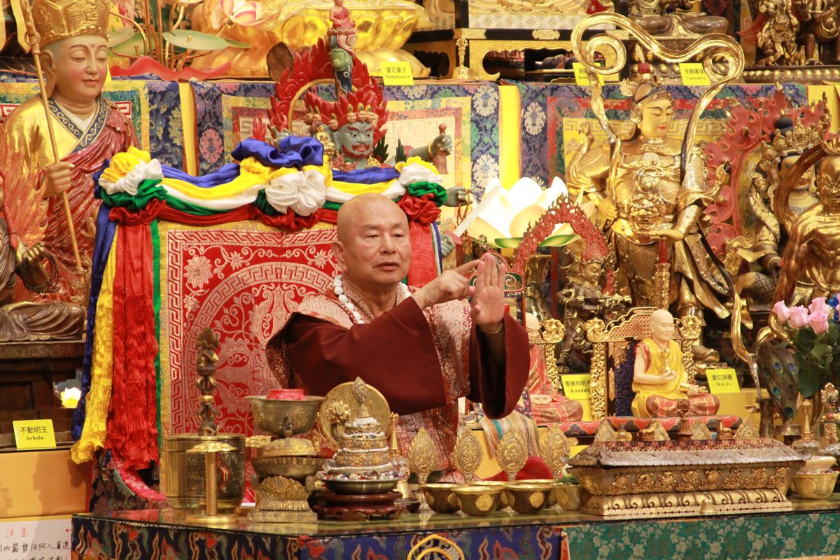 介紹「景象緣起」,修行會有四種景象:1.身脈景象、2.脈字景象、3.界甘露景象、4.氣景象。拙火快要產生時,閉上眼睛可以看到煙,可以用律動呼吸,讓火產生出來。只要中脈通,光明就會出現,只要拙火昇起來,天庭水增加,天庭水下降就是界甘露,賀爾蒙增長,皮膚就會變白細緻有光澤。