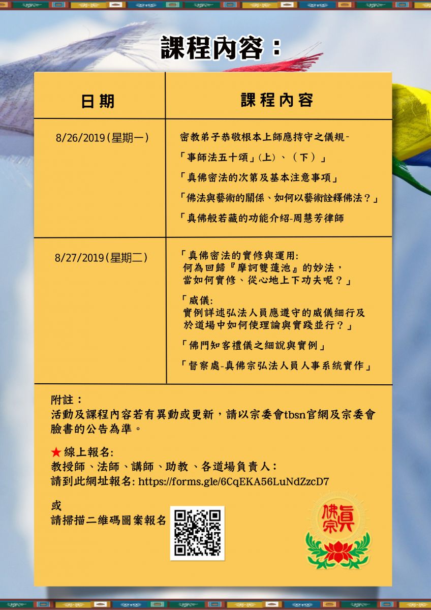 真佛宗2019年秋季「教育研習暨聯誼會」海報
