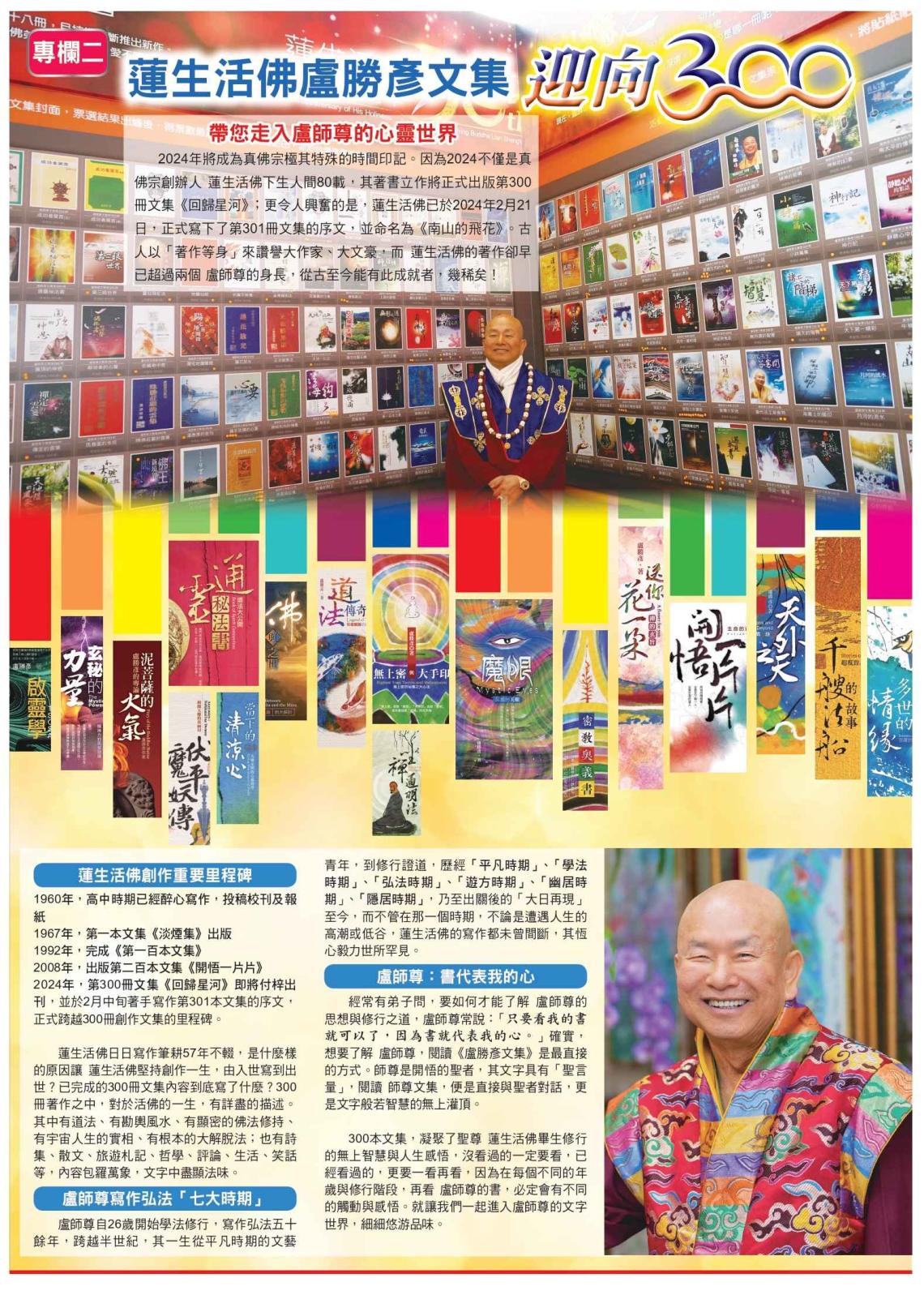 恭賀蓮生活佛80聖壽暨文集寫作迎向 300 真佛報推出二個新專欄